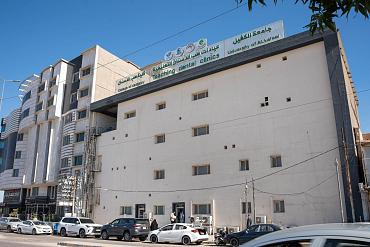 يشمل المبنى الطابق الأرضي وثلاثة طوابق أخرى بمجموع مساحة بناء 2400 م2 - الطابق الأرضي: مساحته 600م2 وتبلغ عدد العيادات فيه (5) عيادات بمساحة (65)م2 للعيادة الواحدة وكل عيادة تحتوي على (9) كراسي أسنان ومقسمة كما يلي: 1- عيادة جراحة الفم والأسنان عدد (2) 2- عيادة التعويضات الصناعية للأسنان عدد (3) 3- غرفة الإدارة والموظف الإداري 4- الاستعلامات الرجالية. 5- الاستعلامات النسائية. 6- غرفة مذخر الادوية. 7- غرفة الفحص. 8- غرفة التعقيم. 9- غرفة الأشعة. 10- غرفة الكهرباء. 11- المجموعة الصحية (رجالية ونسائية). 12- مولدات كهربائية عدد 2. - الطابق الأول: مساحته 600م2 وتبلغ عدد العيادات فيه (5) عيادات بمساحة (65)م2 للعيادة الواحدة وكل عيادة تحتوي على (9) كراسي أسنان. 1- غرفة مذخر الادوية. 2- غرفة التعقيم. 3- غرفة الأشعة. 4- غرفة استراحة الأطباء. 5- غرفة الانتظار. 6- مجموعة صحية (نسائية). - الطابق الثاني: مساحته 600م2 وتبلغ عدد العيادات فيه (5) عيادات بمساحة (65)م2 للعيادة الواحدة وكل عيادة تحتوي على (9) كراسي أسنان. 1- عيادة الجراحة التخصصية. 2- غرفة التعقيم. 3- غرفة أمراض الفم واللثة التخصصية. 4- عيادة تقويم الاسنان وطب الفم. 5- عيادة أمراض وجراحة ما حول الاسنان عدد (3). 6- كافتيريا. 7- غرفة الصب عدد (2) للرجال والنساء. 8- مصلى عدد (2) للرجال والنساء. - الطابق الثالث: تبلغ مساحته 600م2. 1- قاعة دراسية بمساحة 182.75م2. 2- مجموعة صحية (نسائية). 3- قاعات صغيرة للمناقشة عدد (2). 4- المخزن.