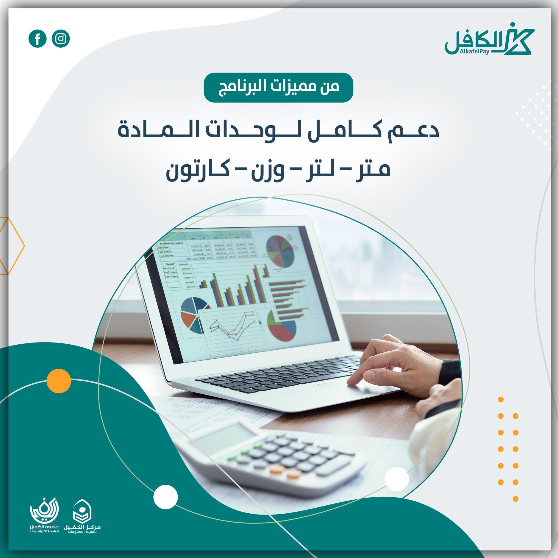 يعتبر برنامج الكافل بيئة عمل متطورة في إدخال وتنظيم الحسابات لمختلف انواع المؤسسات والنشاطات التجارية وغيرها من الأنشطة ، حيث يوفر سيطرة تامة على العمليات المحاسبية و إدارة المخازن وتنظيم الرواتب والأجور بسهولة وسرعة كبيرة وذلك بالإعتماد على النظام المحاسبي العراقي الموحد ، ويمتاز البرنامج بالمرونه وإعدادات وصلاحيات متنوعة في جميع مفاصله ، بالإضافة الى تقارير وجرودات مختلفة كـ ( ميزان المراجعة، دفتر الأستاذ ، ارباح المواد والفواتير).