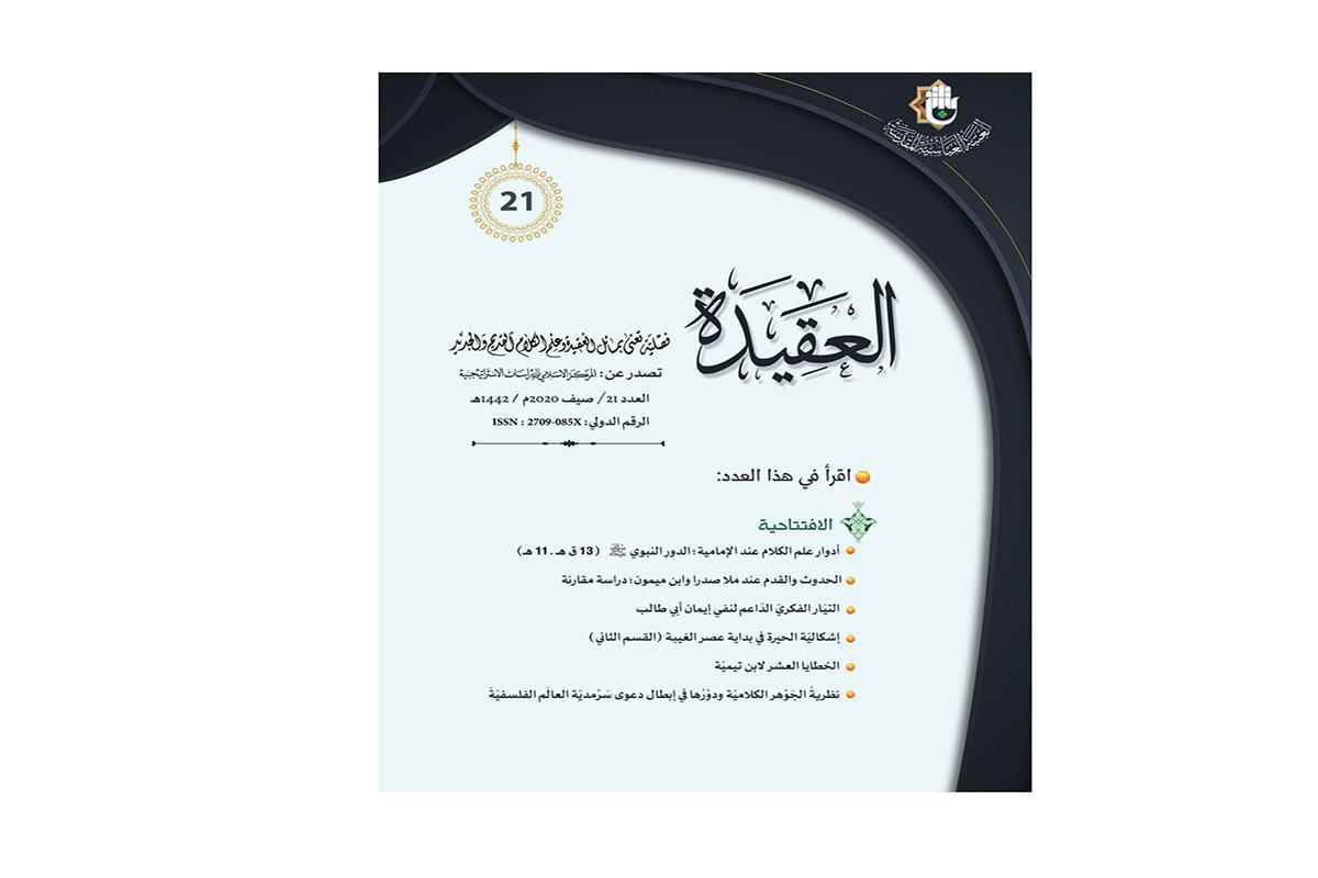 مجلة فصلية تعنى بمسائل العقيدة وعلم الكلام القديم والجديد ، بالاعتماد على البرهان العقلي الصريح المستمد هداه من الثقلين ، لسد الفراغ الموجود في المكتبة الاسلامية ببحوث ودراسات قيّمة في هذا الصدد ، تابعة للمركز الاسلامي للدراسات الاستراتيجية في العتبة العباسية المقدسة.