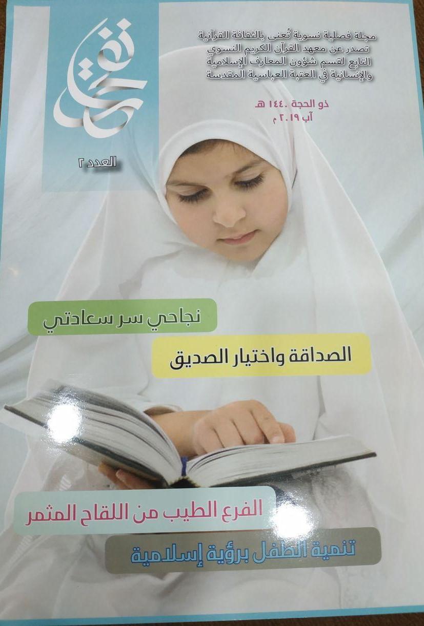 مجلة ثقافية فصلية تُعنى بالثقافة القرآنية ، تصدر عن وحدة الإعلام في معهد القرآن الكريم النسوي التابع لمكتب سماحة المتولي الشرعي للشؤون النسوية في العتبة العباسية المقدسة كجزء من النشاطات الثقافية والإعلامية التي يُعنى بها المعهد.