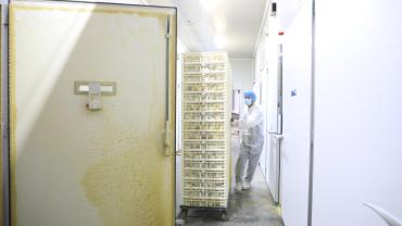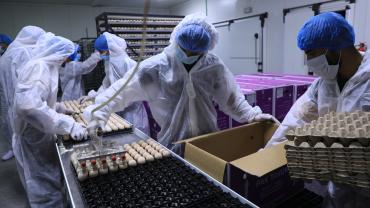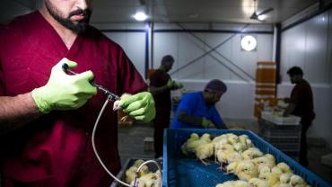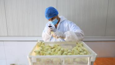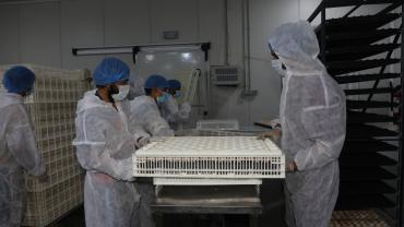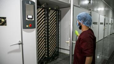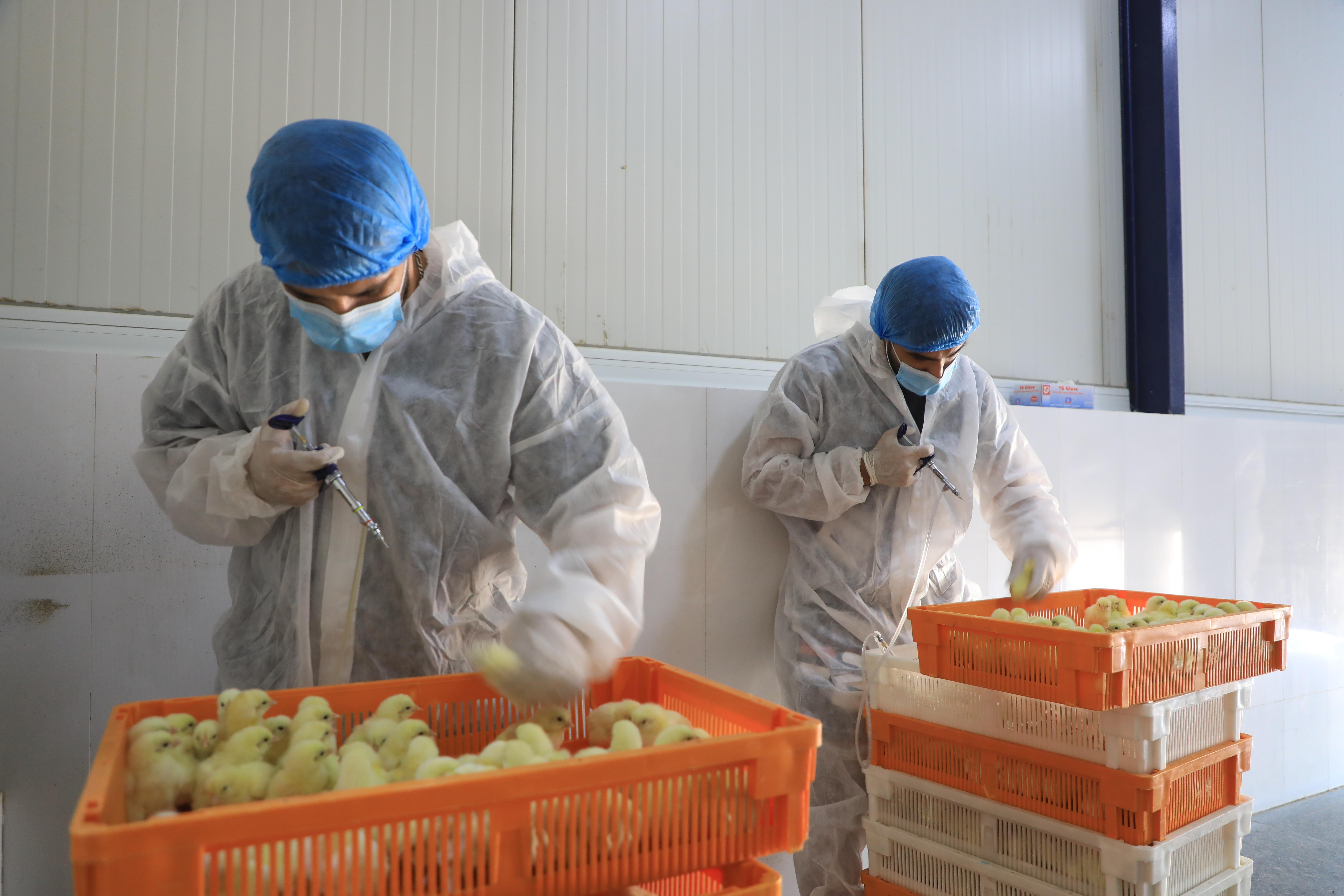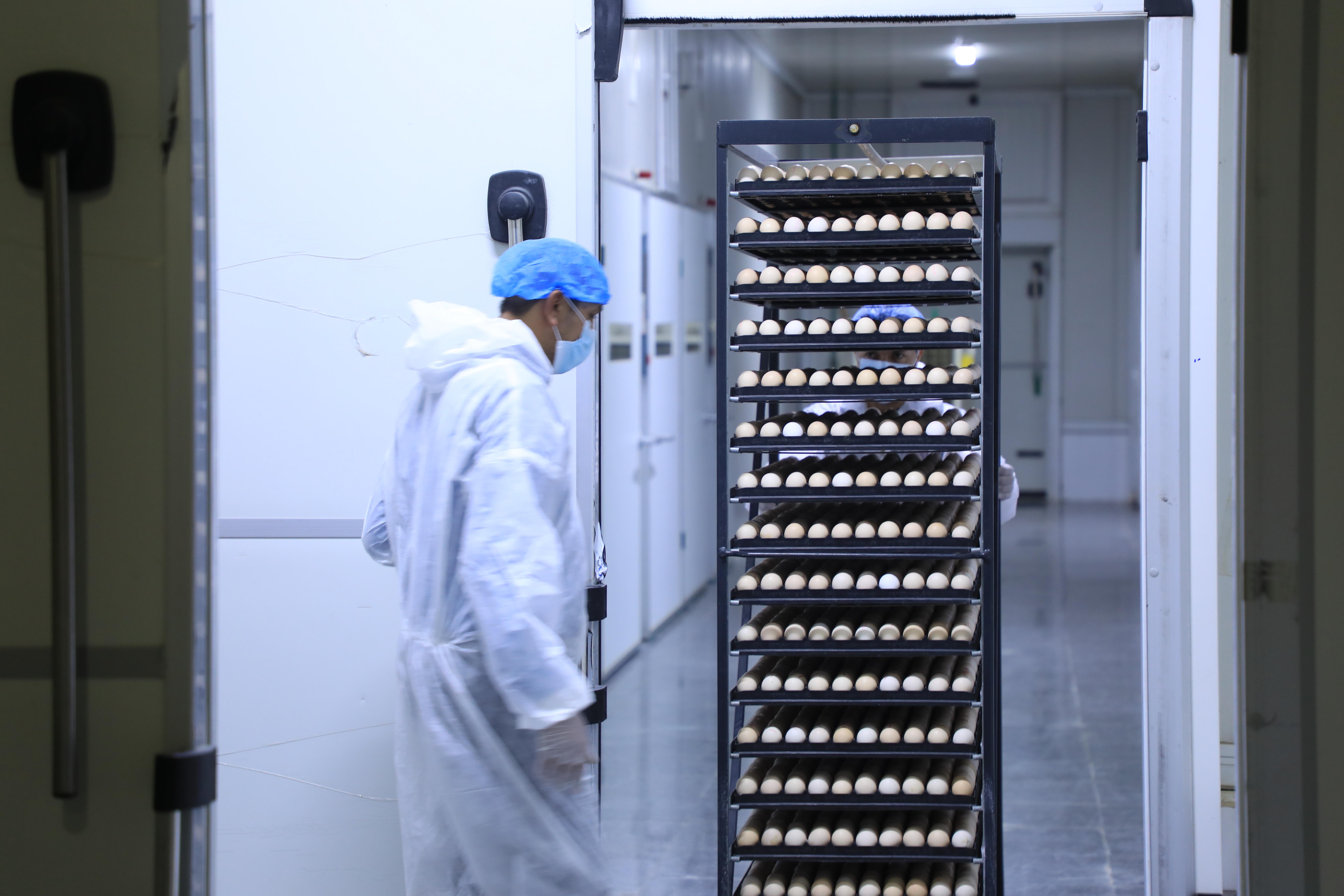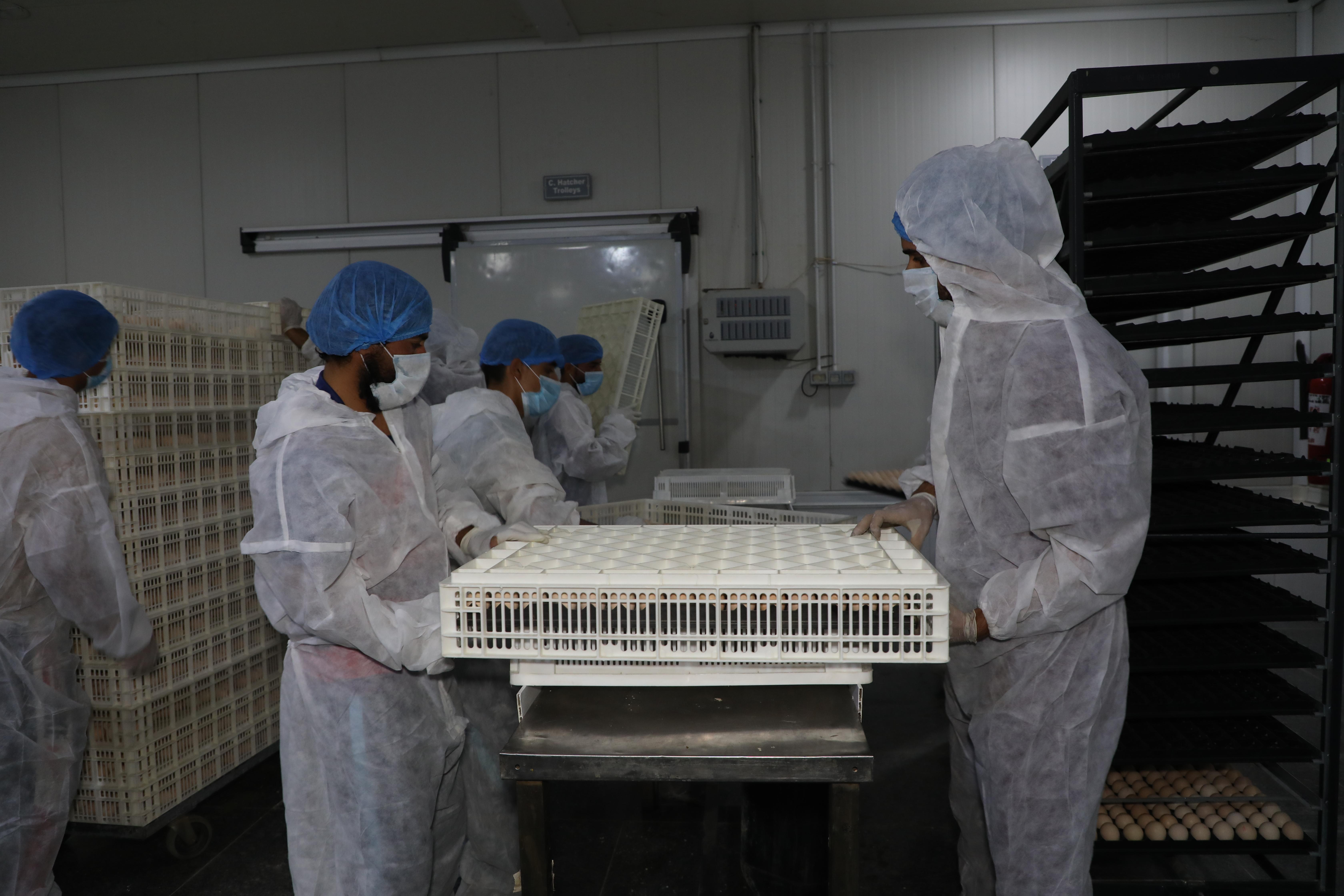تتمّ عملية التفقيس عبر إدخال البيض إلى الحاضنات، تليها فحصه في اليوم الثالث عشر، ثمّ ينقل في اليوم السابع عشر من الحاضنات إلى المفاقس لتتمّ عملية التفقيسن ويرسل بعدها إلى مشروع دواجن العوالي.