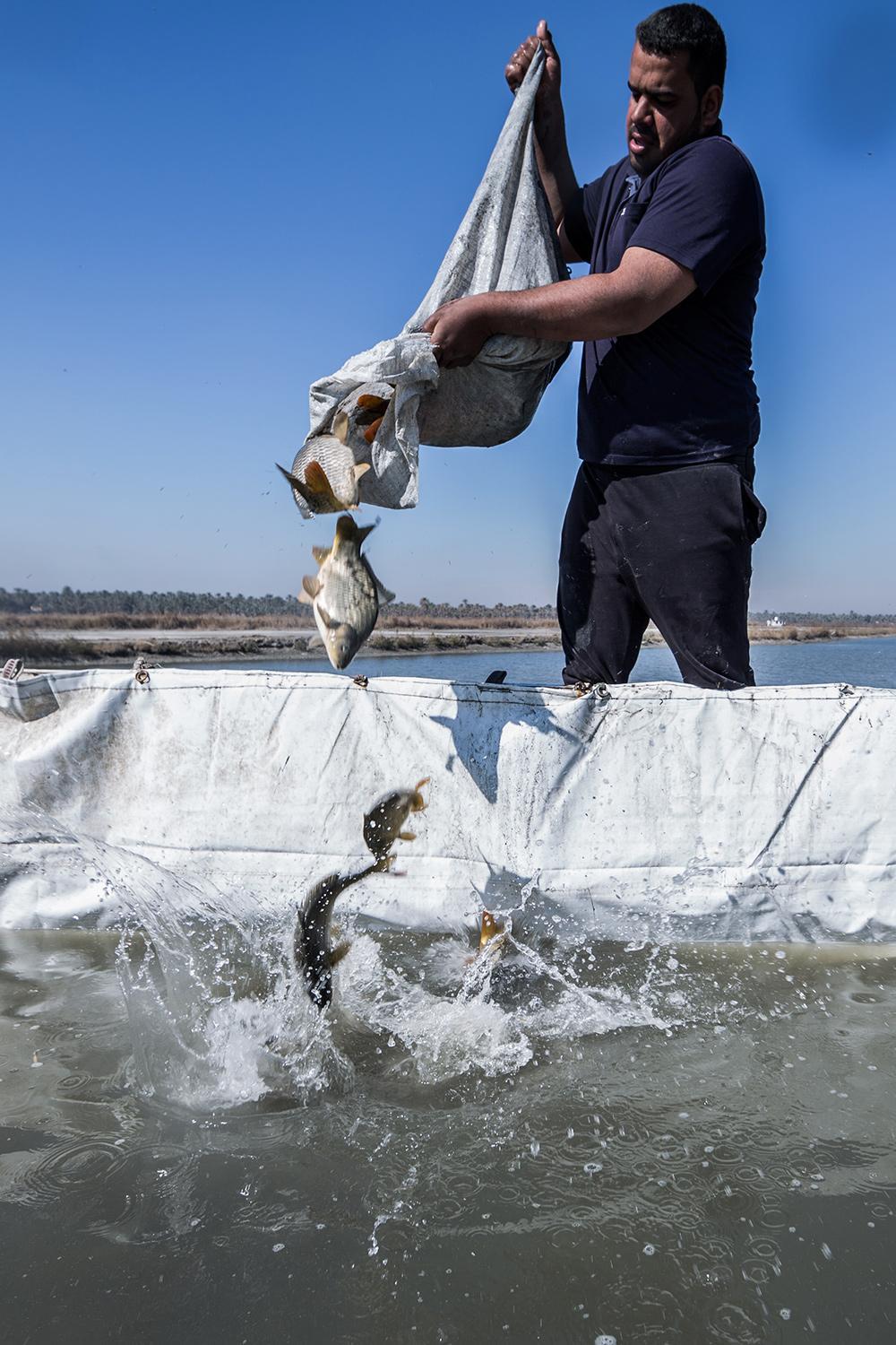 يوجد في البحيرات ثلاثة أنواع من الأسماك وهي "الكارب والكراص والسلفر"، وسبب اختيارنا لنوع الكارب هو لسرعة نموه ومقاومته للأمراض وقلة نسب الدهون فيه فضلاً عن خصوبته، ويمكن تسويقه بمدة لا تتجاوز الـ 6 أشهر