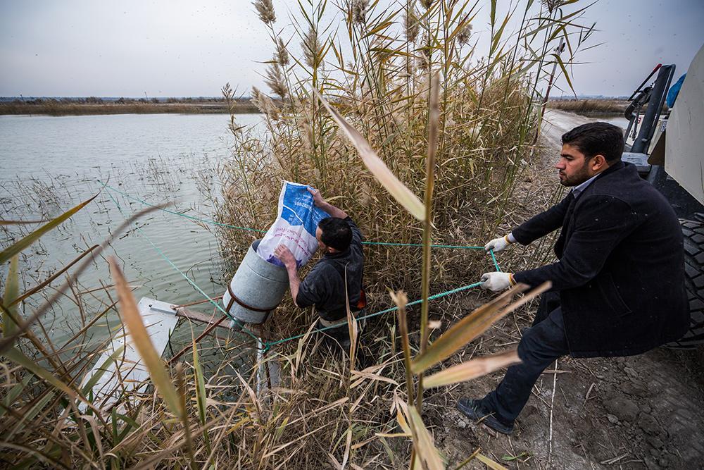 آلية التوزيع تكون بنسبة (250) سمكة "كراص وسلفر" لكل (1000) سمكة من "الكارب"، إذ تقوم أسماك الكراص بتنظيف البحيرات من الأعشاب التي تنمو فيها، وأما أسماك السلفر فهي تتغذى على فضلات الأسماك الأخرى وبالتالي يسهم ذلك في الحفاظ على نظافة البحيرة اما بالنسبة لعملية تنظيف البحيرات فهناك حملات سنوية لإدامتها وتنظيفها وتهيئتها لمواصلة إنتاجها للأسماك، حيث تعتبر هذه الأعمال من أولويّات إدامة الإنتاج وتحسين نوعيّته وإزالة الشوائب والعوالق الطينيّة وغيرها غير المرغوب بها، وتأتي هذه الأعمال مع قرب أعمال الصيد