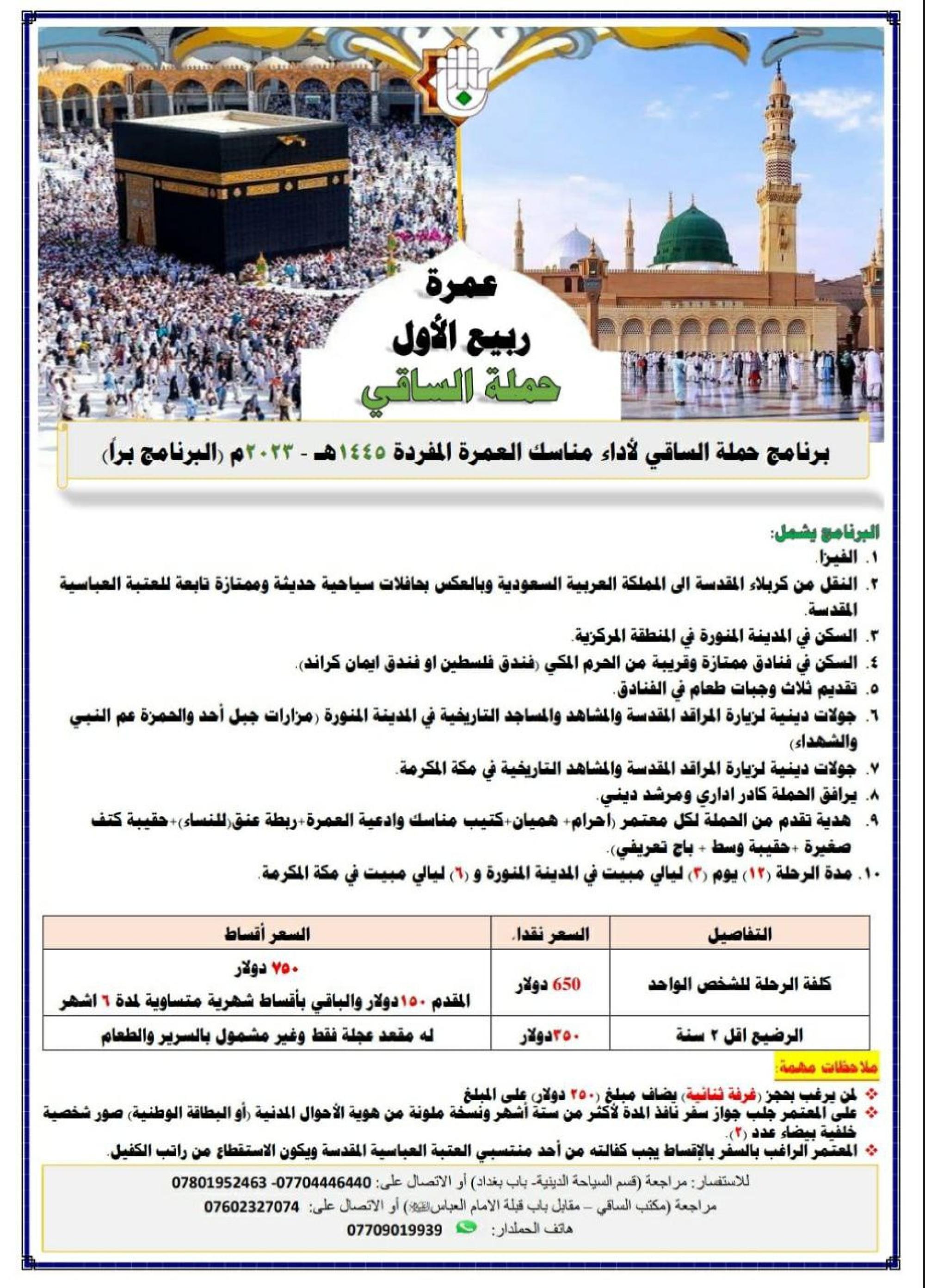 تقديم أفضل خدمات النقل لزوار العتبات المقدسة والمزارات الشريفة في العراق بأحدث وسائل النقل الخاص والحافات السياحية.