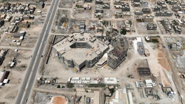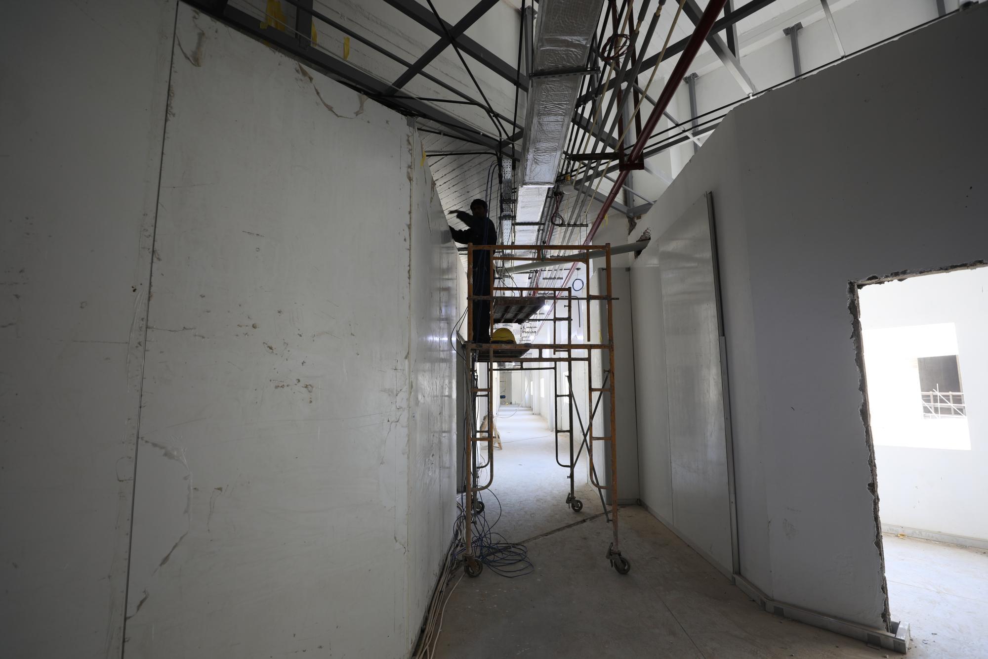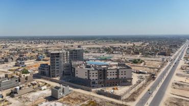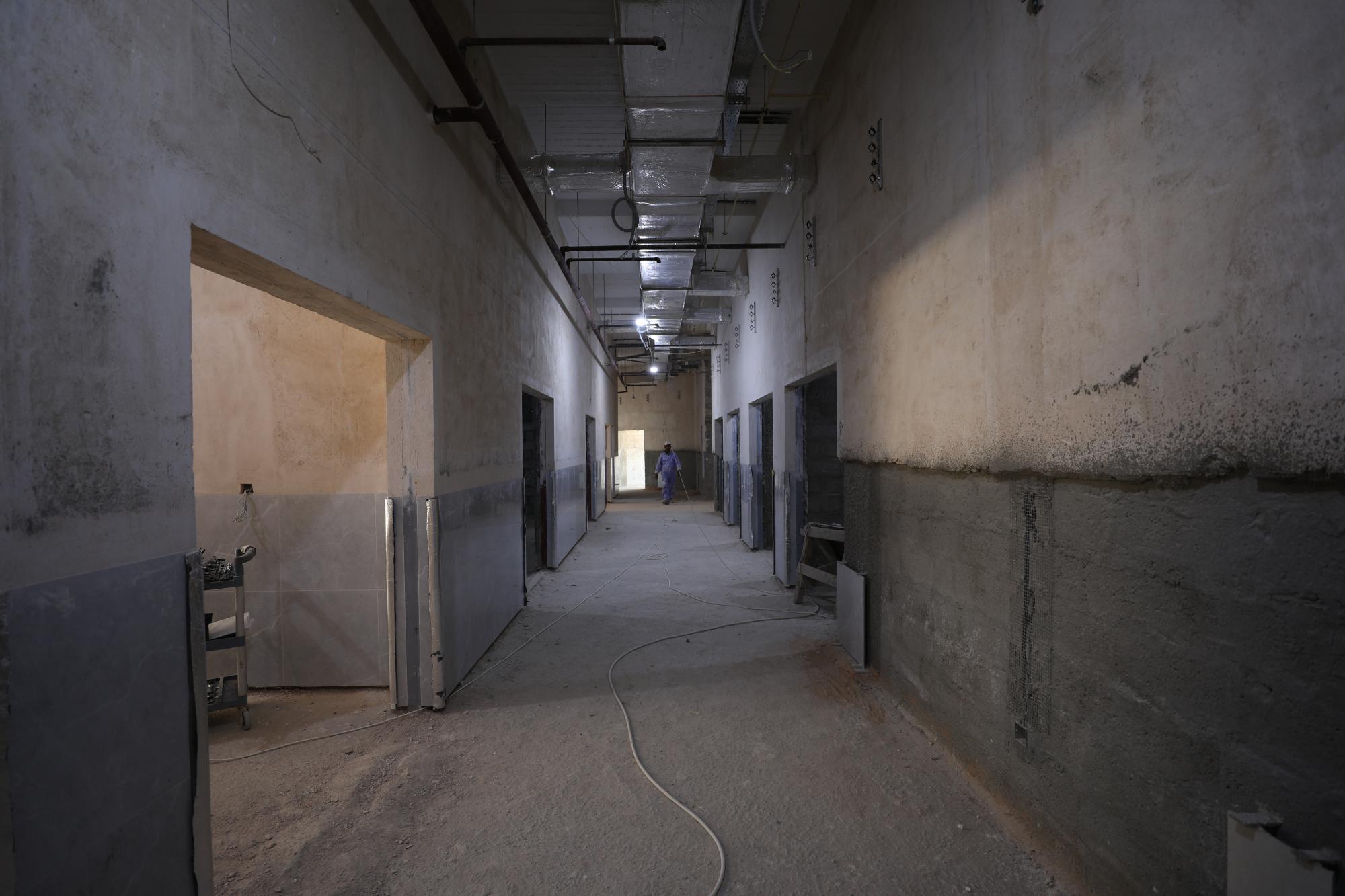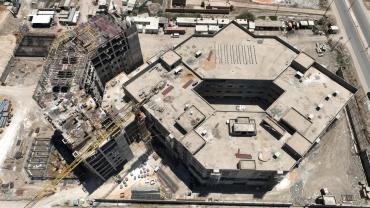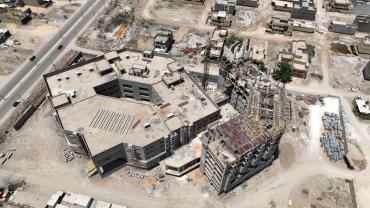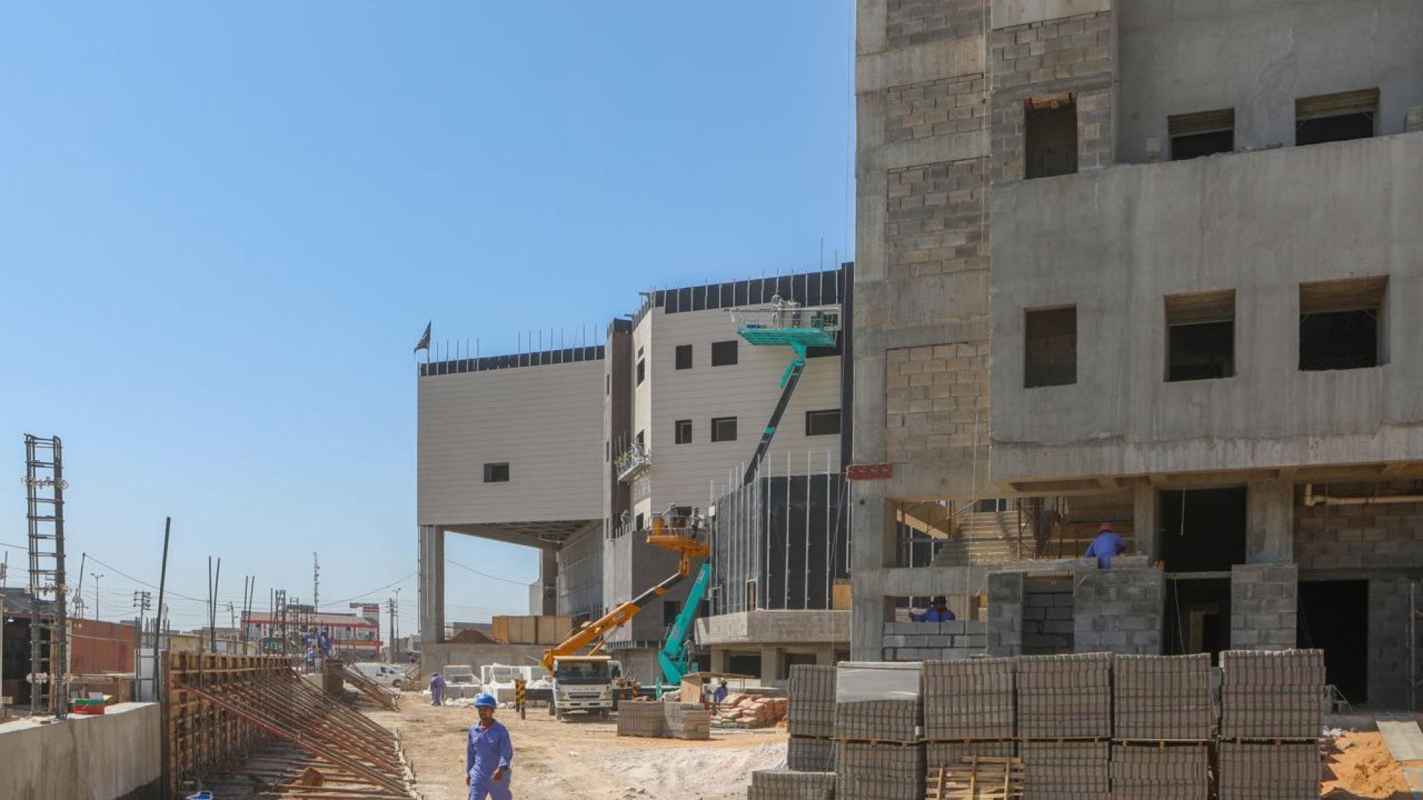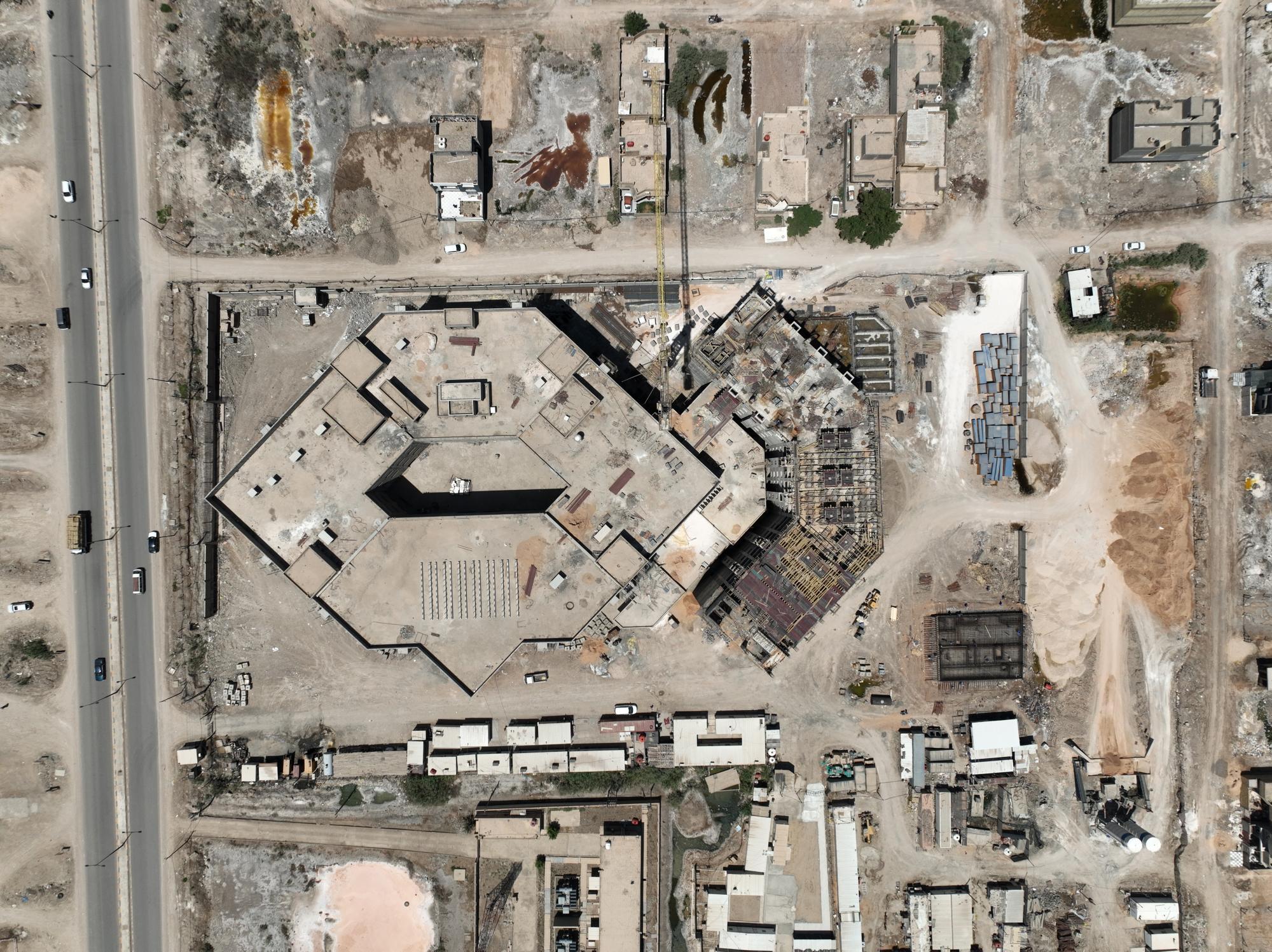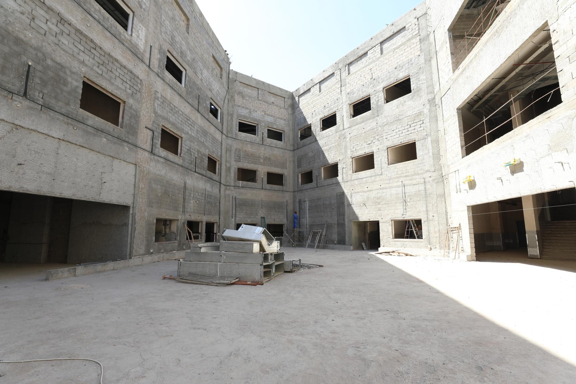 سعة المستشفى تبلغ (100) سرير ويُقام على مساحة بـــ(16,200 م2) ويتكون من ثلاثة طوابق وطابق تحت أرضي (سرداب) وبمساحة إجمالية (21,000 م2) ، ويبلغ إرتفاع المبنى (20 م) مضافاً لها بناية ثانوية للخدمات ، ويتكوّن من بنايتين الأولى هي بناية رئيسية للمستشفى ، والثانية هي بناية الخدمات وموقف السيارات مع مناطق خضراء ، واعتُمِد في تنفيذ المستشفى على بناء الهيكل الكونكريتي والأسس الحصيرية (raft foundation) والتقطيع الكونكريتي ، مع إستخدام التقنيات الحديثة كافة في أعمال الإنهاءات من الداخل والخارج والتي تشمل (التبريد المركزي الأعمال الكهربائية ، الأعمال الصحية) مع المنظومات الخدمية كافة) منظومة الإستدعاء ، منظومة إطفاء الحريق ، منظومة الكاميرات ، منظومة الإتصالات ، منظومة الغازات.