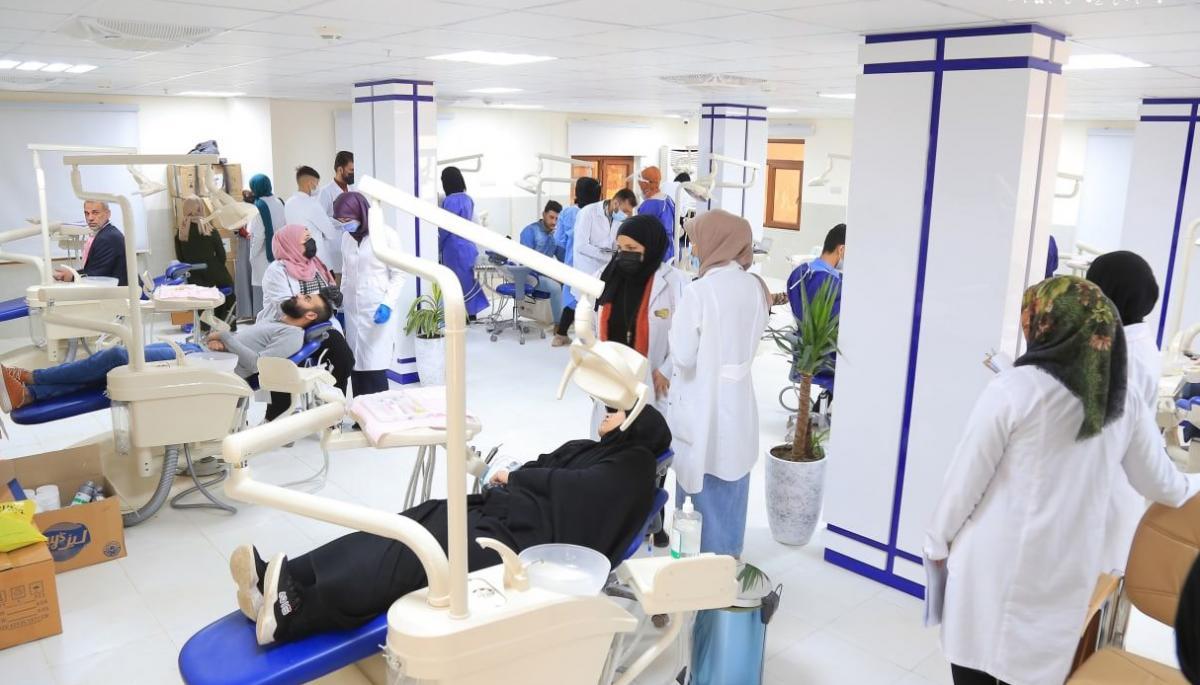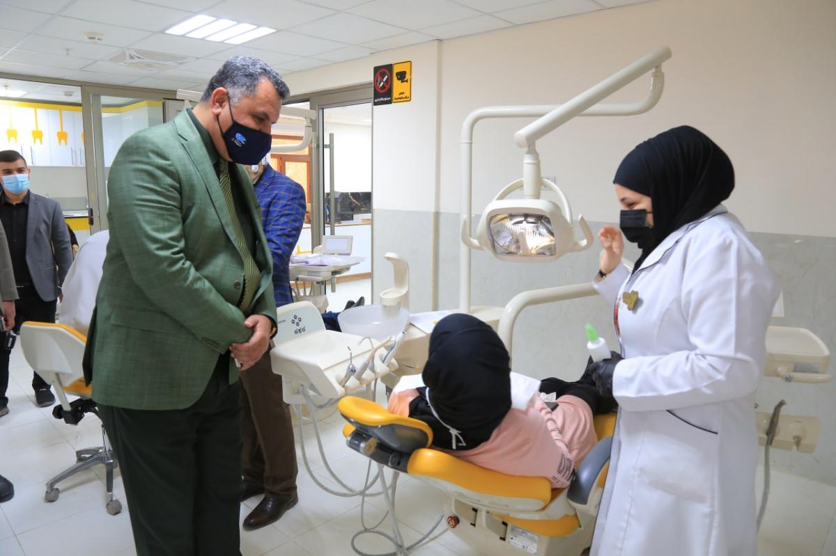 العمل على استقبال المراجعين لمدّة خمسة أيّام في الأسبوع وهي تستقبل عشرات الحالات يوميّاً بمختلف تخصّصات طبّ الأسنان كحالات قلع الأسنان وعمل حشواتها الدائمة والمؤقّتة، إضافةً إلى التعويضات السنّية الثابتة (التيجان والجسور، التقويم، تركيب أسنان ثابتة، تركيب الأسنان الكامل والجزئيّ، قسم العناية بأسنان الأطفال، تنظيف الأسنان والعناية باللثّة)، وهناك حالاتٌ تتطلّب أكثر من جلسة وحسب نوعيّة الحالة، وإنّ المراجعين لم يقتصروا على فئةٍ عمريّة معيّنة أو جنسٍ واحد، والموادّ الطبّية واللوجستيّة المستخدمة هي من مناشئ عالميّة رصينة، ومواصفاتها معتَمَدة من قِبل وزارة الصحّة العراقيّة، وباتّباع معايير السامة والأمان ضمن آليّة الاعتماد الأكاديميّ.