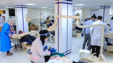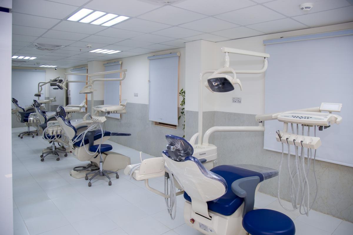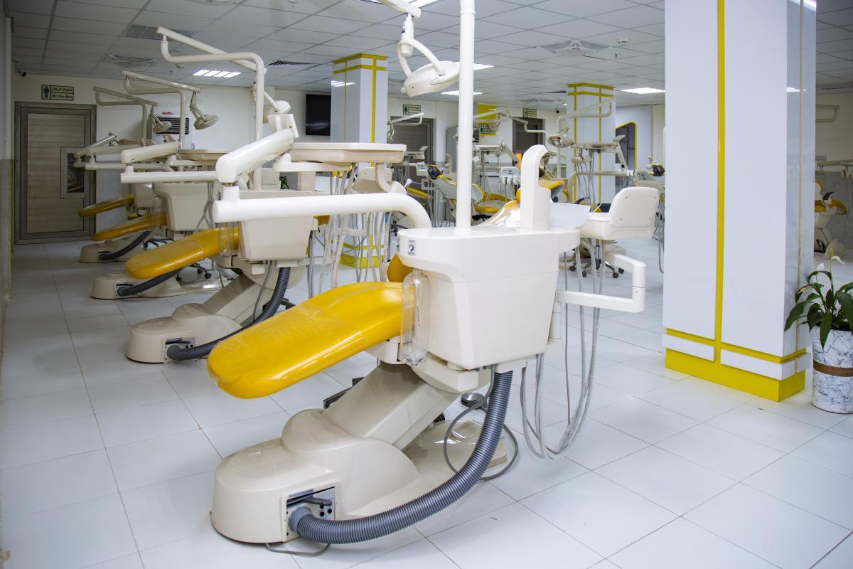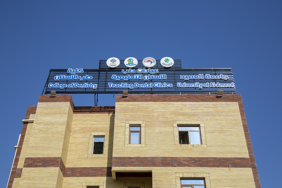 عيادات في كلية طب الأسنان في جامعة العميد التابعة لهيأة التربية والتعليم العالي في العتبة العباسية المقدسة تستقبل الحالات المرضيّة وتقدم الخدمات العلاجية والطبّية لها وهي تحت إشراف الملاكات التدريسية في الجامعة.