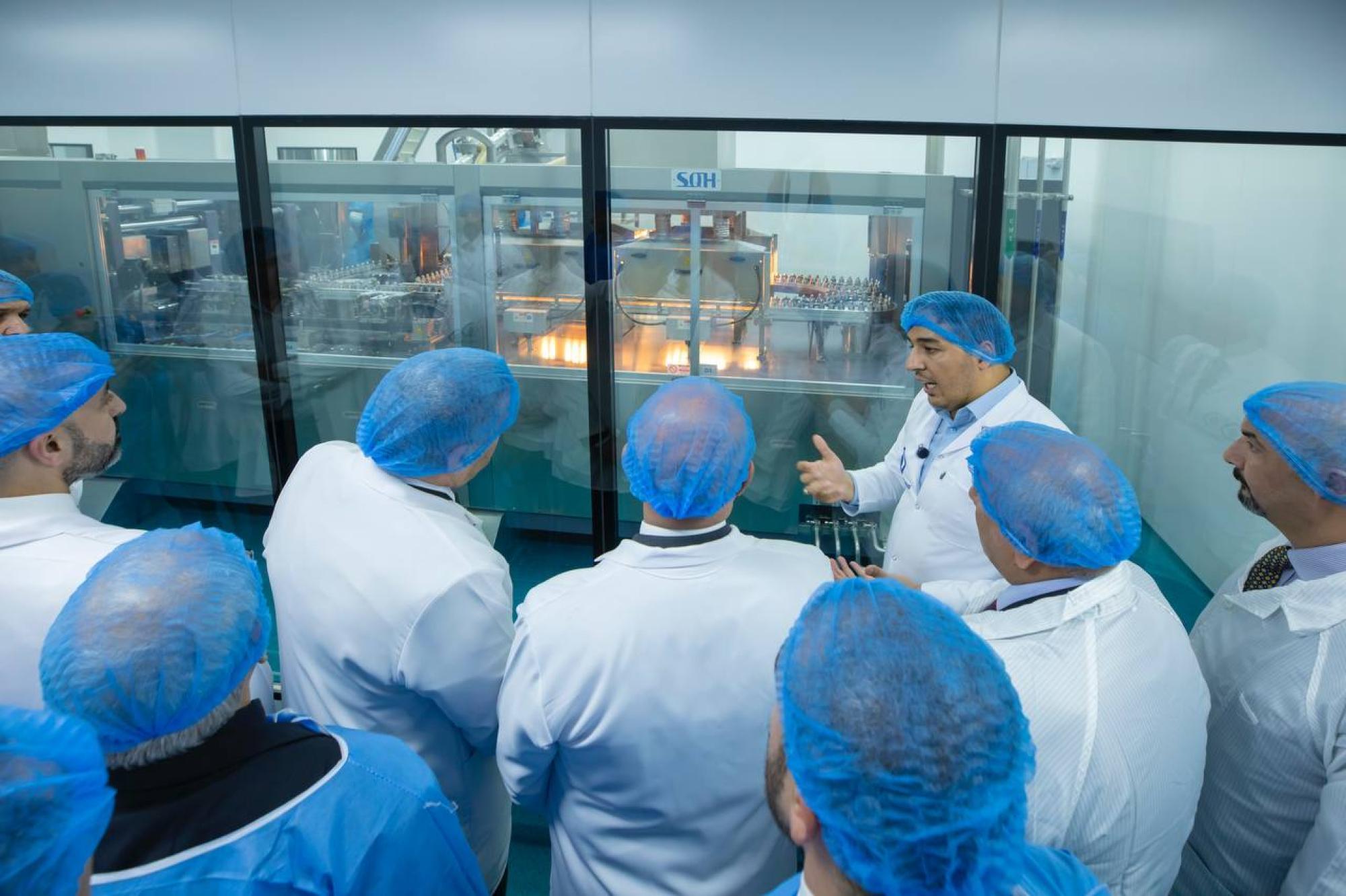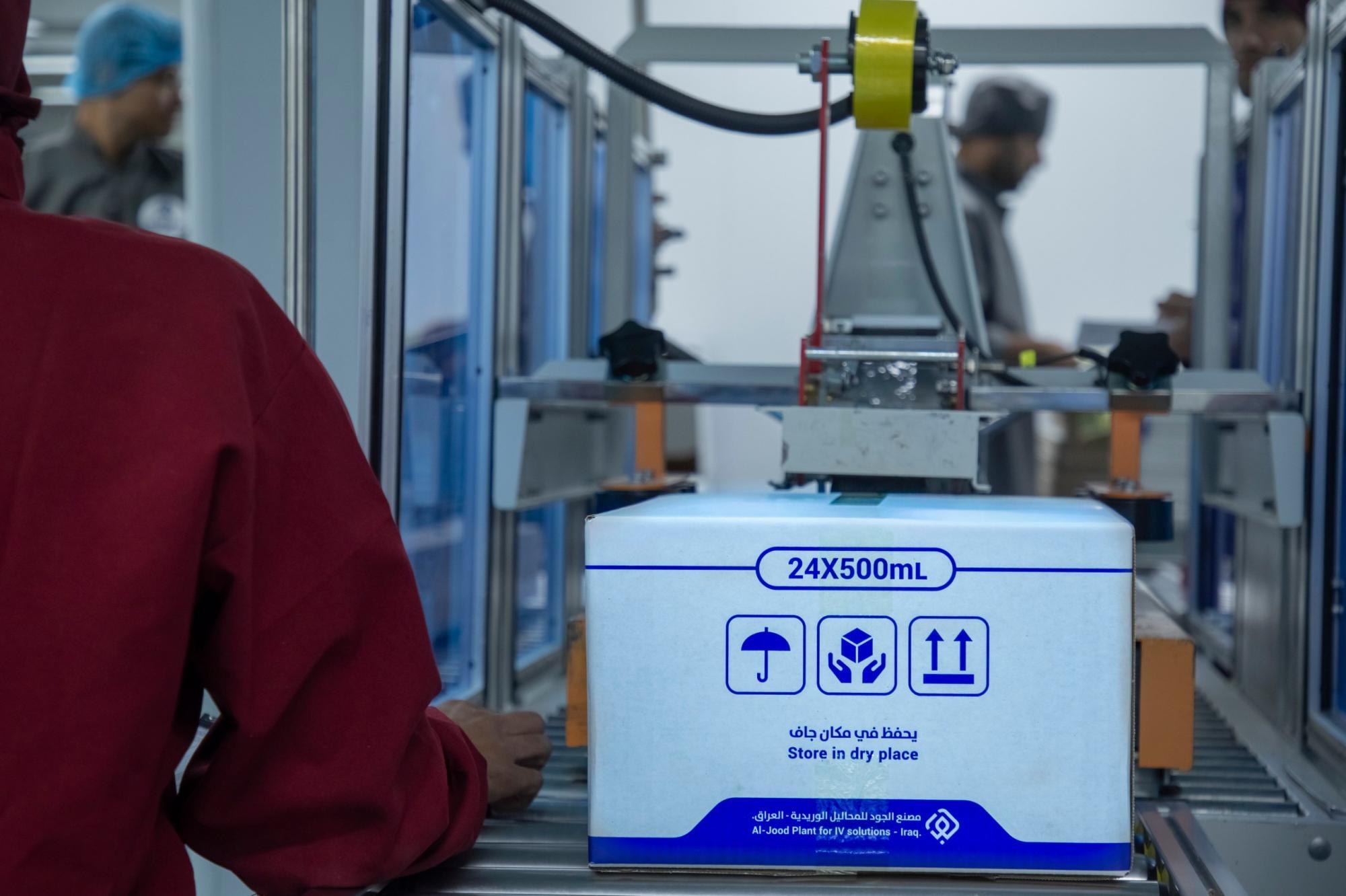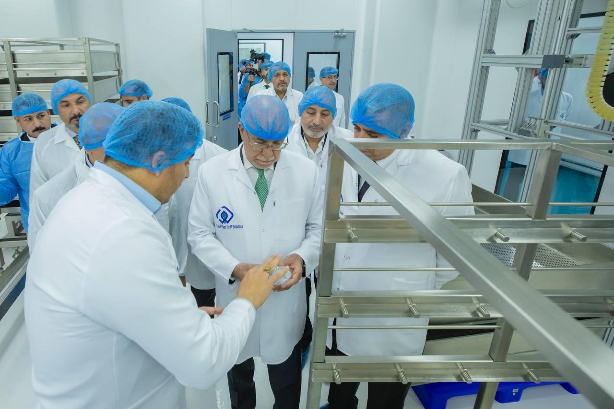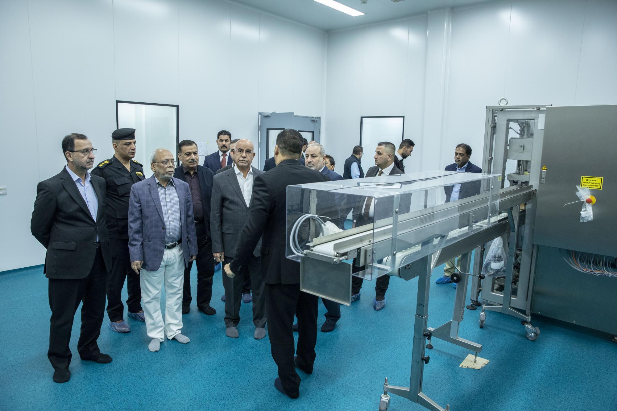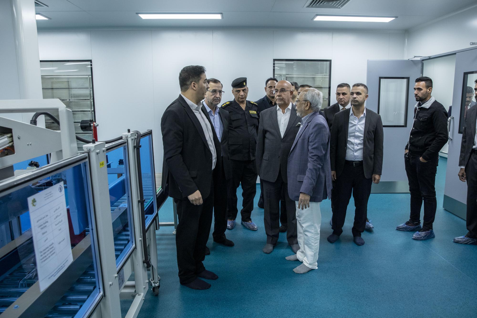 مساحة المشروع تبلغ (6,000 م2) ومؤلفة من طابقين مساحة الطابق الأرضي (2,681) م2 والثاني منه (825) م2 ، إضافة إلى أبنية ملحقة بمساحة (300 م2)، وأن تجهيز هذا المصنع بالمعدات والأجهزة تم عن طريق شركة (رومياك) السويسرية وهي أحد الشركات الرائدة في تجهيز المكائن والمعدات الخاصة بإنتاج المحاليل الوريدية حيث سيتم نصب ثلاثة من المكائن في الطابق الأول من المشروع وهي ماكنة ( Autoclave) وهي مختصة بعمليات التعقيم والتي تعمل تحت درجة حرارة و ضغط عاليين تكون كافية للقضاء على الفيروسات والبكتيريا وماكنة (Rommelag) وتستخدم لتعبئة المنتجات الدوائية المعقمة وماكنة (cap melding) لتغليف المنتج وطبع العلامة والصلاحية والنفاذية.