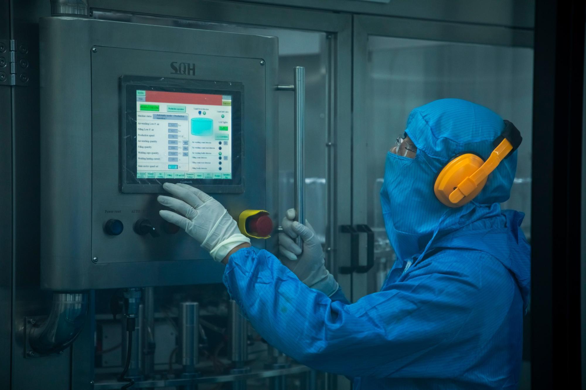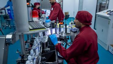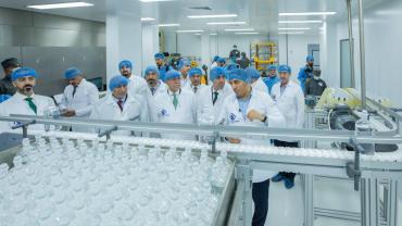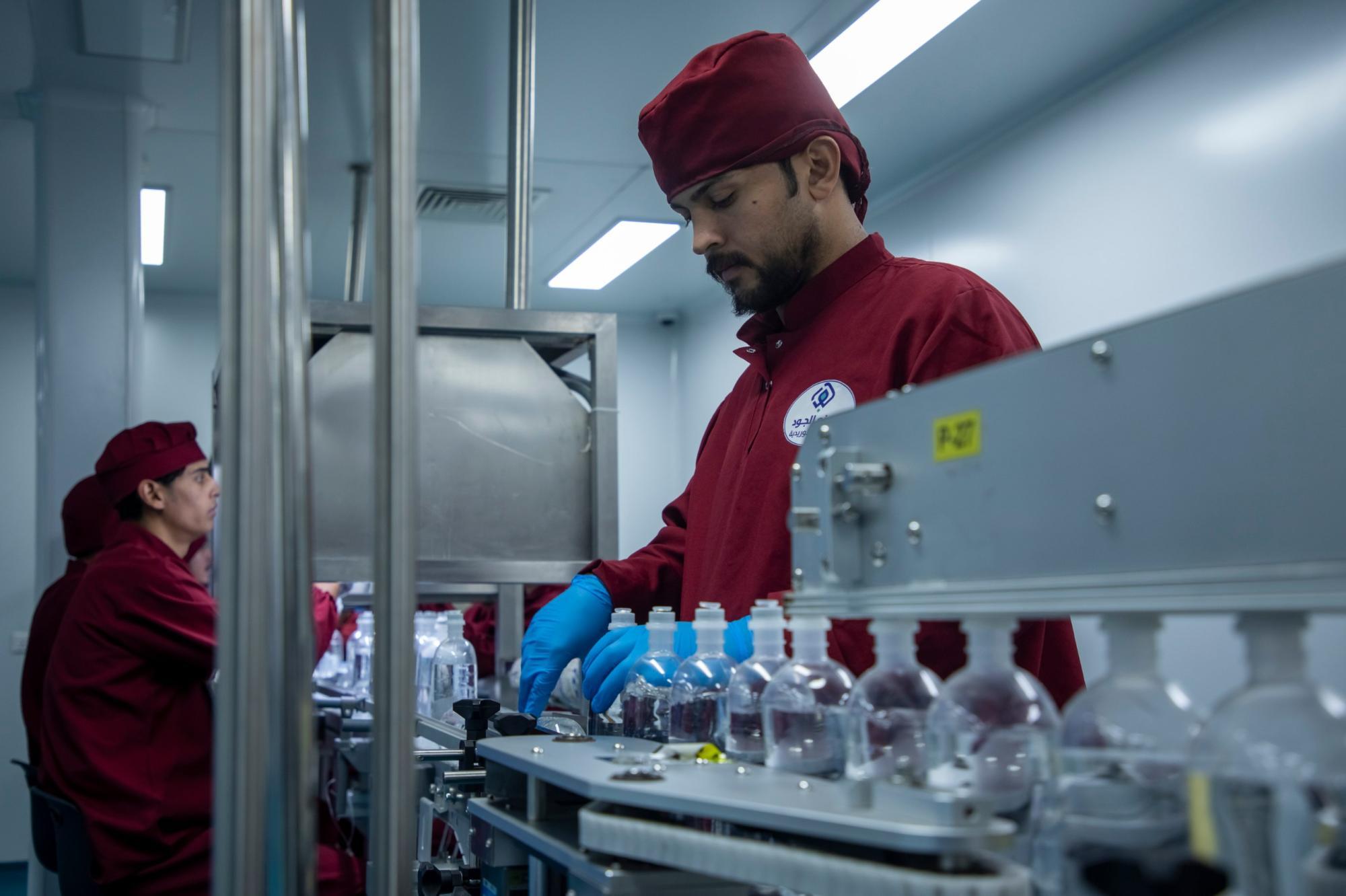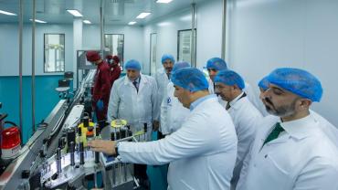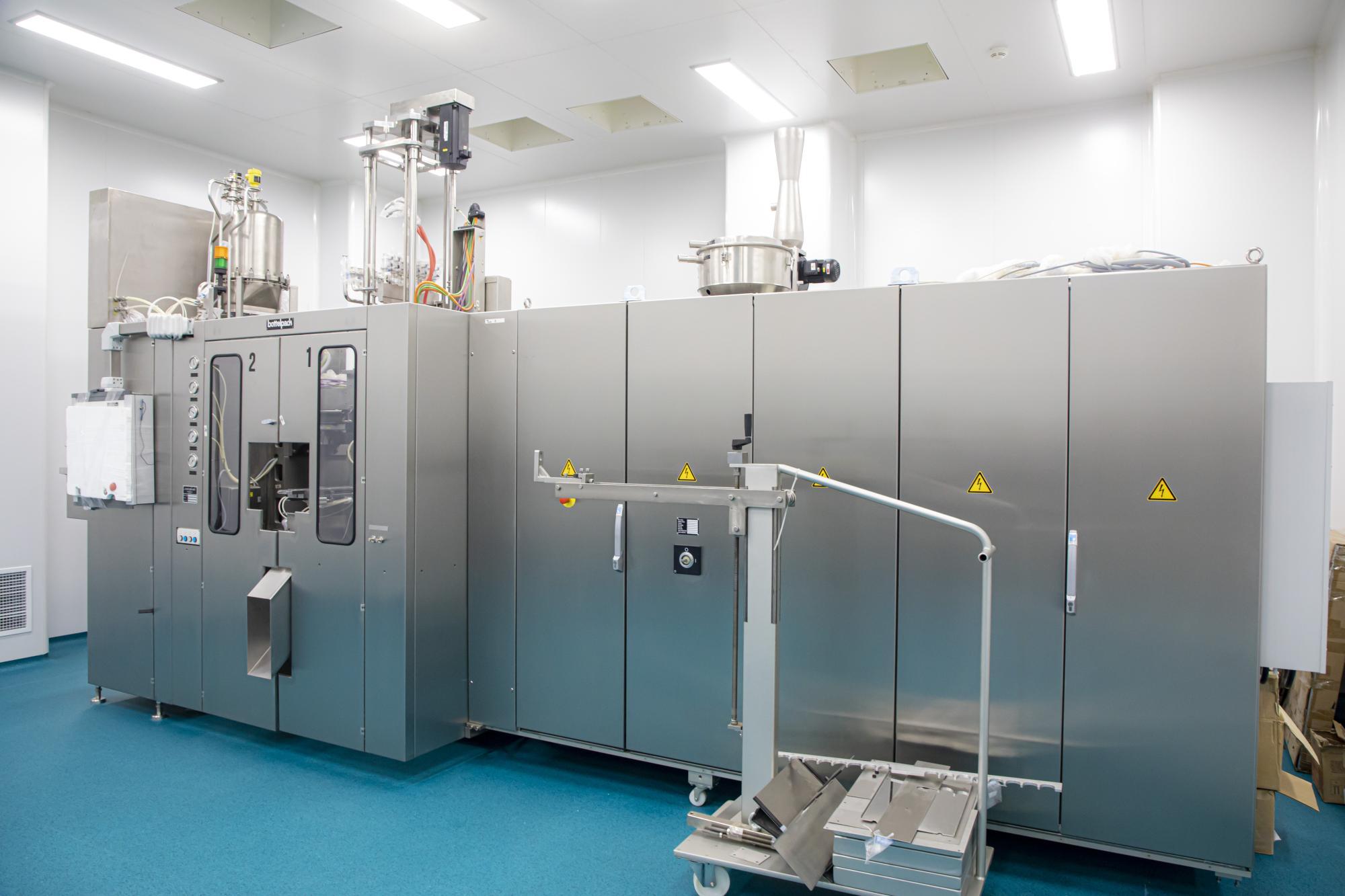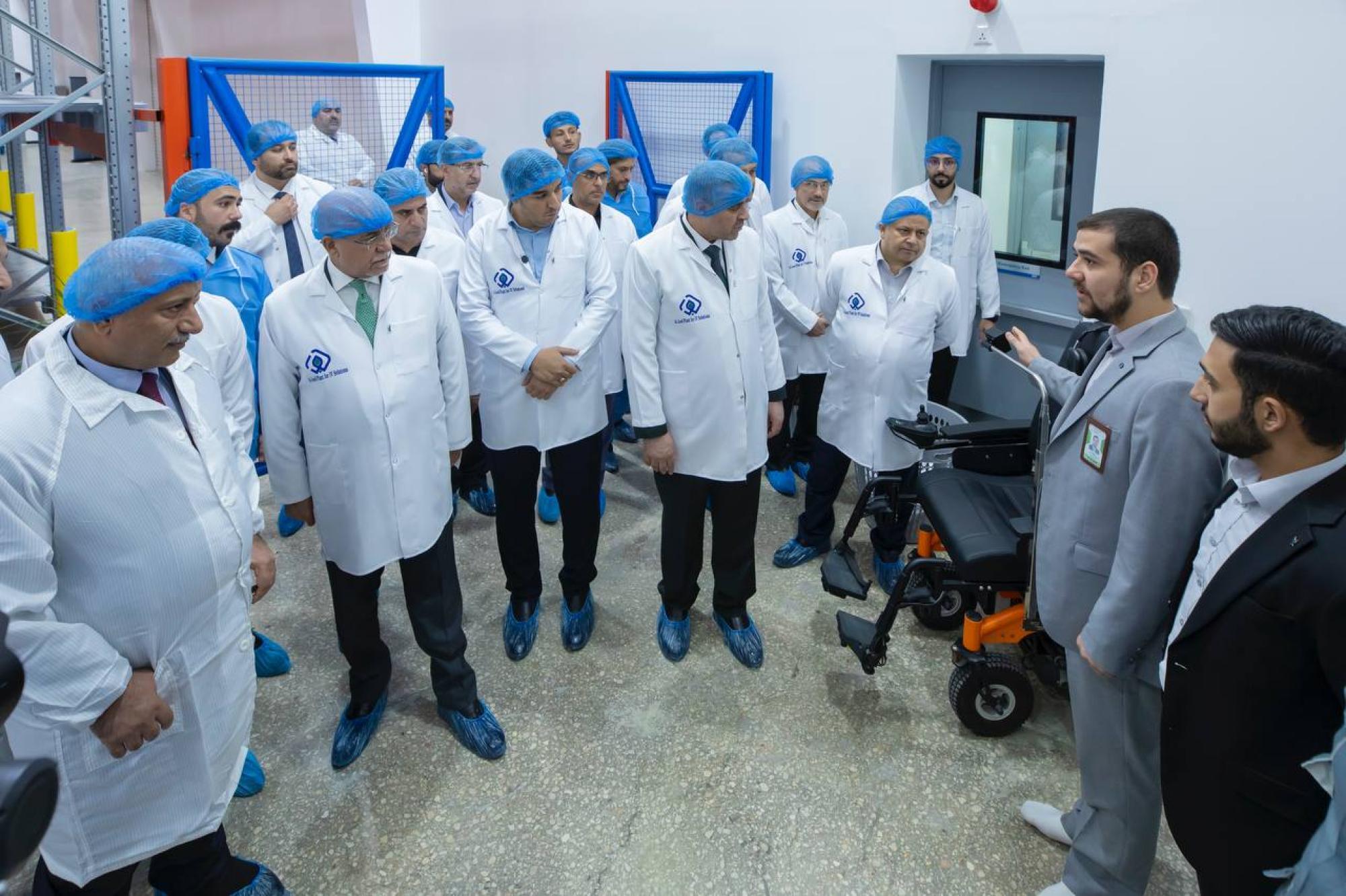 مساحة المشروع تبلغ (6,000 م2) ومؤلفة من طابقين مساحة الطابق الأرضي (2,681) م2 والثاني منه (825) م2 ، إضافة إلى أبنية ملحقة بمساحة (300 م2)، وأن تجهيز هذا المصنع بالمعدات والأجهزة تم عن طريق شركة (رومياك) السويسرية وهي أحد الشركات الرائدة في تجهيز المكائن والمعدات الخاصة بإنتاج المحاليل الوريدية حيث سيتم نصب ثلاثة من المكائن في الطابق الأول من المشروع وهي ماكنة ( Autoclave) وهي مختصة بعمليات التعقيم والتي تعمل تحت درجة حرارة و ضغط عاليين تكون كافية للقضاء على الفيروسات والبكتيريا وماكنة (Rommelag) وتستخدم لتعبئة المنتجات الدوائية المعقمة وماكنة (cap melding) لتغليف المنتج وطبع العلامة والصلاحية والنفاذية.