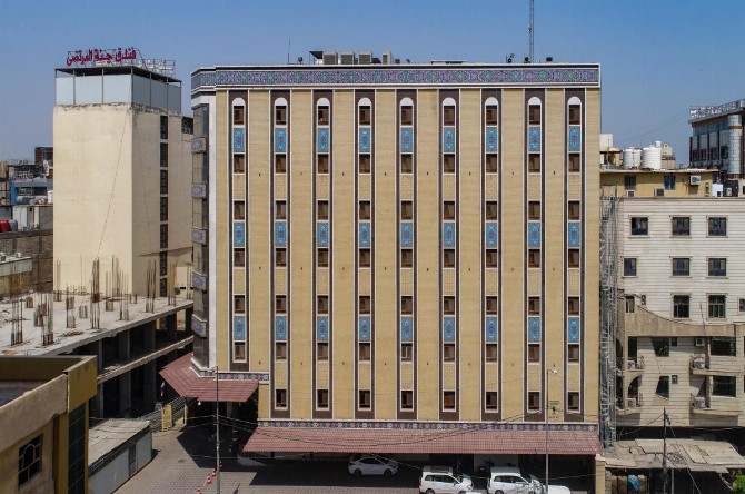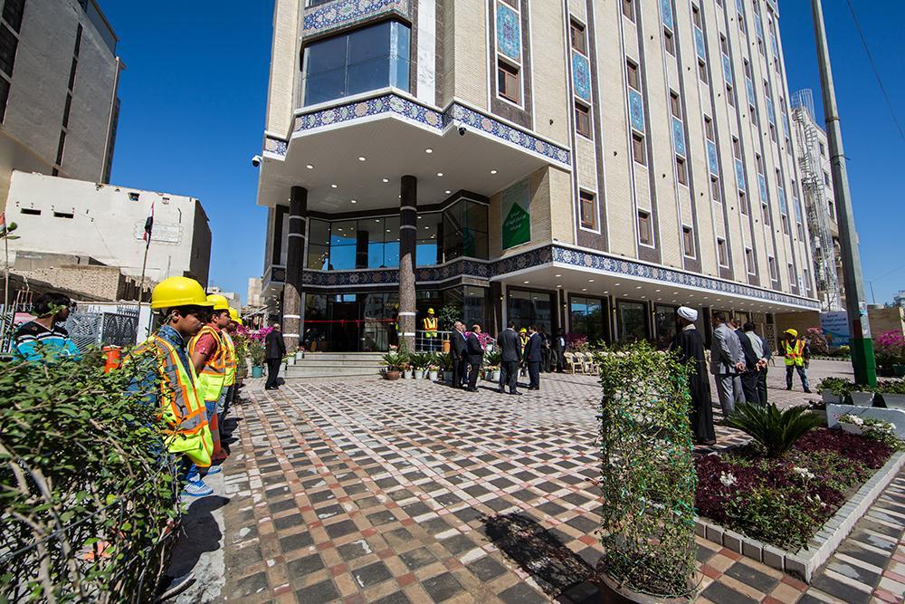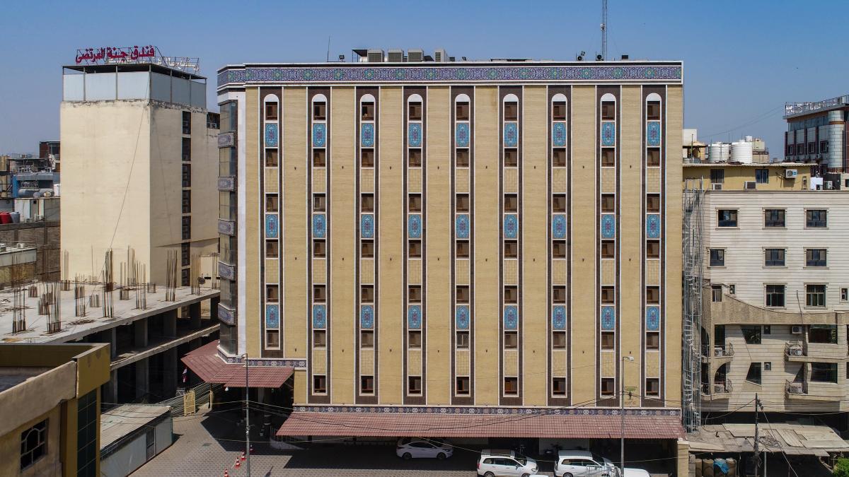 شُيّد المشروع على مساحةٍ (1,000) م2 عدا مساحة فضاء الرصيف، ويتألّف من ثمانية طوابق مع سرداب، نوع المنشأ مبنى خراسانيّ متكوّن من أساسٍ حصيريّ وأعمدة وسقوف وجسور خرسانية، يحتوي على سرداب عبارة عن مجاميع صحّية رجالية ونسائية عددُها (100) وحدة صحّية، وخُصّص الطابق الأوّل للإستقبال، وخُصّصت الطوابق الأخرى كشققٍ فندقية متنوّعة بين (سويتات) وغرفٍ خاصّة بواقع (110) غرفة مقسّمة عليها بالتساوي، وطابقٌ مخصّص لقسم المضيف وهو عبارة عن مطبخٍ مركزيّ وصالة طعام، أمّا الطابق الأخير فهو عبارة عن صالتين إحداهما كبيرة والأخرى صغيرة، وهو مزوّد بمجموعة من المنظومات ، منظومة كهربائية : (نظام إنارة متكامل، الإنذار عن الحريق، الإتصالات ومنظومة الأنترنت...) ، أما الأنظمة الميكانيكية : (نظام التبريد والتدفئة، نظام الماء المثلج، نظام الماء الحار، نظام التهوية...)، في حين شملت الواجهات الخارجية (تغليف الخارج بالمرمر، والإنهاءات الداخلية فيتم طلائها بمادة الجص والبياض مع السيراميك، والشبابيك من الألمنيوم...).