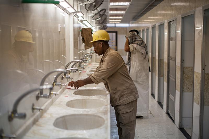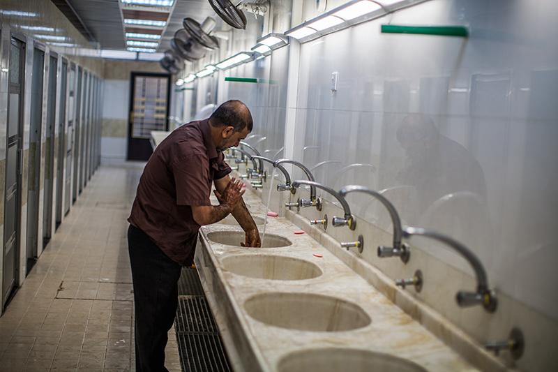 يقدّم خدماته للزائرين بواقع طابقين كل طابق من هاذين الطابقين ينقسم الى جزئين، جزء خاص بالرجال يتالف من (32) وحدة صحية مناصفة بين الطابقين والجزء الأخر خاص بالنساء ويتألف من (38) وحدة صحية مناصفة بين الطابقين، ويحتوي المجمع كذلك على أماكن للوضوء وأخرى لشرب الماء وغرف إدارية واحد للرجال وآخر للنساء وبمساحة إجمالية تبلغ (360) م2 وارتفاع (9متر و 45 سم)، ويعمل على توفير جملة من الخدمات تساهم في فكّ بعض الإزدحامات التي تحصل أثناء الزيارات المليونية، كما تمّ تزويد المشروع بمنظومات متطورة لدفع الهواء، ومنظومة إنارة وإنذار وتغذية مائية، إضافة لمنظومة متكاملة للصرف الصحي، وتمّ تغليف الواجهات الخارجية للمبنى بمادة المرمر، والأرضيات بالسيراميك، كذلك تمّ تزويده بنظام إنارة متكامل، ومنظومة مانعة للصواعق, مع نظام تأريض ونظام التكييف والتدفئة، ونظام التهوية.