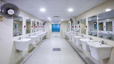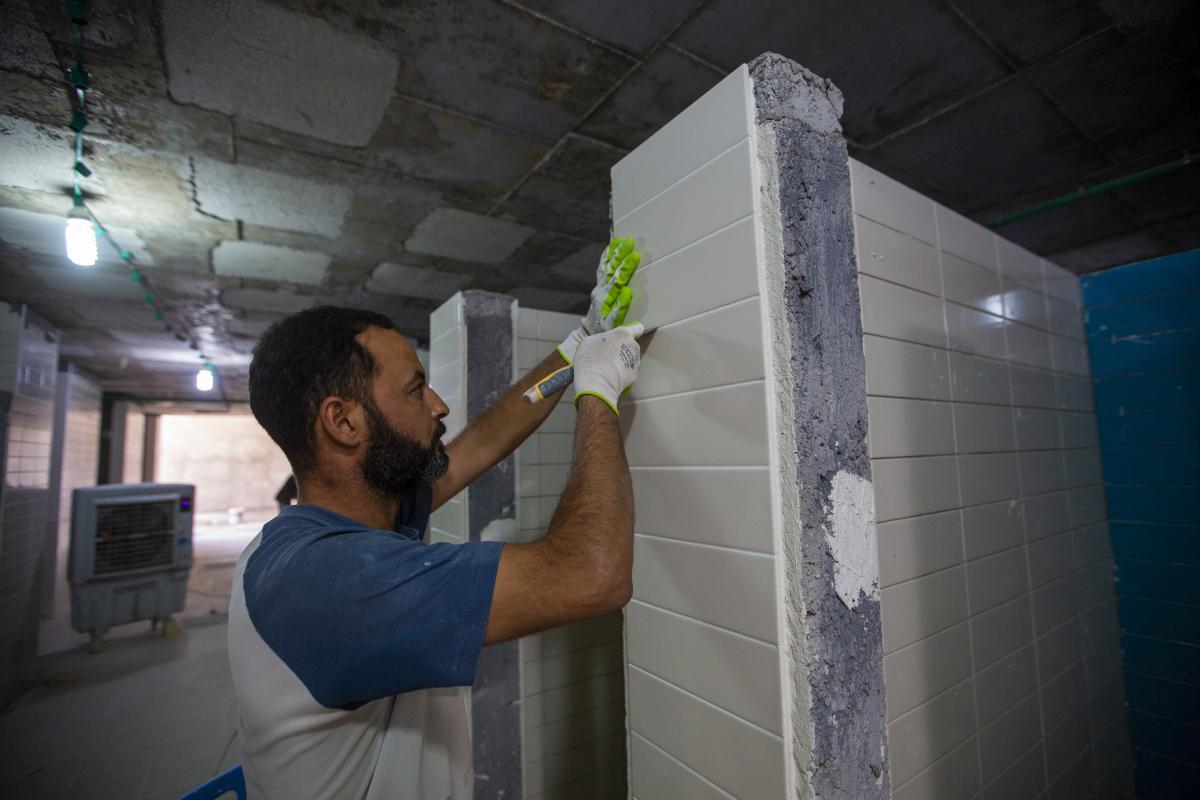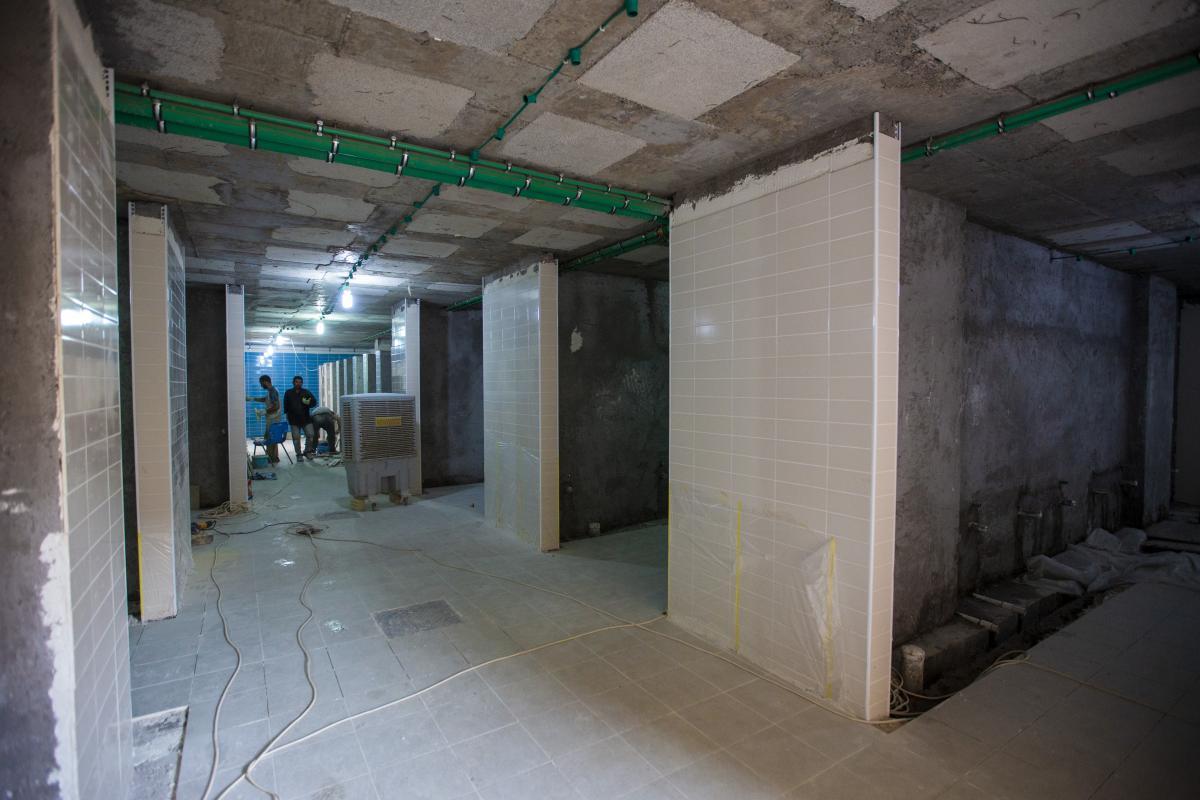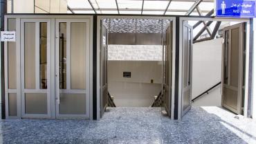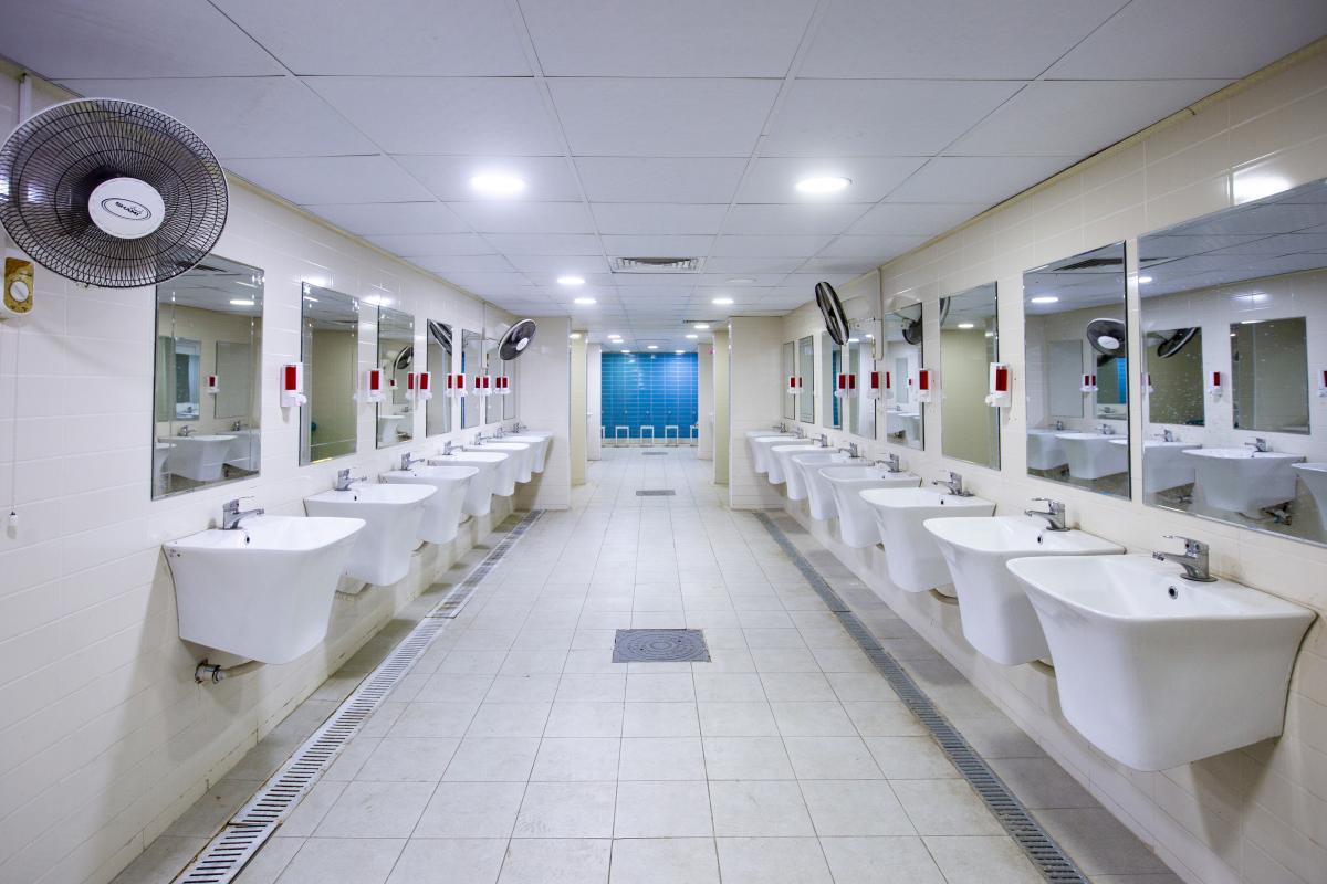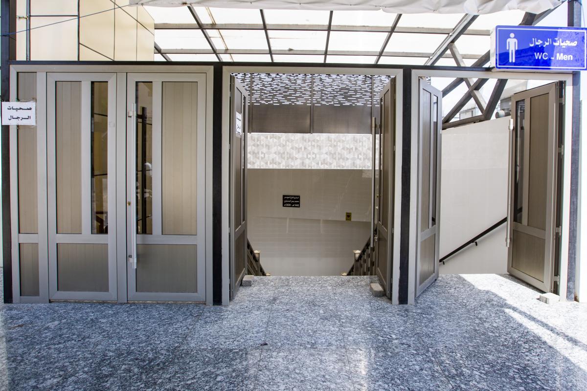مساحة المشروع الإجماليّة تبلغ (1,500 م2) ويضمّ (200) وحدةٍ صحيّة مناصفةً بين الرجال والنساء وتقع تحت سطح الأرض، مع إستثمار مساحتها الفوقيّة التي تقدّر بــ(656 م2)، بشكلٍ يُضفي جماليّةً للمنطقة وللطريق الذي يسلكه الزائرون، وهو مزُوّد بأماكن خاصّة بذوي الاحتياجات الخاصّة والعجزة، وقد تمّ تجهيزه بمنظوماتٍ متكاملة تتلاءم وطبيعة المشروع، من المضخّات ومحطّات الرفع وسخّانات المياه والمبادلات الحراريّة وخزّانات المياه وغرف السيطرة والإدارة والمخازن، إضافةً إلى منظومةٍ حديثة ومتطوّرة لتبديل الهواء وتنقية أجواء المجمّع، وأماكن للوضوء وأخرى لشرب الماء، ومنظومة صرف صحّي ونظام إنارة متكامل، ومنظومة مانعة للصواعق إضافةً الى نظام التأريض ونظام التكييف والتدفئة.