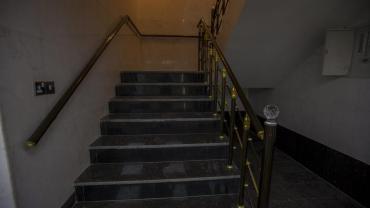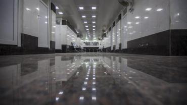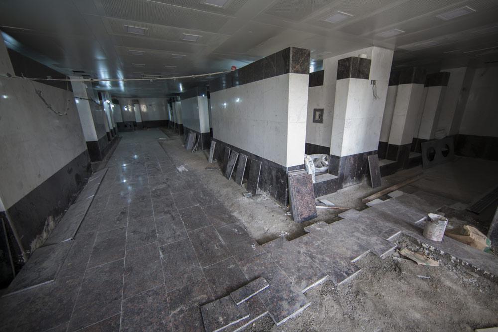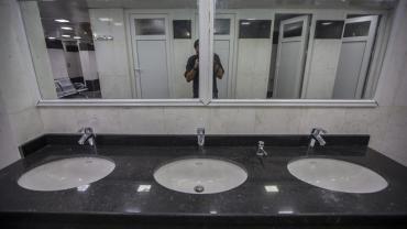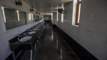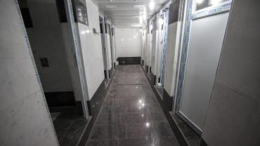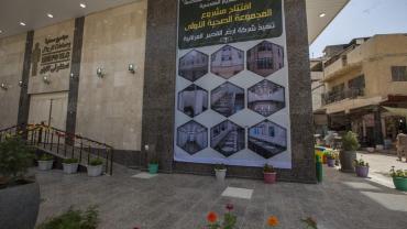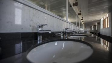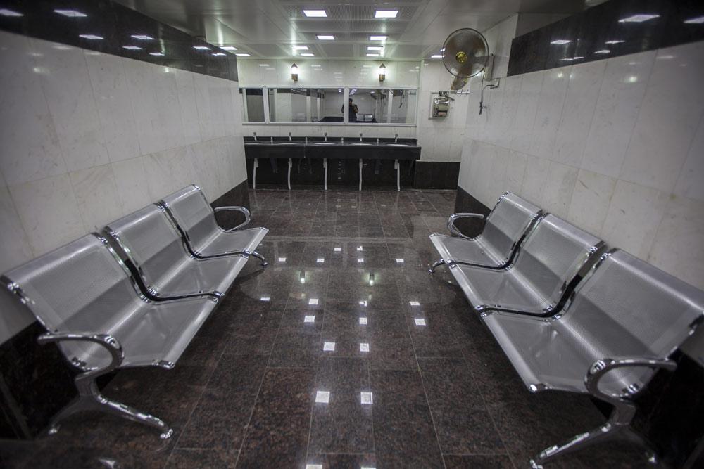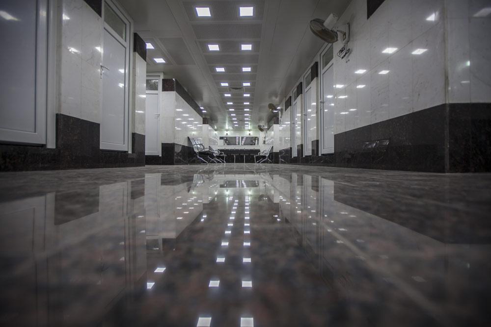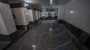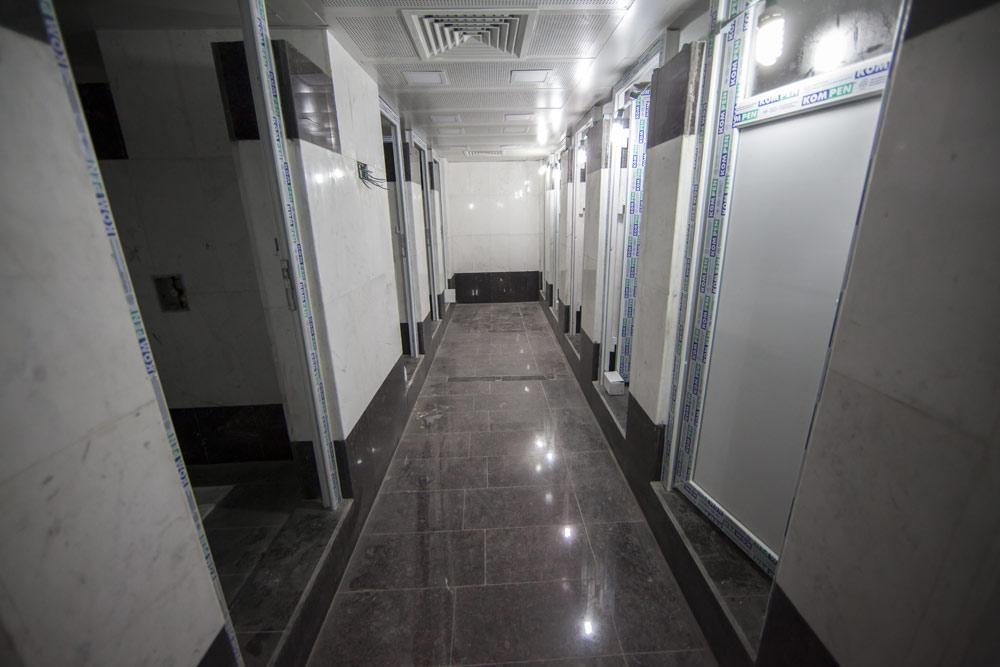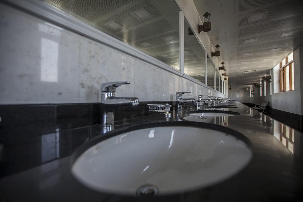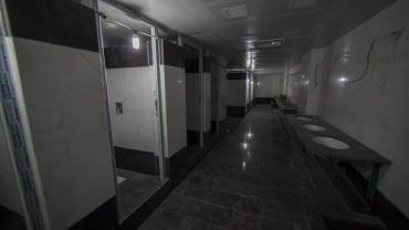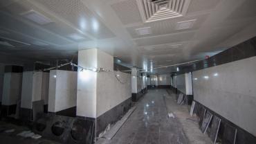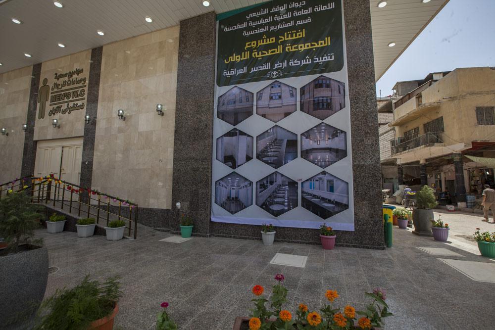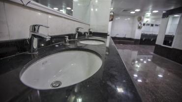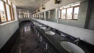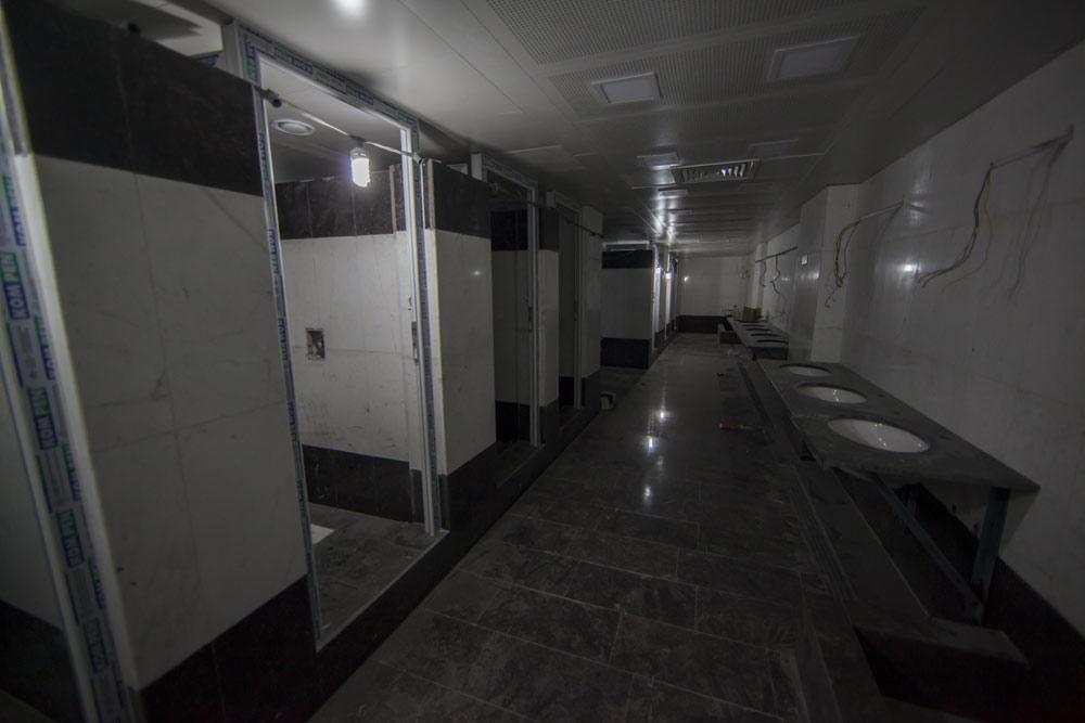 يقع على مساحةٌ تبلغ (331,4 م2) بواقع ثلاثة طوابق اشتملت على (181) وحدة صحّية، (88) منها خاصّة بالنساء و (90) خاصّة بالرجال و (3) منها لذوي الاحتياجات الخاصة، مع أماكن للوضوء وأخرى لغسل الأرجل، زُوّد المشروعُ بمنظومات متطوّرة لدفع الهواء، ومنظومة الصابون السائل، ومنظومة إنارة وإنذار وتغذية مائية، إضافةً لمنظومةٍ متكاملة للصرف الصحيّ، وتمّ تغليف الواجهات الخارجية للمبنى بحجر المرمر، والأرضيات بالسيراميك، كذلك تمّ تزويده بنظام إنارة متكامل، ومنظومة مانعة الصواعق, مع نظام التأريض ونظام التكييف والتدفئة، ونظام التهوية.