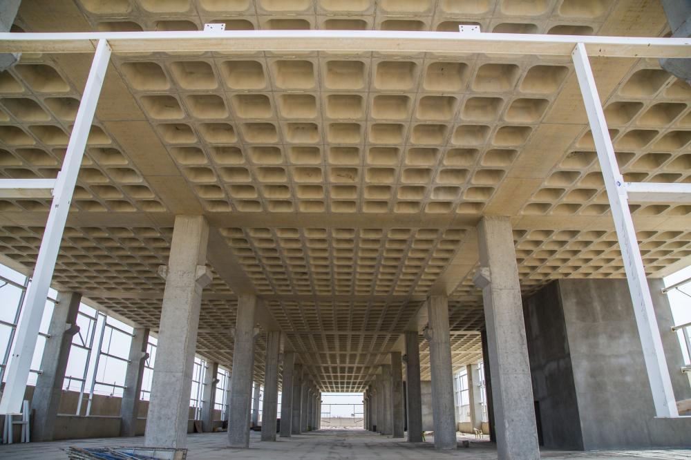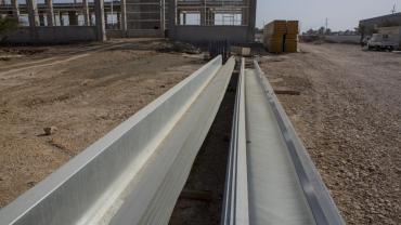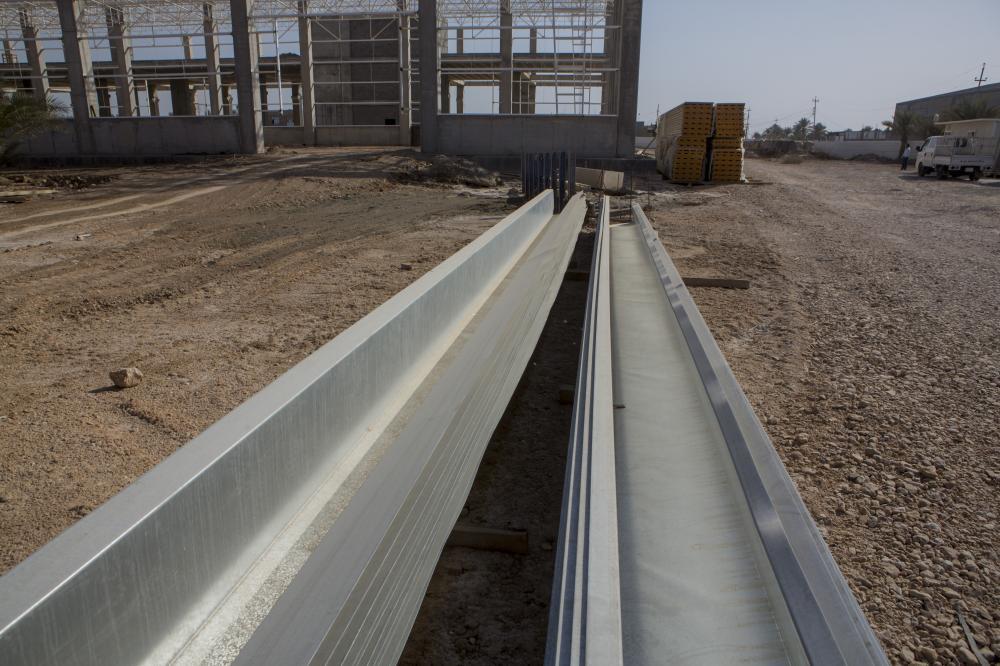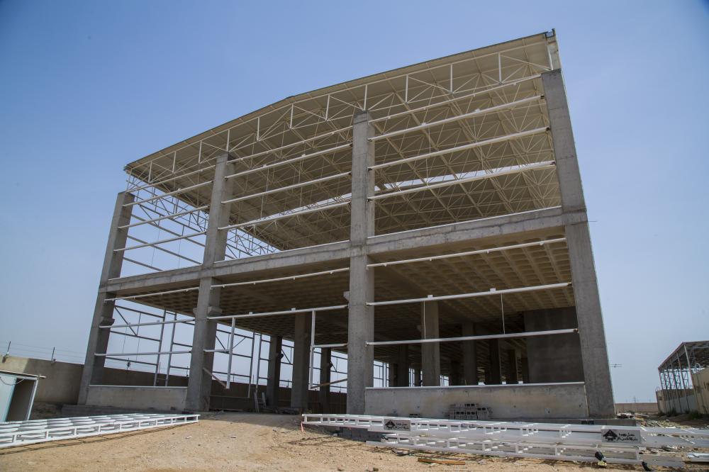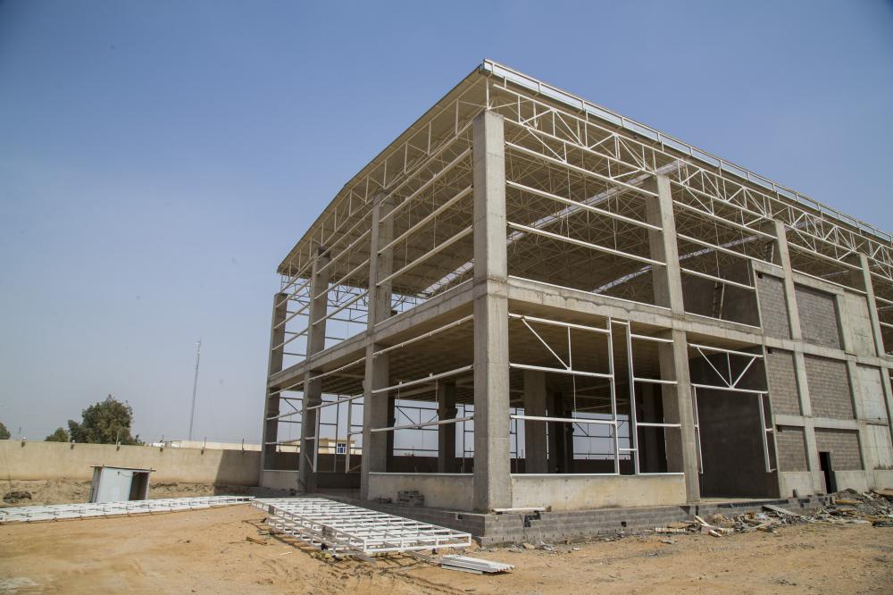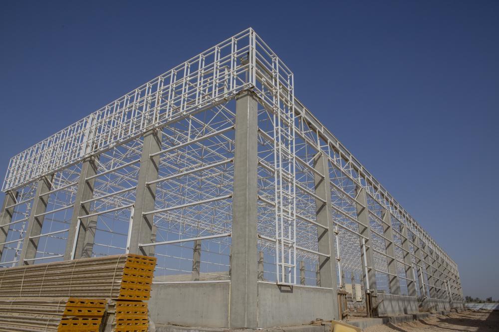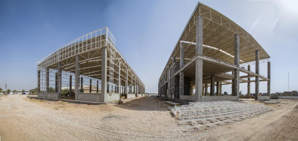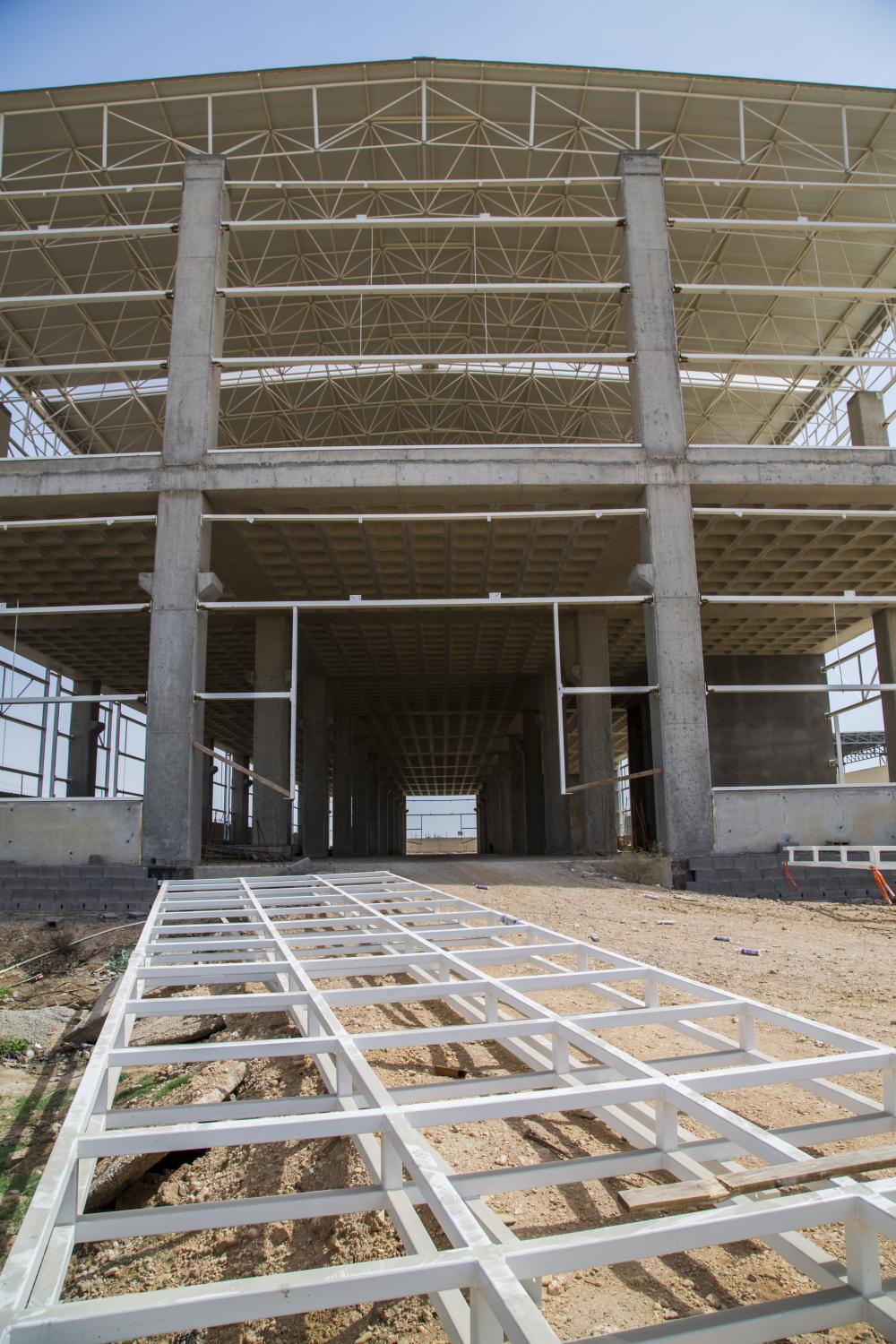 أن المشروعَ يُقسم الى قسمين القسم الأوّل : عبارة عن ورشة تتألّف من طابقين تبلغ مساحة الطابق الواحد (3,000) م2 بعُرْض (30) م وطول (100) م نفذت بطريقةٍ حديثة وبفضاء مفتوح، ويبلغ إرتفاع كل طابق (8) م ويفصل بين الطابقين سطحٌ استُخدمت فيه تقنيةُ (RibbedSlap) وهي من التقنيّات الحديثة في المباني الإنشائيّة، وتتّصف بميزات عديدة كالقوّة والمتانة وخفّة الوزن، وتمّ تزويد هذه الورشة بمصعدين ذي سعاتٍ مختلفة تتلاءم مع ما يتمّ استثمارُه مستقبلاً، بالإضافة الى سلّمين للحالات الطارئة ومجموعتين صحّيّتين. القسم الثاني : عبارة عن مخزن مساحته (2,500) م2 ويبلغ ارتفاعه (10,15) م وبعُرْض (25) م وطول (100) م، وقد روعيت في تنفيذه جميعُ الأمور الفنّية والهندسيّة الخاصّة بإنشاء مثل هكذا مخازن من ناحية الأُسس وربط الأعمدة الخرسانيّة أو من تغليف المخزن من الخارج وغيرها من الأمور التي تتلاءم مع طرق استخدامه.