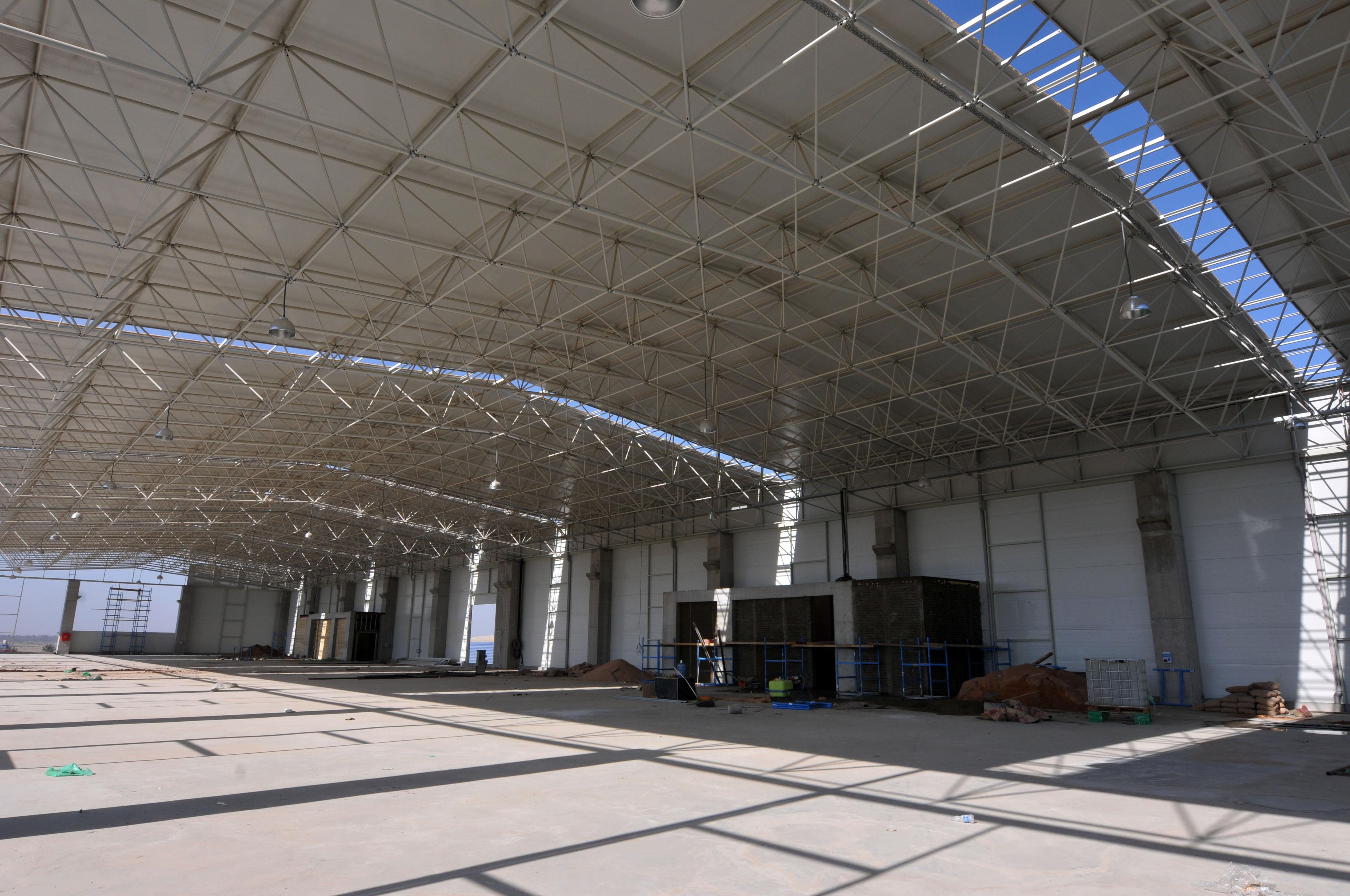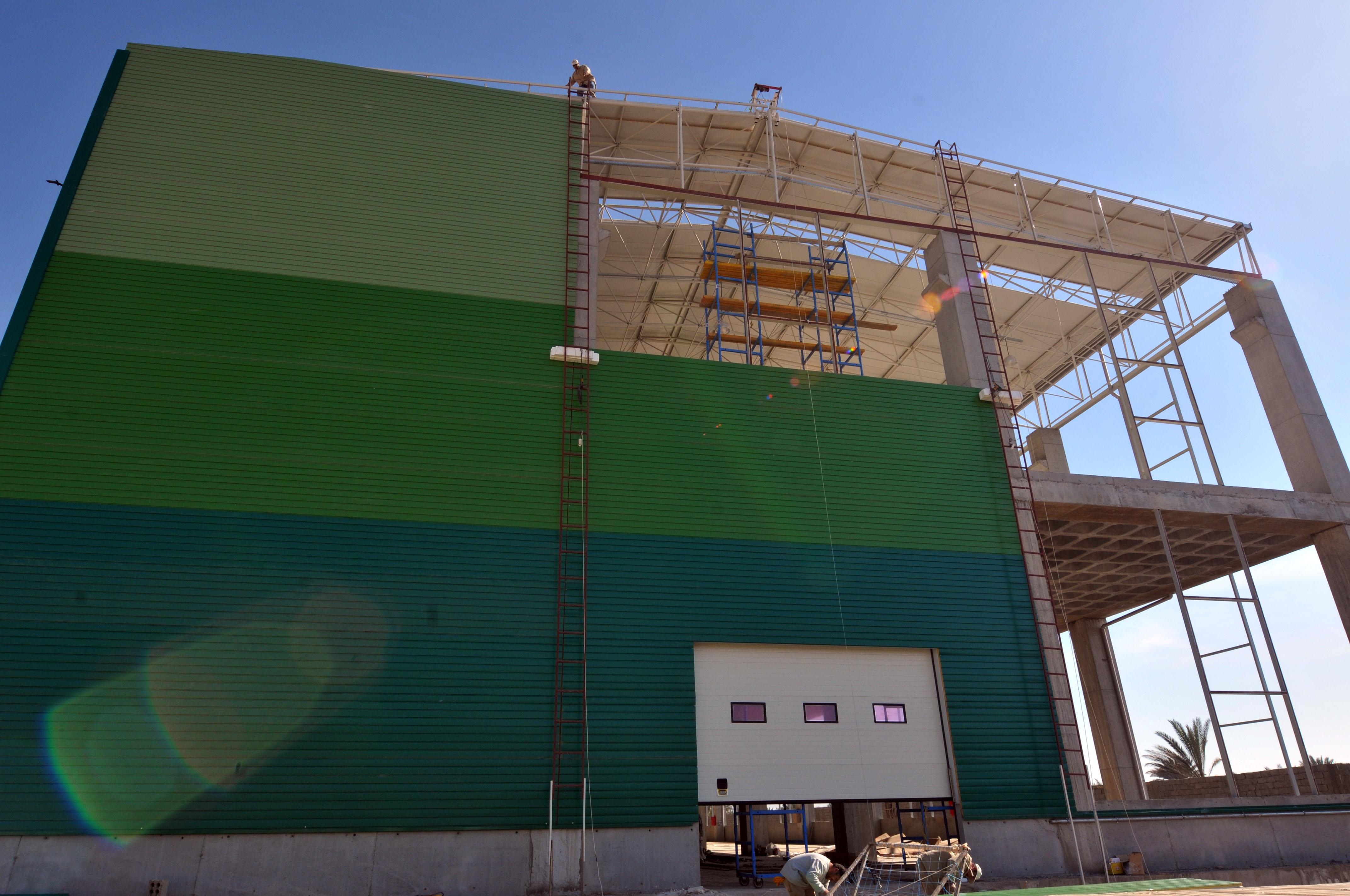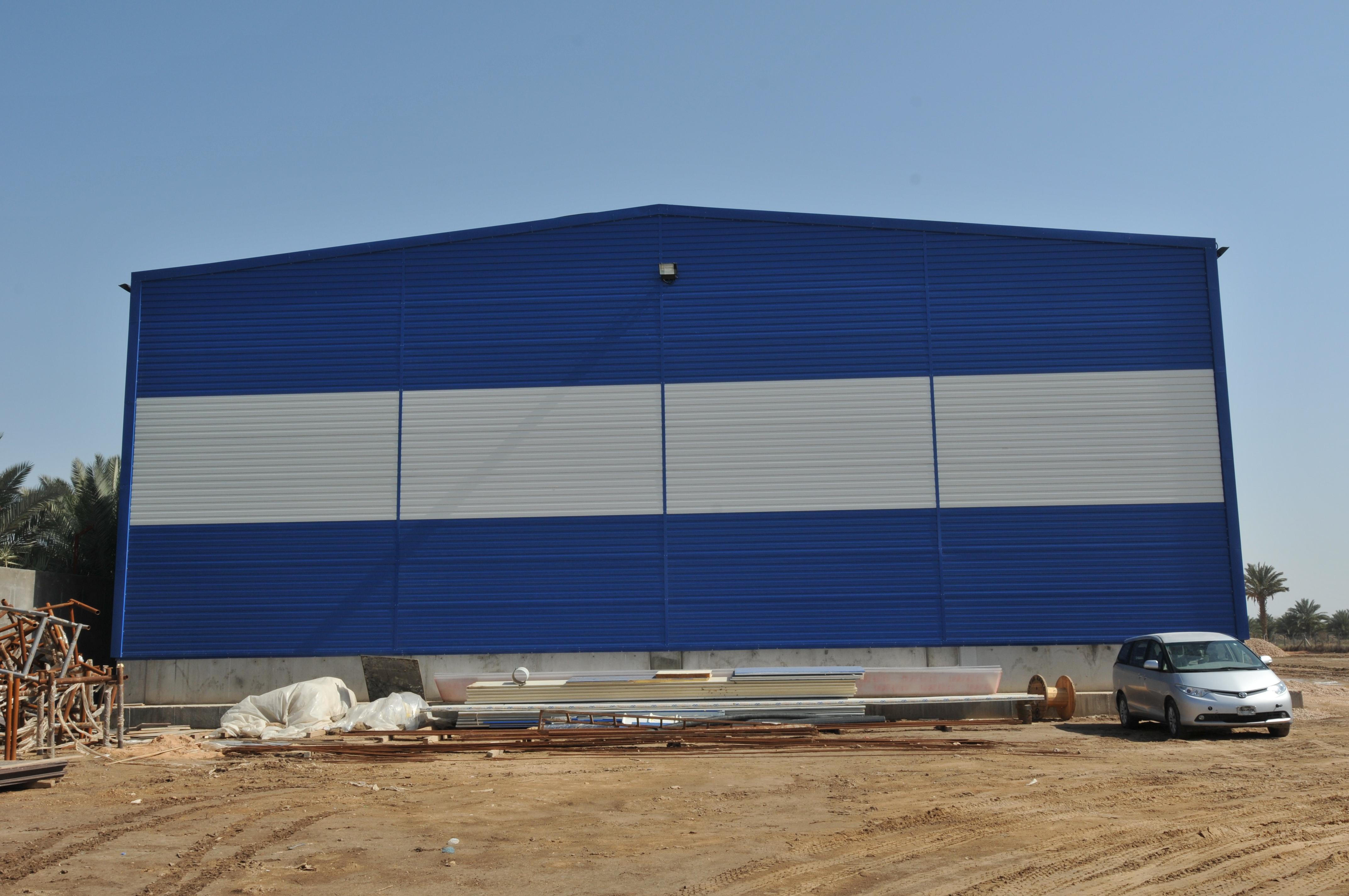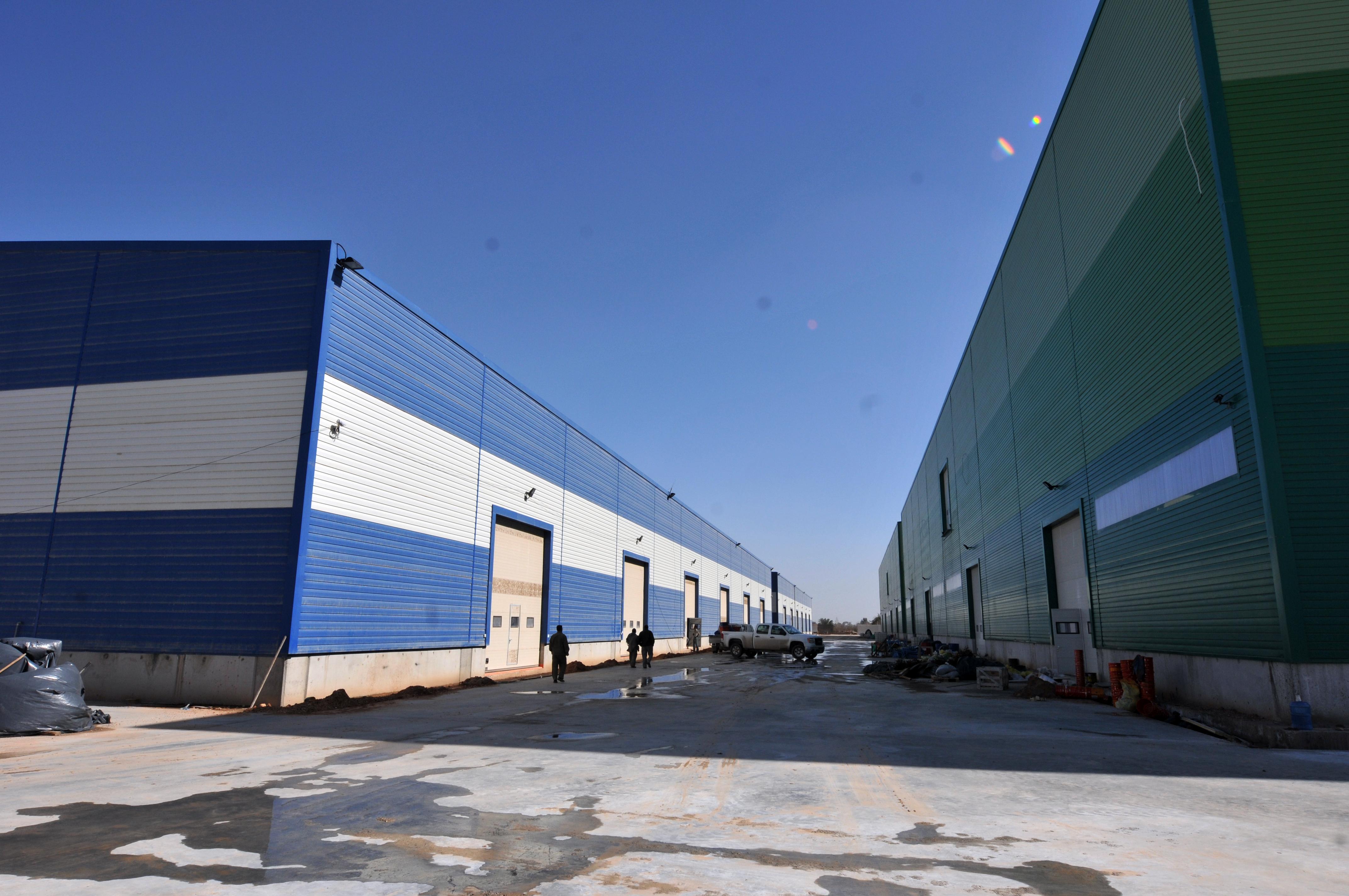 قسم المشروع الى أربع مراحل إنشاء وهي أنشاء السياج ومنظومة الحماية وإنشاء المصانع والورش وإكساء الطرق وإنشاء البنى التحتية للمجمع، وبمدة (10) أشهر. أحيلت مرحلة بناء السياج والحماية الى شركة الكفيل، إذ بلغ طوله (1) كم وبارتفاع (5) م، كما أحيل بناء الورش والمصانع إلى شركة (Detay yapi) التركية حيث تم أنشاء مصنعين بمساحة (12,000) م2 وبطابقين وإرتفاع (15) م وبلغت مساحة كل طابق (3,000) م2، وقد إستخدمت مواصفات عالمية حديثة من حيث الأسس وتحملها للمكائن والآلات الثقيلة حيث بلغت القدرة التحميلة لسقف الطابق الأول (3,5) طن للمتر المربع الواحد. أما المرحلة الأخيرة وهي إكساء الطرق والبنى التحتية فقد أحيلت إلى شركة الكفيل وبمساندة الشركة التركية حيث تم أكساء (1,200) م2 من الكونكريت المسلح العالي الجودة وكذلك عمل أرصفة بطول (1,200) م وكذلك إنشاء شبكتي تصريف مياه الأمطار والصرف الصحي.