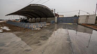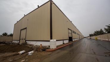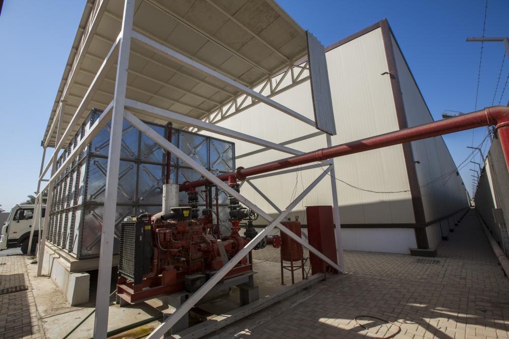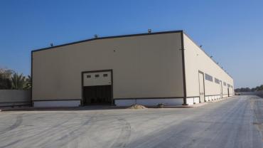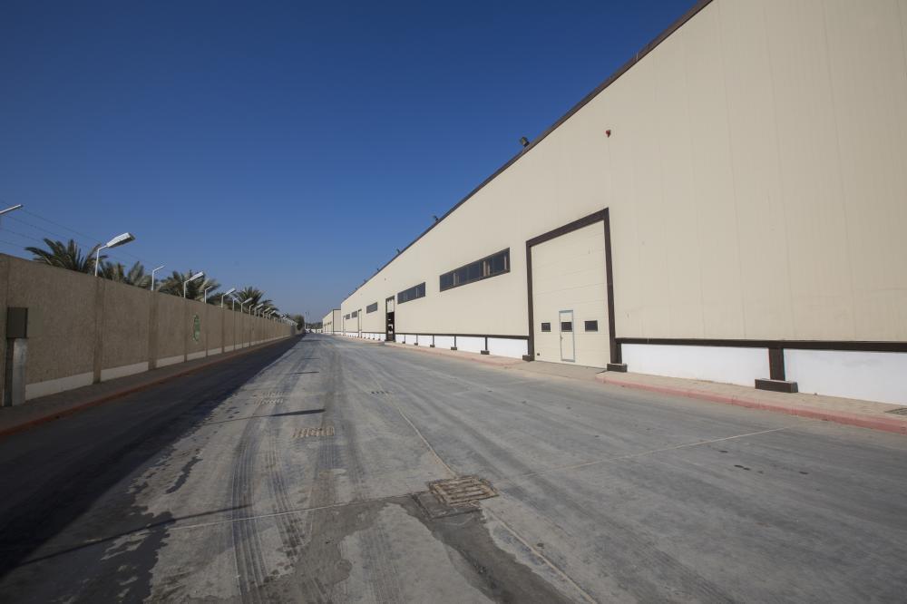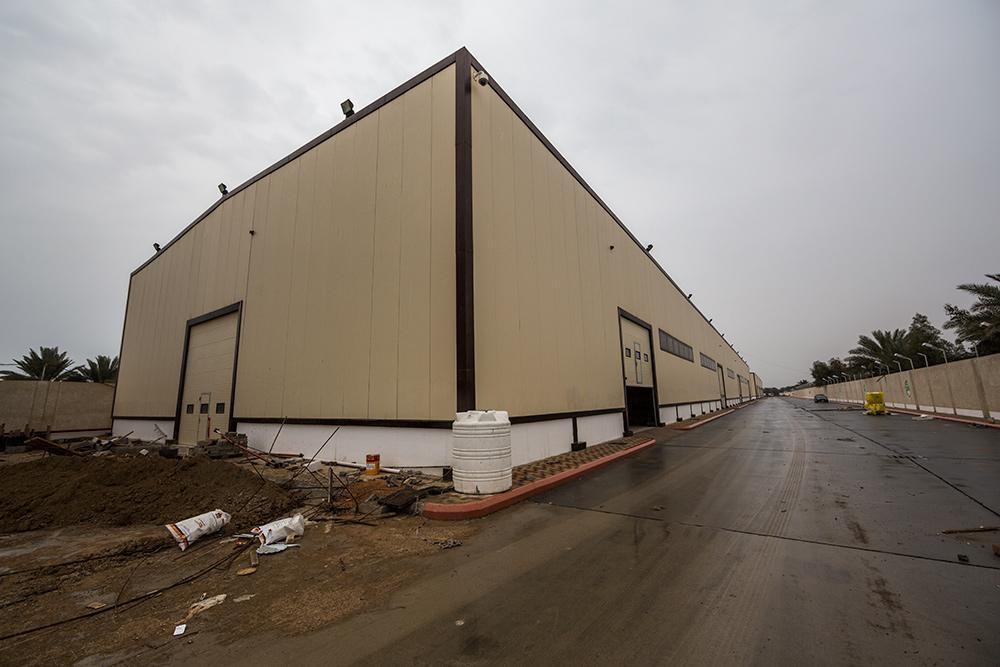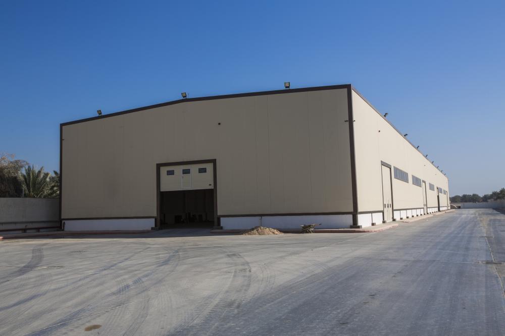 مساحته (10) دوانم أي ما يعادل (25,000) م2 استثمر منها حوالي (7) دونمات أي ما يعادل (17,500) م2، ويضم المشروع: • قاعتي خزن تبلغ مساحة القاعة الواحدة (3,250) م2 وبناية خاصّة بالاستعلامات مع طرقها ومنظوماتها. • شبكة طرق بينيّة رُصفت بطبقة إسمنتية مزوّدة برصيفٍ تغطّي جميع الموقع. • غرفة منظومات ترتبط بها وتُدار من قبلها جميعُ المنظومات الفرعية (الإنذار، الحريق، الإطفاء، الكهرباء، والمراقبة). • شبكة مجاري لمياه الأمطار والصرف الصحّي. • شبكة كهربائية لتغذية المجمّع بالكامل غير ظاهريّة. • شبكة لمياه الإسالة تُغذّى من خزّان ماءٍ سعتُه (174) م3. • مجموعة صحّية متكاملة (حمامات ودورات مياه). • ساحة لغسل السيارات. • شبكة إنارة متكاملة داخلية وخارجية. • مرآب خاص بالعجلات. بالإضافة الى بناية لإدارة المجمّع وأخرى للاستعلامات والحراسة.