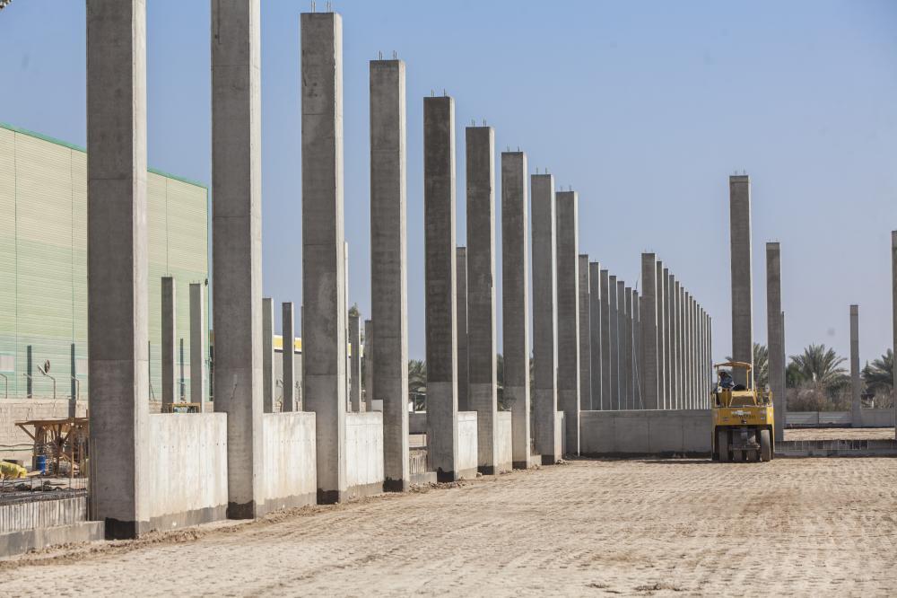 مجمع متكامل يتألف من ورشةٍ صناعيّة بطابقين تبلغ مساحة كلّ طابق (3,000) م2، ويبلغ إرتفاعُ الطابق الواحد (8) م ويفصل بين الطابقين سطحٌ استُخدِمَت فيه تقنيّاتٌ خرسانيّة حديثة جعلته خفيفَ الوزن ليتلاءم مع الأغراض المُعَدّة لها، أما المخازن فيبلغ عددها ثلاثةُ مخازن تبلغ مساحة الواحد منها (2,500) م وبإرتفاع (8) م. غُلفت المنشآت سواءً المخزنيّة أو الورش من الجدران والسقف بنوعيّةٍ خاصّة من مادّة (السندويج بنل) المقاومة للحرائق والظروف الجويّة والتي تمتاز بعزلٍ حراريّ، تفصل بينها نوعيّةٌ أخرى من قطع (السكاي لايت) لتوفير إضاءة إضافيّة، والمشروع صُمّم تصميماً يمكن توظيفه لعدّة استخدامات مستقبليّة وجعله أرضية متكاملة لتنفيذ أي مشروع يتلاءم مع هذه التصاميم التي روعي فيها كافة هذه الأمور.
