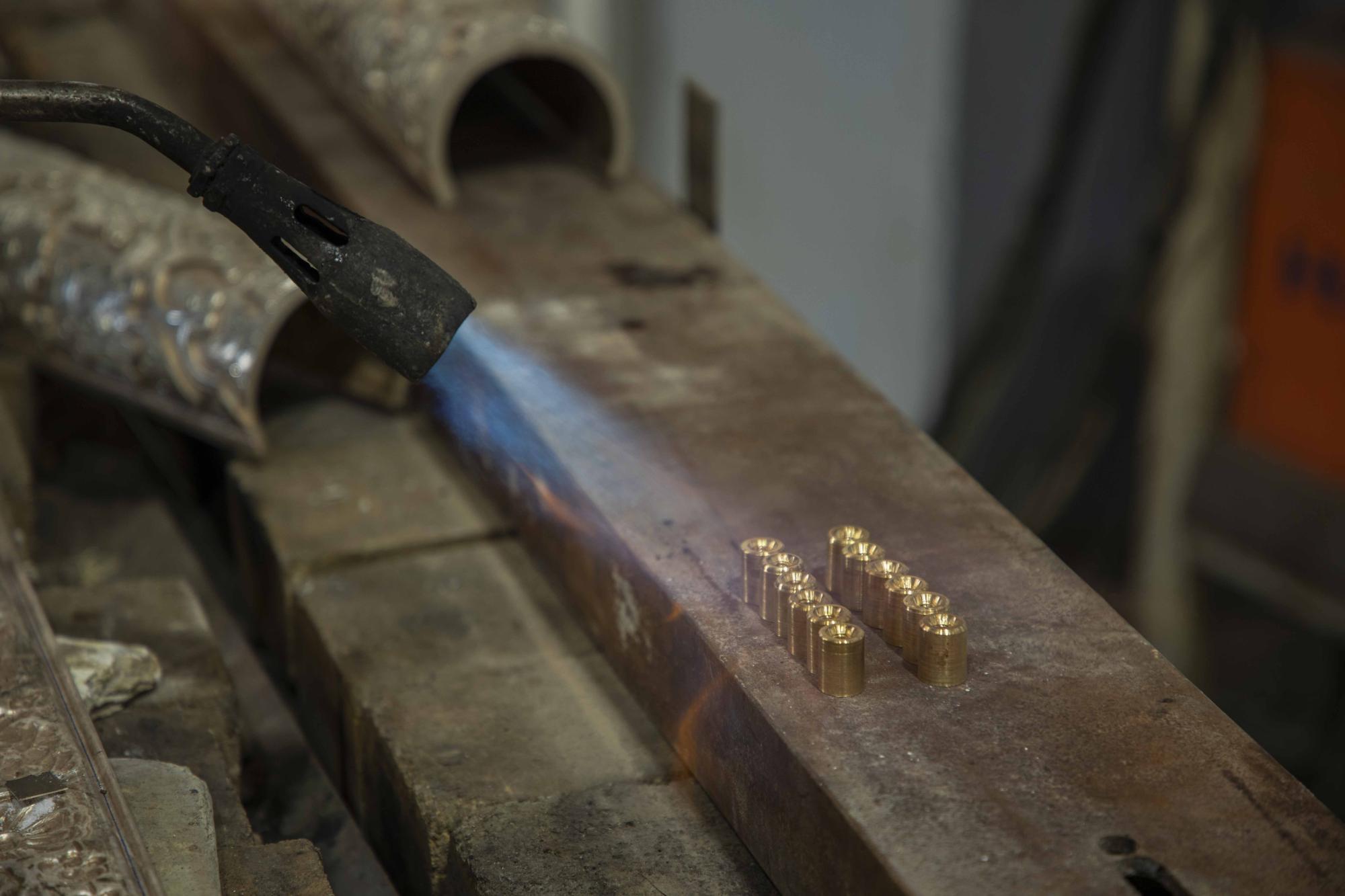 • مِلاكات المصنع عراقية بالكامل. • مجهز بأحدث المكائن والأجهزة والمعدّات والقوالب. • المصنع مُكوّن من عددٍ من المعامل وكلّ معملٍ يتألّف من ورش عملٍ متخصّصة، ويُدار من قِبل خَدَمَة أبي الفضل العبّاس (عليه السلام). • من أهم إنجازات المصنع (شباك مرقد أبي الفضل العباس (عليه السلام)، شبّاك مرقد السيّدة زينب (عليها السلام)، شباك ضريح ومقام صافي صفا، شبّاكي مرقدي الشيخ المفيد والخواجة الطوسي قُدِّس سرُّهما، تصميم وصناعة شبّاك مزار القاسم بن الإمام موسى بن جعفر (عليهما السلام)، شبّاكٍ مقام كفّ أبي الفضل العبّاس (عليه السلام) الأيسر، شبّاك مقام الإمام المهديّ (عجّل الله فرجه الشريف) لقاعة النساء، السقف العلويّ وتاج شبّاك مرقد السيّدة زينب (عليها السلام)، إعادة تذهيب الجزء العلويّ من شبّاك الإمامين الجوادين (عليهما السلام)، صيانة باب حرم السيد محمد (عليه السلام) وغيرها . •من أجل ضمان استدامة هذه الحرفة وتطويرها، يعمل القسم على تدريب الملاكات الشابة وصقل مهاراتهم تحت إشراف الخبراء المختصين، لضمان استمرار هذه الصناعة والحفاظ على الخبرات النادرة من الاندثار.