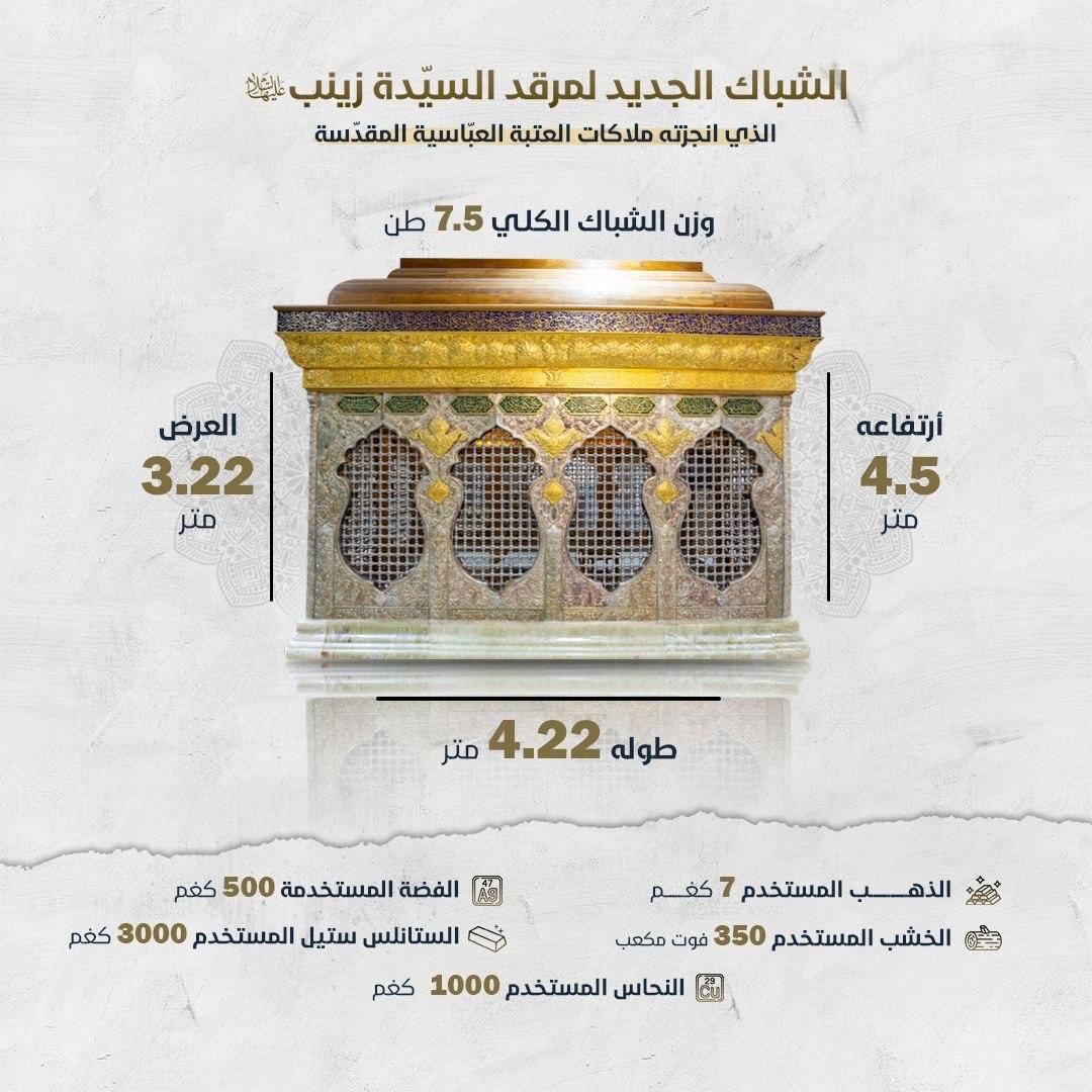 صناعة شباك ضريح لائق لمرقد السيدة زينب (عليها السلام).