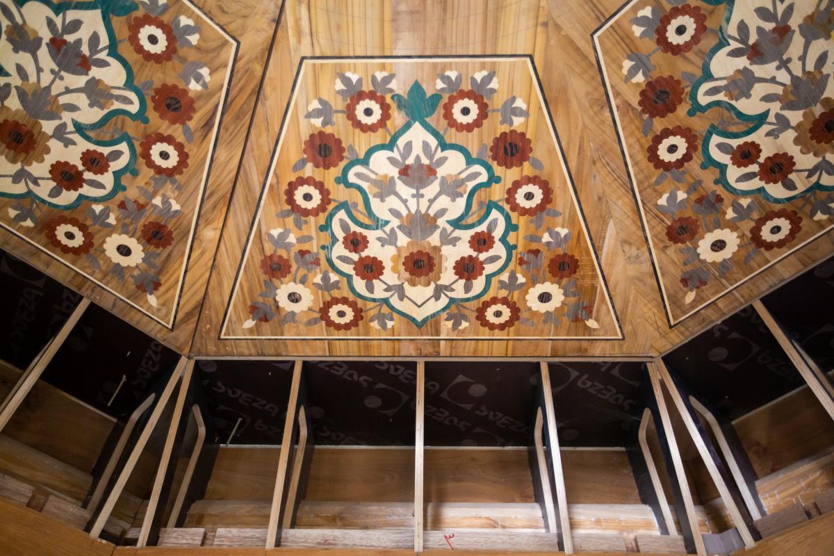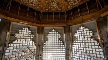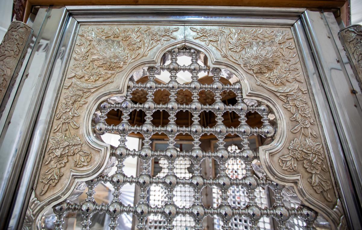 شباك مثقن الشكل ، وهو أوّل شبّاك يتم تصنيعه بهذا التصميم ، طـولـه (3) م وارتفاعـه (2,85) م بضمنه الجزء العلوي له.