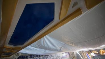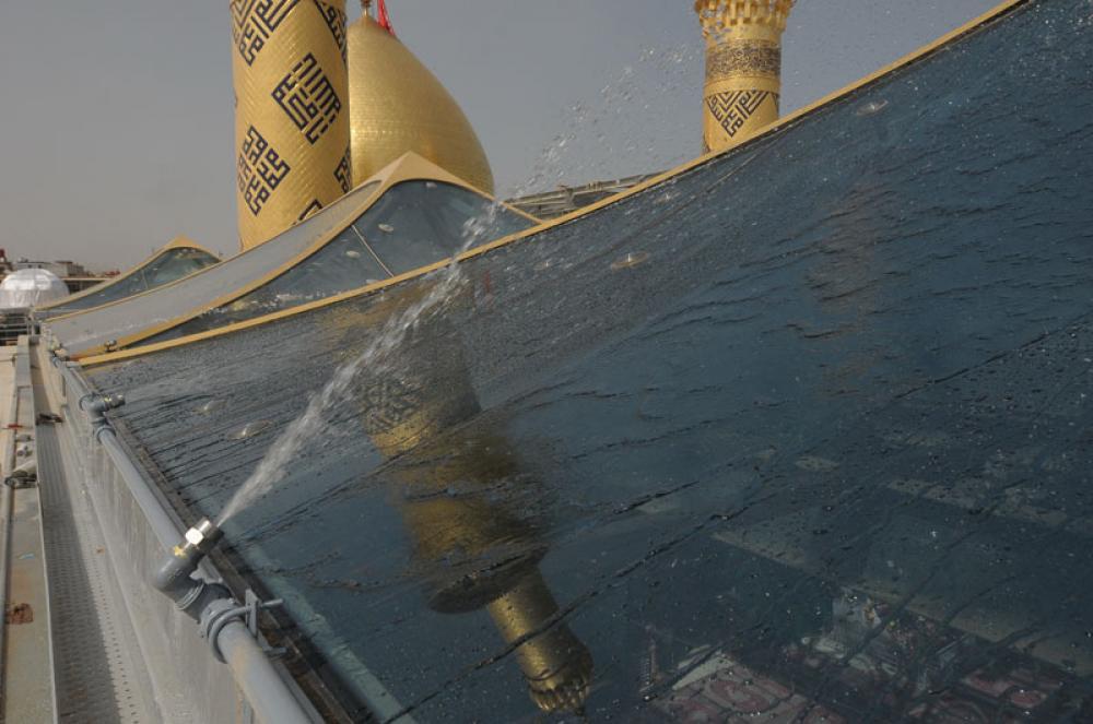 بلغت مساحة التسقيف الإضافي (5,000) م2 وبطاقة إستيعابية (20,000) ، زائر ، وتم معالجة أسس أرضية العتبة بمساعدة الجامعات العراقية بحقن (1,000) طن أسمنت ، تم بناء طابق ثان للعتبة المقدّسة وأخذت بنظر الإعتبار الأحمال والأثقال المتعلقة بمشروع التسقيف ، بناء السقف تــم بعد دراسة ليتحمل أوزان (1,200) طن سلطت على الجدران ، غطى الزجاج (40 %) من السقف الكلي ليساعد على إدخال الهواء وضوء الشمس وإمكانية رؤية المنائر والقبة الشريفة تم تحويل هذا الزجاج الى خيام زجاجيّة مربوطة بمنظومة سيطرة من أجل تحريكها بسهولة ، عدد الخيام الزجاجية (34) خيمة بعدد سنين عمر أبي الفضل العباس (عليه السلام) ، أما عمل القبب بطبقتين قبة خارجية تحمل الكاشي الكربلائي وقبة داخلية تحمل المرايا بوزن لا يتجاوز (8) طن للقبة الكبيرة قطرها (9) م وارتفاعها (5) م ، ووزنها (3,5) طن للقبة الصغيرة ذات القطر البالغ (6) م وإرتفاع (3) م ، وإستخدم الفايبر كلاس في عمل هيكل المقرنصات السقفيّة وتغليفها بالمرايا من أجل تخفيف الأوزان الى الربع وهذه المادة لأول مرة تستخدم في هذه الإستخدامات ؛ كونها مخصصة لصناعة الطائرات والزوارق واختيرت ماليزيا لتصنع الهيكل الحديدي ؛ كون مواصفات الحديد المستخدم فيها ملائم للأجواء الحارة في العراق والمتغيرة ، كما تم صنع لوحات زخرفية رائعة من المرايا والنقوش النباتية والزخارف والمقرنصات العراقية الأصيلة ، إذ بلغ عدد قطع المرايا (500) مليون قطعة بمختلف الأشكال والأحجام زود المشروع بمنظومة تبريد وتدفئة تجهز (5,000) طن تبريد الى الصحن والأواوين ومشروع التوسعة ، وأيضاً زود بمنظومة الطاقة الكهربائية حيث نصب ثلاث محطات كهربائية (p3, p2, p1).