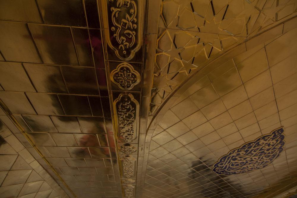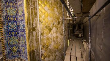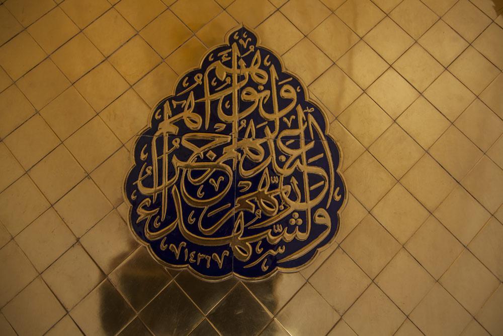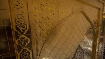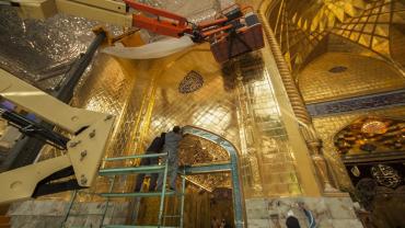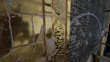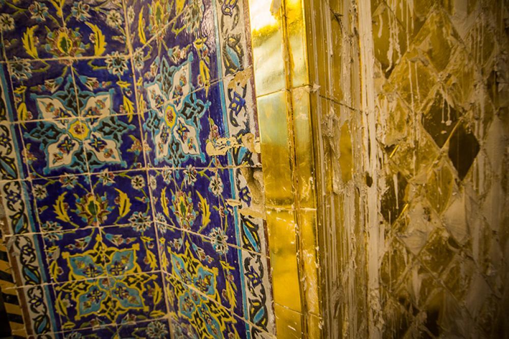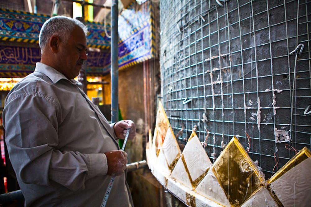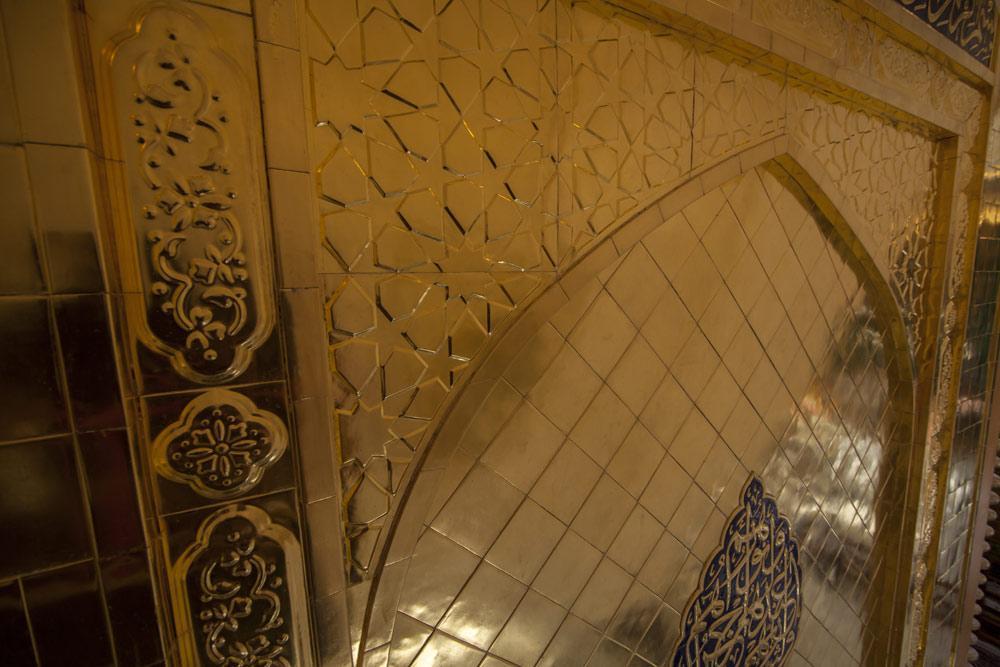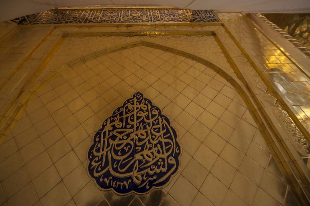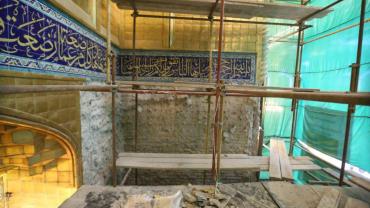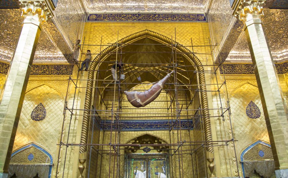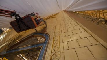 يقع المشروع على مساحة تقدر بـ (350) م2 ، تم إكساء هذا الجدار بالبلاطات (الطابوقات) الذهبية الجديدة بعد تركيب طبقات الهارب وطلسها بمادة الإسمنت بمساحة تقدر بــ(350) م2 وإستخدم في عمليات التذهيب الذهب عيار (24) بقياساتٍ مختلفة وبوزن (10 غرامات) من الذهب الخالص لكل بلاطة ذهبية ، والتي يبلغ سمك الواحدة منها (2 ملم) باستخدام أفضل التقنيات من ناحية العمر الإفتراضي وهي تقنية الطرق على جلد الغزال ، وإن البلاطات المُصنّعة تخضع لفحوصات جهاز التقييس والسيطرة النوعية في وزارة التخطيط العراقية ، وإنّ عملية ربط هذه البلاطات الذهبية كانت باستخدام طريقة الوصلة بواسطة المسامير اللولبية (البراغي) ، وهي من الطرق التي لا تؤثر عليها ولا على مظهرها الخارجي ، عكس الطريقة القديمة وهي طريقة الكبس (البراجم) ، والتي لها عيوب تظهر مستقبلاً على لون وشكل البلاطة الذهبية ، إنّ الكتيبة القرآنية التي تعلو جدار الطارمة تميّزت كذلك بميزات تختلف جذرياً عن الكتيبة القديمة ، حيث إستُخدمت فيها الخطوط والزخارف والآيات القرآنية المنقوشة على الذهب المطعم بالمينا الحارة ، والتي تعتبر من أجود أنواع المينا التي تتفاعل مع النحاس ، حيث تمتاز بمقاومتها وبريق لونها.