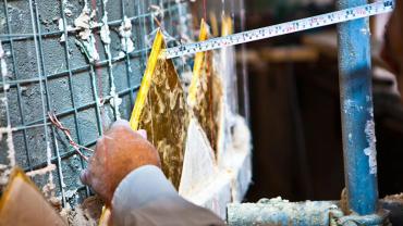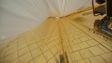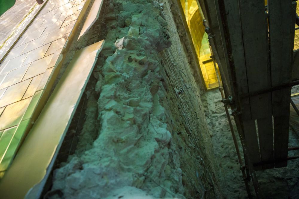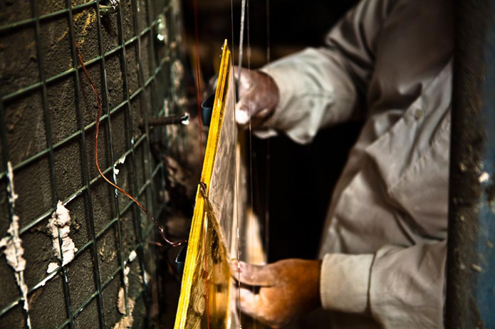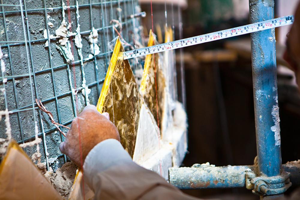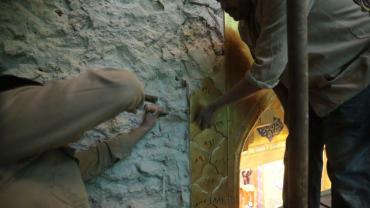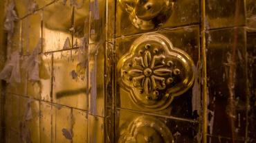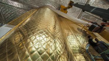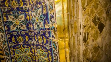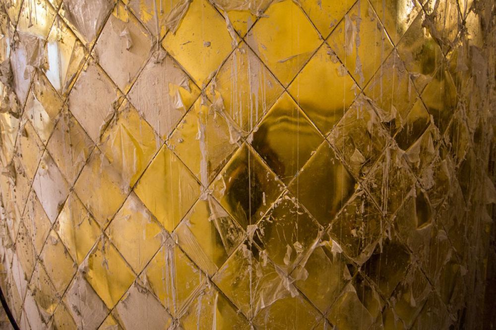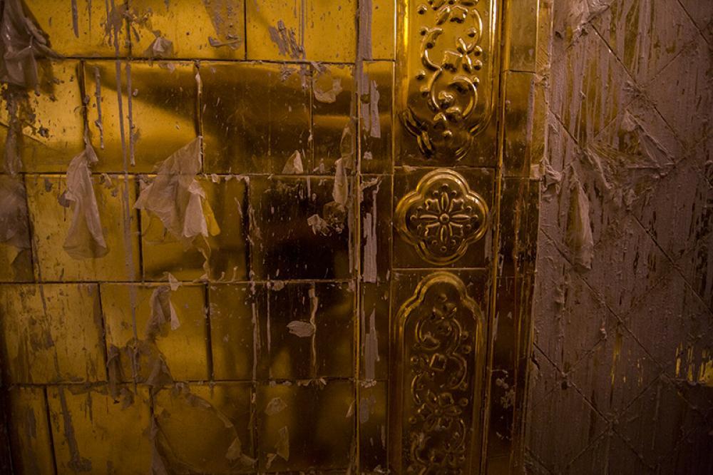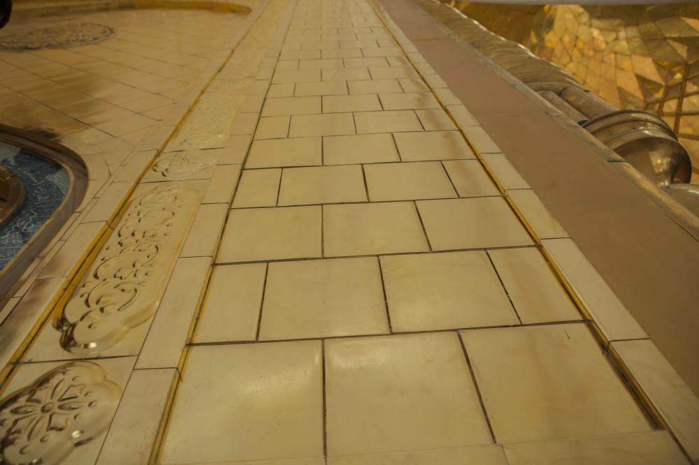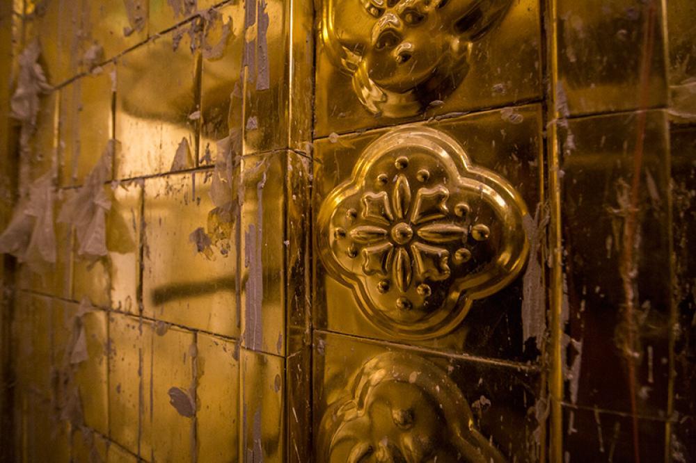 يقع المشروع على مساحة تقدر بـ (350) م2 ، تم إكساء هذا الجدار بالبلاطات (الطابوقات) الذهبية الجديدة بعد تركيب طبقات الهارب وطلسها بمادة الإسمنت بمساحة تقدر بــ(350) م2 وإستخدم في عمليات التذهيب الذهب عيار (24) بقياساتٍ مختلفة وبوزن (10 غرامات) من الذهب الخالص لكل بلاطة ذهبية ، والتي يبلغ سمك الواحدة منها (2 ملم) باستخدام أفضل التقنيات من ناحية العمر الإفتراضي وهي تقنية الطرق على جلد الغزال ، وإن البلاطات المُصنّعة تخضع لفحوصات جهاز التقييس والسيطرة النوعية في وزارة التخطيط العراقية ، وإنّ عملية ربط هذه البلاطات الذهبية كانت باستخدام طريقة الوصلة بواسطة المسامير اللولبية (البراغي) ، وهي من الطرق التي لا تؤثر عليها ولا على مظهرها الخارجي ، عكس الطريقة القديمة وهي طريقة الكبس (البراجم) ، والتي لها عيوب تظهر مستقبلاً على لون وشكل البلاطة الذهبية ، إنّ الكتيبة القرآنية التي تعلو جدار الطارمة تميّزت كذلك بميزات تختلف جذرياً عن الكتيبة القديمة ، حيث إستُخدمت فيها الخطوط والزخارف والآيات القرآنية المنقوشة على الذهب المطعم بالمينا الحارة ، والتي تعتبر من أجود أنواع المينا التي تتفاعل مع النحاس ، حيث تمتاز بمقاومتها وبريق لونها.