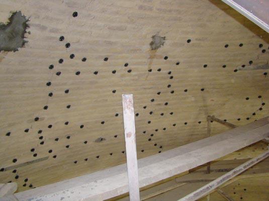 لأول مرة تم استخدام ألياف الكاربون في أعمال الصيانة ، وهي طريقة حديثة, والمواد مصنّعة من قبل شركة (سيكا) السويسرية ، حيث تصنع المادة خصيصاً من قبل هذه الشركة ووفق طلبات خاصة ، تضمن العمل جلي الجدران الداخلية بواسطة جلايات كهربائية وإزالة كل النتوءات والبروزات والشوائب ولمسافة (10) أمتار من التشققات ، ثم تم حقن هذه الشقوق بمادة (إيبوكسي) الرابطة الخاصة بهذا الغرض وبواسطة آليات وضاغطات خاصة تم ملأ هذه الشقوق وربطها بشكل محكم ، بعد ذلك تم طلي سطح الجدران بمادة رابطة خاصة تعمل كأساس لألياف الكاربون ، ثم تم تسليح القبة المقدسة بأشرطة بسمك (5) سم من ألياف الكاربون لتكون كشبكة تسليح ، و وضعت بشكل عمودي على جدرانها ولمسافة تتكرر كل متر تقريباً ، ولصقت هذه القضبان بعد ذلك بمادة خاصة بعد ذلك غلفت القبة من الداخل - فوق القضبان - بشبكة من ألياف الكاربون بطبقتين متعاكستين لكل جدار القبة الشريفة لتعمل مع القضبان كقشرة داخلية قوية ساندة للقبة الخارجية ، علماً أن هذه الألياف تمتلك من قوة التحمل ما يفوق حديد التسليح.