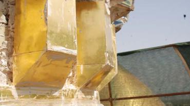تم إبدال الطابوق العادي ببلاطات النحاس المغلف برقائق الذهب ، وإستبدال الطابوقات المغلفة بالمادة الزجاجية الملونة التي تشكل كتابات على شكل نقوش إسلامية ببلاطات نحاسية مغلفة بالمينا حيث تتخلل الواجهات الذهبية الأخرى ، ليبقى الإختلاف الفني قائماً بين منارتي الإمام الحسين (عليه السلام) وحامل لوائه أبي الفضل العباس (عليه السلام) أن الأعمال الفنية من تصنيع الطابوق النحاسي الجديد ، وصهر الذهب وتقطيعه إلى قطع صغيرة لكل بلاطة والتركيب على واجهة المنارتين يتم من قبل الكوادر العراقية لشركة أرض القدس في كربلاء المقدسة ، وبإشراف الكوادر الهندسية والفنية العراقية لقسم المشاريع الهندسية في العتبة العباسية المقدسة إلا أن عمليتي الطرق واللصق فقط لشرائح الذهب على البلاط النحاسي تتم من قبل كادر هندي متخصص في هذا الضرب من الفن والذي يندر أن يتقنه غيرهم ولأجل ذلك تمت الإستعانة بهم ، حيث يتم العمل داخل ورشة الطرق واللصق في العتبة بإشراف كوادرها العراقية في قسم المشاريع الهندسية وقسم الهدايا والنذور والموقوفات ، إن الذهب اللازم للمشروع قد تم شراءه من البنك المركزي العراقي من قبل ديوان الوقف الشيعي وتم تخصيصه للعتبة العباسية المقدسة وهو بوزن (108) كغم من عيار (24).