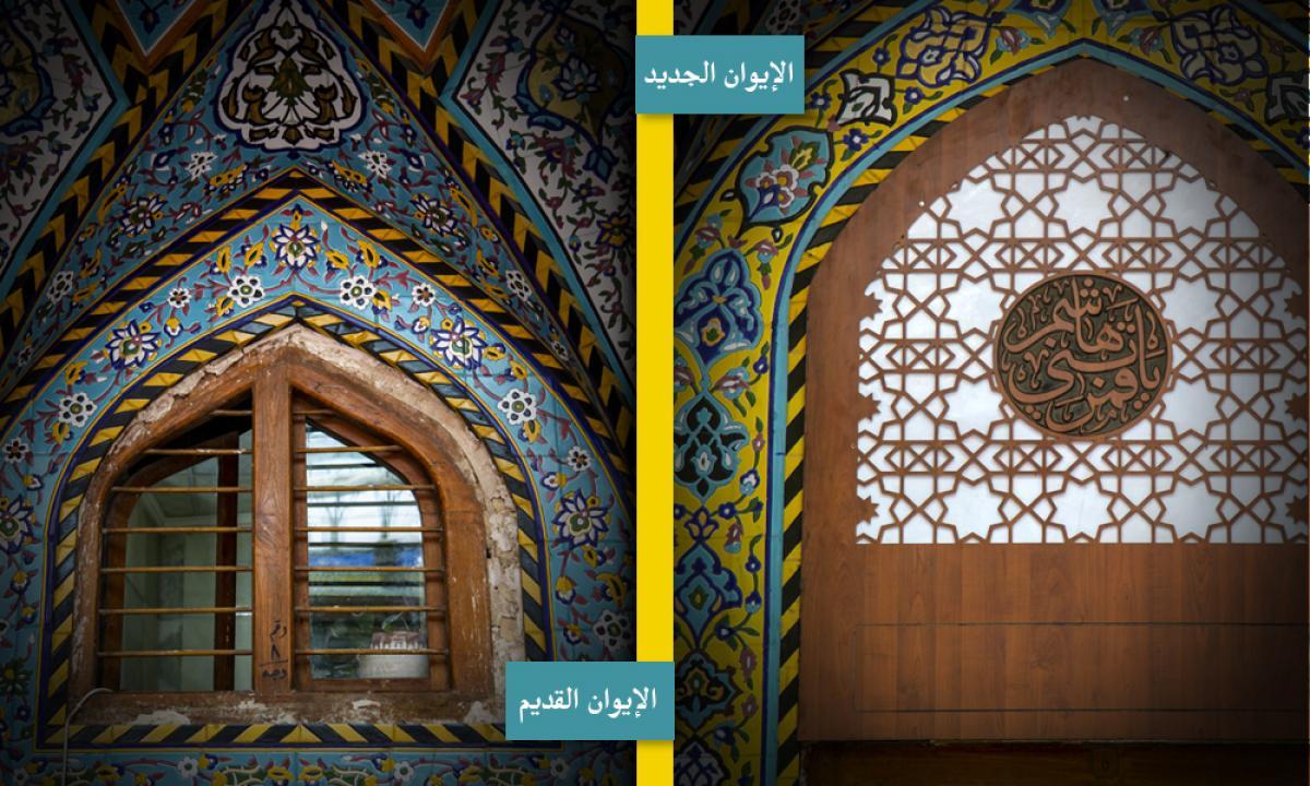 إضفاء جمالية وخلق حالةٍ من التناظر الفنّي بين الأواوين وبين باقي أجزاء الصحن المطهر لمرقد أبي الفضل العبّاس (عليه السلام) ، وإظهاره بأبهى صورة وبما يسرّ عيون الناظرين القاصدين والزائرين ، وذلك بتركيب مثلّثات زخرفيّة على شبابيك الأواويين لتحل محل الشبابيك القديمة.