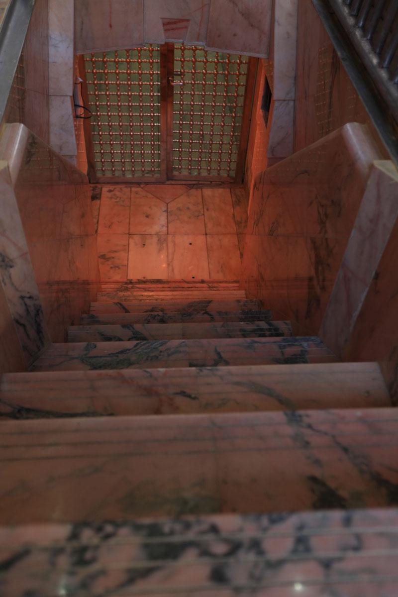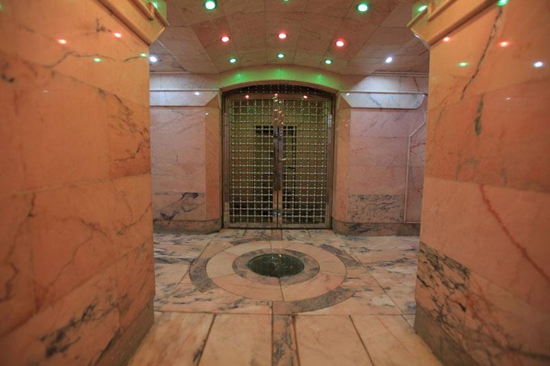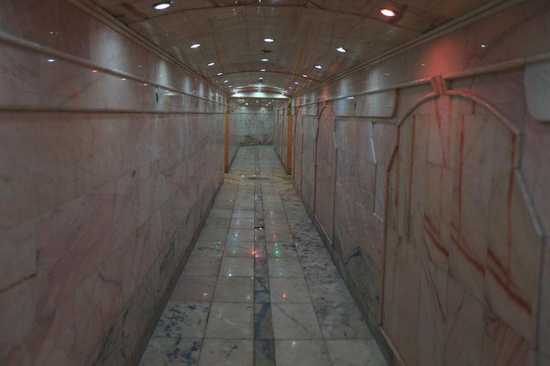 عمل ساقية لتجميع ماء السرداب أي أنبوب نصف قطره (0,5) م ، تحيطه طبقة حصى خشن ، وممتد تحت أرضية السرداب ووسطه ليكون مجمعاً للمياه ، أنشئت شبكة أنابيب بقطر (10) سم لتفريغ مياه الأواوين المتجمعة في الأنبوب الوسطي ، عملت فتحة تهوية لكل أيوان ، لمنع تراكم بخار الماء المتجمع من الماء الموجود في الإيوان ، أما أنبوب تصريف الأرضية فقد بنيت (5) مجمعات مياه بأبعاد (50 × 50) سم ، وبعمق (70) سم واحد في بداية السرداب ، والباقيات وزعت وسط كل ممر من ممرات الأروقة ، وضعت غطاسات دائمة لسحب الماء تلقائياً عند الضرورة الى خارج السرداب ، وصبت جدران وأرضية السرداب بالكونكريت المسلح المعالج بمادة (SBR) وتغليفه بالمرمر ، وأزيلت الجدران الأقرب للقبر الشريف القديمة كون بقائها يسبب مضرة لحجزها بخار الماء بعمق (24-48) سم ، واستبدالها بجدار نفس السمك من الطابوق المثقوب المعالج كيميائياً بمادة (SBR) لتزيد قوة التصلب وتمنع الرطوبة ، بعدها طلي جدار الطابوق بطبقة من الزفت واللباد كعازل للرطوبة ، ووزعت أعمدة كونريتية مسلحة في جدار الطابوق لمسافة (2) م ، أما الجدران الخارجية لممر الأروقة السفلي (غير الملاصقة للقبر الشريف) فقد تبيّن بالفحص أنها جدران قوية ولم تظهر الحاجة لإزالتها ، ولكن تم عمل أعمدة كونكريتية لكل (4) م فيها ، لزيادة تقويتها وربطها مع جدار الخرسانة ، إضافة الى عمل شقوق تهوية من خلال حفره بعمق (10) سم وعرض (10) سم ، أما معالجة السقف تمت من خلال عمل سقف كونكريتي مسلح تحت السقف القديم بسمك (10) سم ، وتم صبه من خلال الحقن وغلف بالمرمر ، ومظهر السرداب النهائي كممر مغلف بالمرمر الأبيض نوع أونكس برتغالي المنشأ ، أي للجدران والأرضية والسقف ، واحتوى على النقوش والآيات القرآنية الكريمة فيها ، وعمل تأسيس كهربائي جديد للسرداب بخطين (220) فولت و (12) فولت ومنظومة كاميرات متطورة.