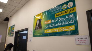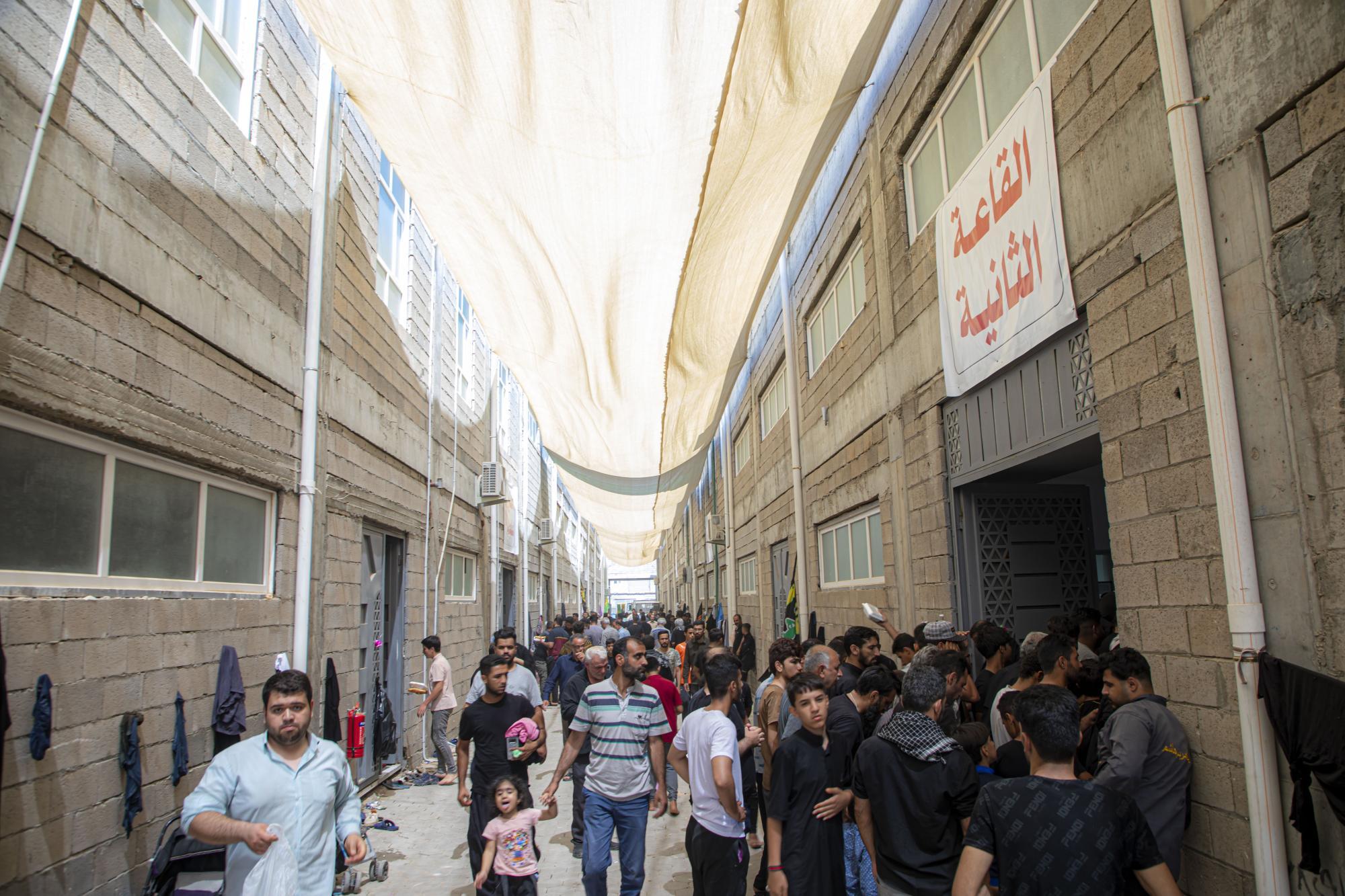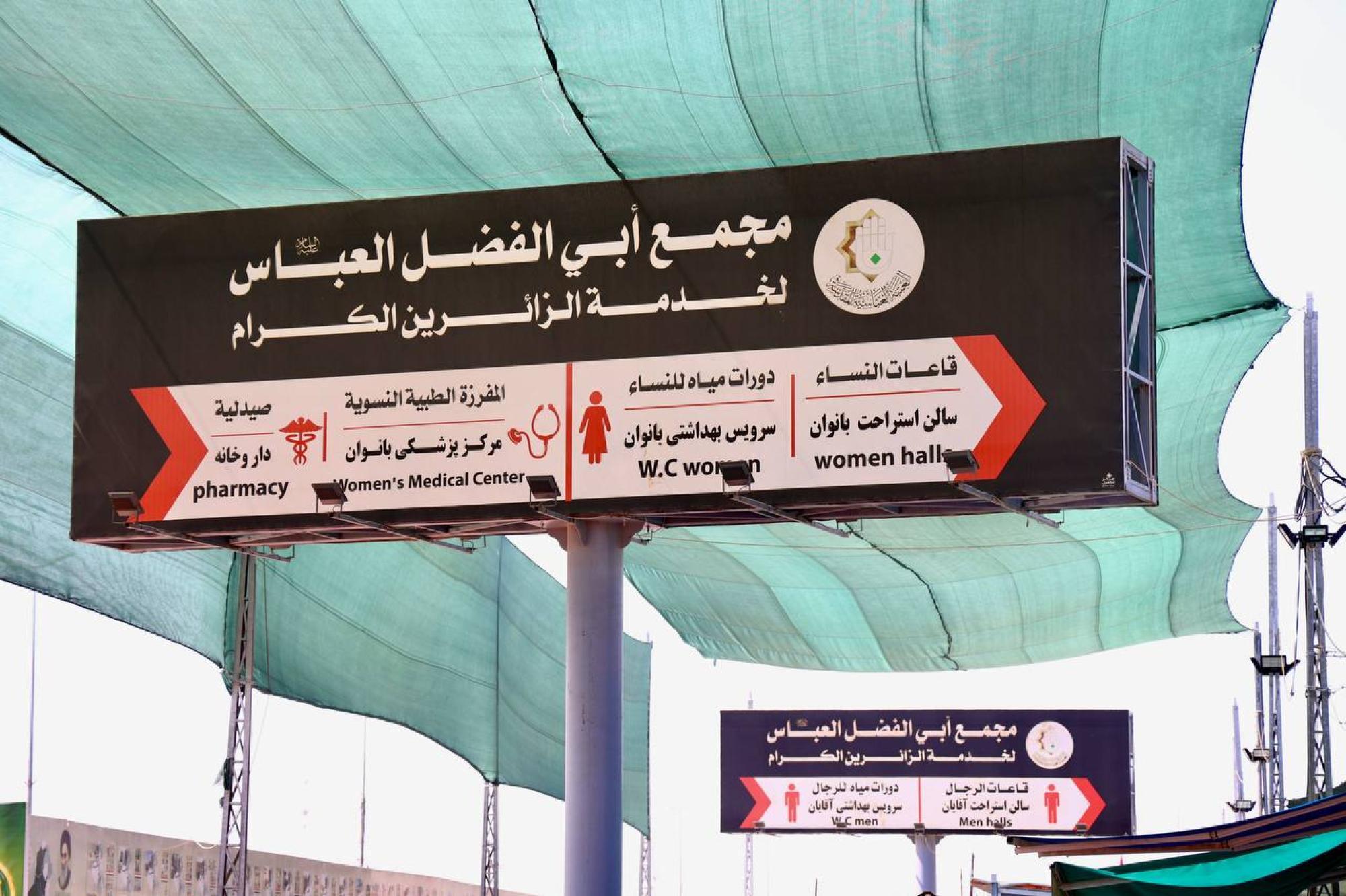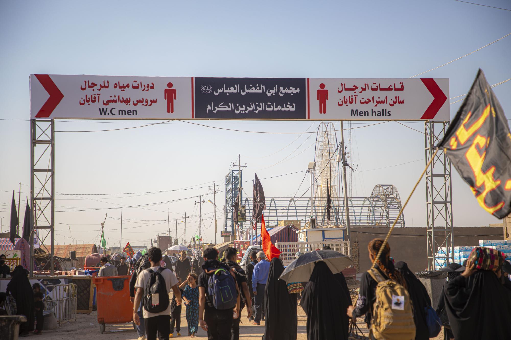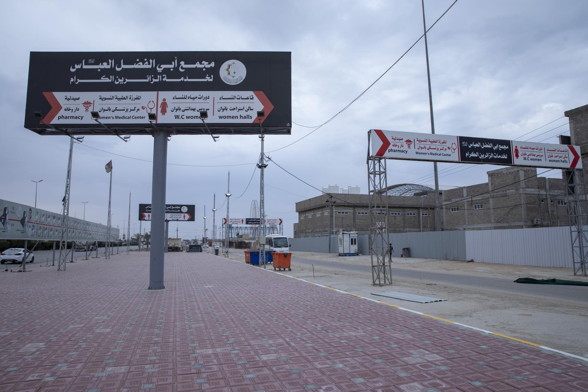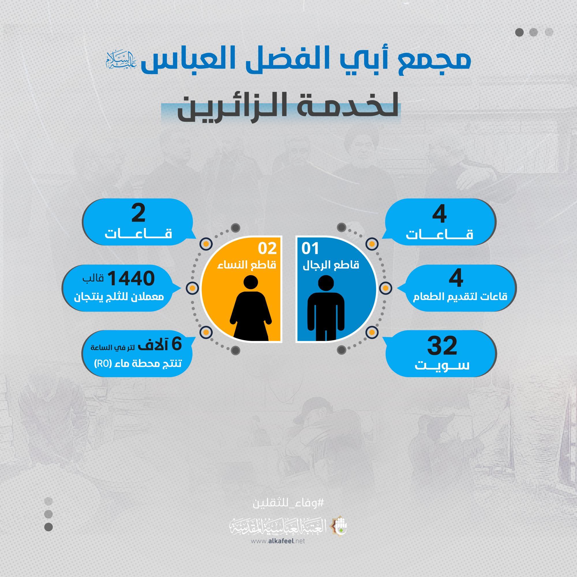 يقع المشروع على مساحة (6) دوانم ، ما يعادل (15,000) م2 ، ويتكون المشروع ابتداءً من المدخل من مجموعتين للمنشآت الصحية تحتوي الواحدة منها على (40) وحدة صحية وبطابقين ، ومغاسل للوضوء ، يحتوي على مفرزتين طبيتين للرجال والنساء في الطابق الأرضي ، وغرف للأطباء في الطابق الأعلى ، وغرفتين للعلاج الطبيعي للرجال والنساء أيضاً لمعالجة حالات الإعياء التي تصيب الزائرين جراء المشي. يحتوي كذلك على قاعتين لتناول الطعام بأبعاد (60 × 10) م ، واحدة للرجال وأخرى للنساء ، وقاعتين كبيرتين لمبيت الزائرين واحدة للرجال وأخرى للنساء ، وغرف لتقديم الطعام ومخزن للمواد الغذائية ومطبخ كبير في الجهة اليمنى من الأرض ، أما الجهة اليسرى فتحتوي على مخزن للمواد الغذائية ، وغرفة للكهرباء ، وغرفة للمولدة الكهربائية لأغراض الطوارئ ، وغرف الإستراحة المنتسبين ، بالإضافة لإحتوائه على حدائق ونافورات داخلية وخارجية ، وسارية تحمل إسم أبي الفضل العباس (عليه السلام) وبارتفاع (45) م.