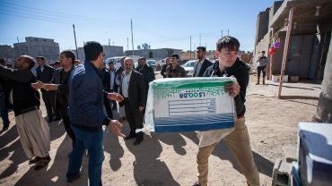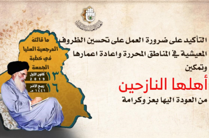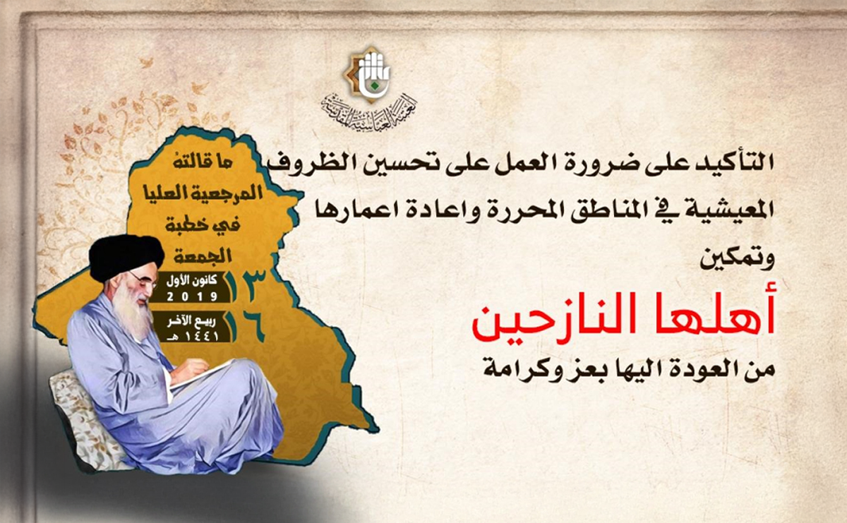 أبان حقبة التهجير القسري بعد منتصف سنة (2014) م ، نتيجة إحتلال عصابات داعش الإرهابية بعض المدن والمحافظات العراقية ، والعمل على تهيئة مستلزماتهم المكانية والمعيشية وضمن إمكانياتها المتاحة التي سخّرتها لهذا الغرض منذ الأيام الأولى للأزمة التي شهدت فيها حركة النزوح بشكل كبير.