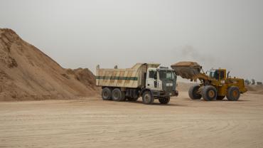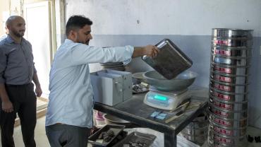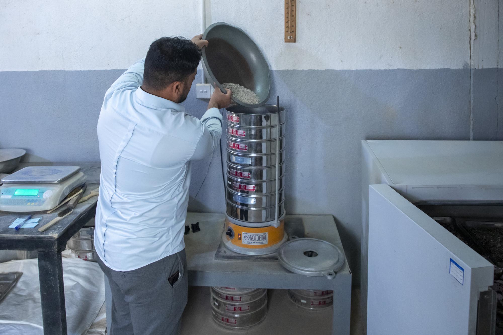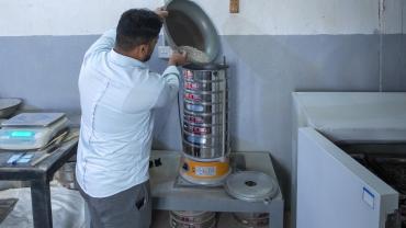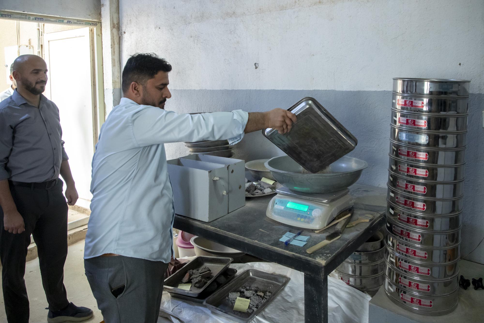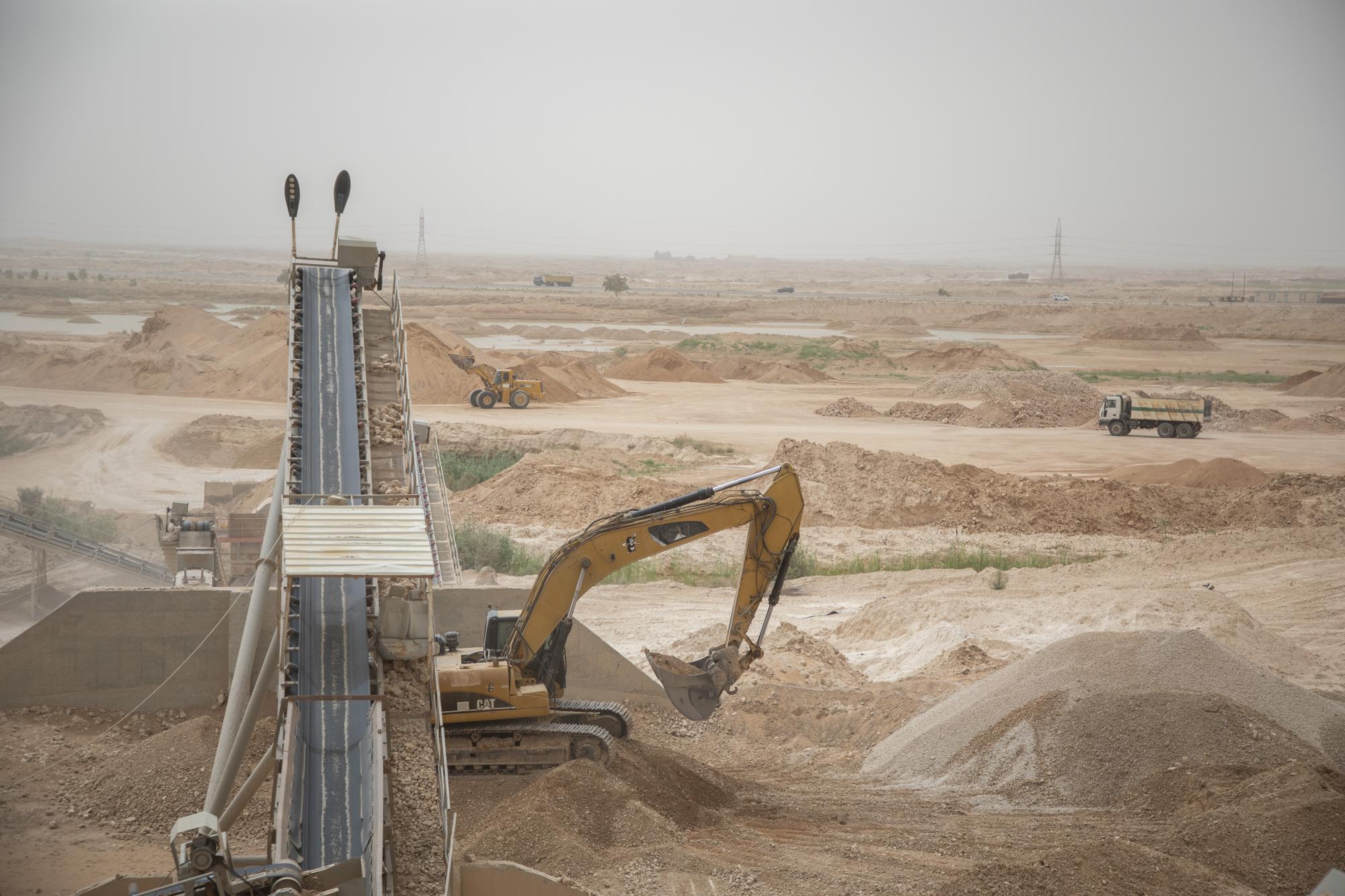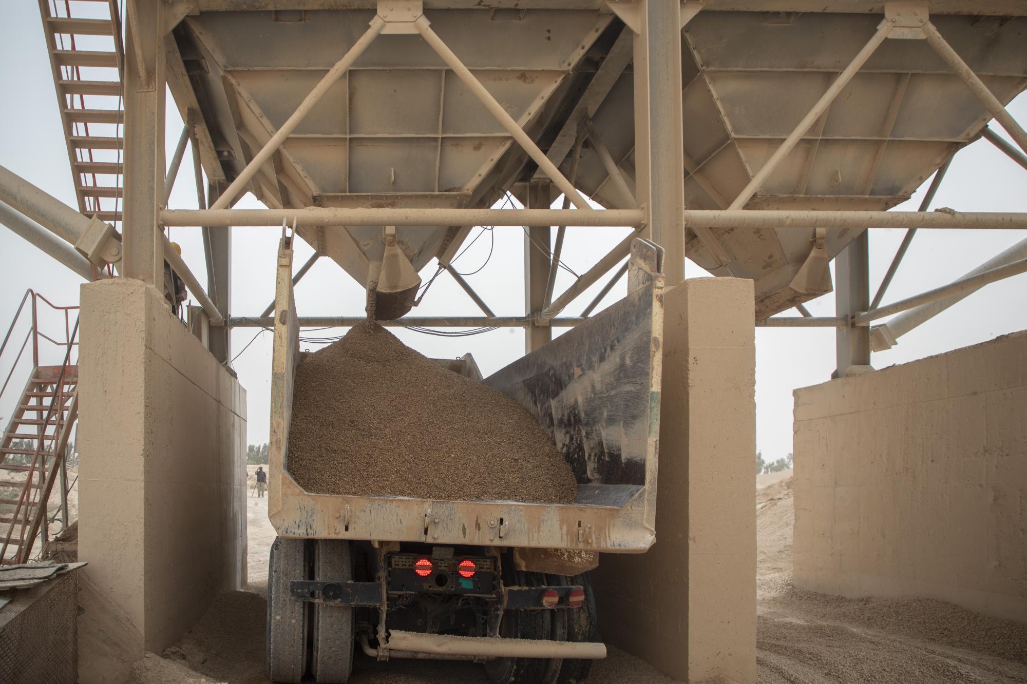 المعمل يتألّف من أربعة خطوطٍ، خطّ لإنتاج الحصى المكسّر يُنتج نوعَيْن منه بقياساتٍ مختلفة، وخطّ لإنتاج الرمل المغسول بأنواعه المختلفة، وخطّين لإنتاج مادّة (السبّيس) بأنواعها وإنتاج الرمل المغربل، وهو يُسهم في رفد السوق بمادّةٍ مضمونة تساعد على سدّ النقص الحاصل من هذه النوعيّات الجيّدة، علماً أنّ جميع منتجات المعمل تخضع للفحص سواءً كان من خلال المختبر التابع لقسم المشاريع الهندسيّة أو المختبرات الأُخَر، وقد أتت نتائجُ الفحص إيجابيّةً وموافقةً لمواصفات جهاز التقييس والسيطرة النوعيّة إضافةً إلى نجاحها في المختبرات، وهذا يُعدّ سبباً مهمّاً لجعلها مطلباً لشركات الخرسانة وشركات القطّاعَيْن العام والخاص ،وقد إستطاع المعمل كذلك أن يُسهم في : • تشغيل اليد العاملة. • توفير مادّة ذي جودة عالية. • إستثمار الثروات الطبيعيّة وتوظيفها في الاتّجاه الصحيح.