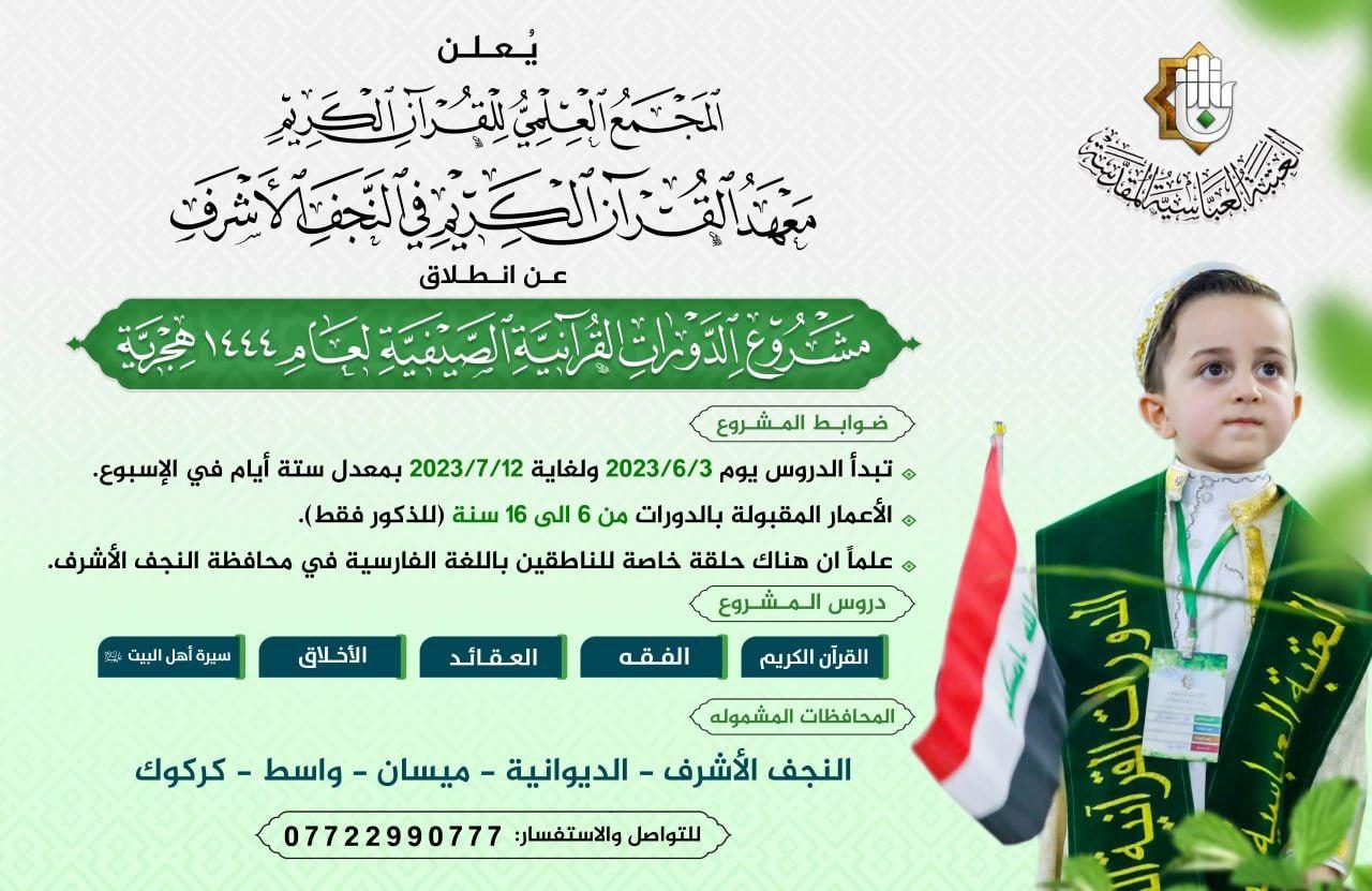 مشروع الدورات القرآنيّة الصيفيّة نشاط سنويّ ينظّمه المجمَع العلميّ للقرآن الكريم في العتبة العبّاسية المقدّسة بعددٍ من المحافظات العراقيّة، ويشمل برامج قرآنيّة تعليميّة متنوّعة، بالإضافة إلى تنظيم المسابقات القرآنيّة والتحفيزية.