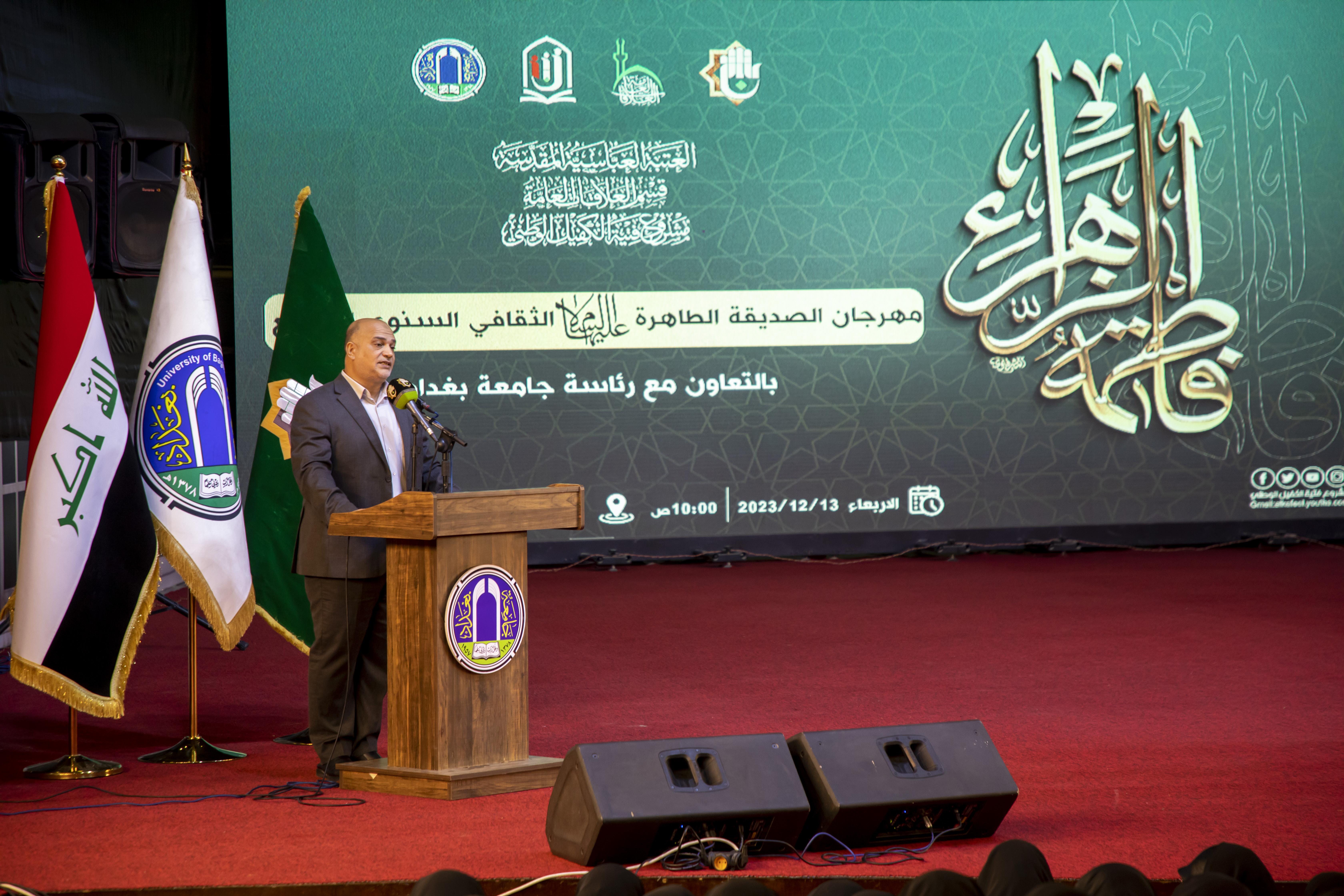 مهرجان الصديقة الطاهرة (عليها السلام): مهرجان ثقافي يقام بذكرى شهادة السيدة الصديقة فاطمة الزهراء (عليها السلام) في الجامعات العراقية، ينظمه قسم العلاقات العامة في العتبة العباسية المقدسة ويتضمن ندوات بحثية عن السيدة الزهراء (عليها السلام)، ومعرض للكتاب، وفقرات شعرية وموشحات دينية، وفعاليات تقام سنويًا لتشجيع الطالبات على ارتداء العباءة الإسلامية، ويسعى لإبراز ثقافة أهل البيت (عليهم السلام) في الجامعات العراقية.