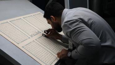مركز طباعة المصحف الشريف: هو أحد تشكيلات المجمع العلمي للقرآن الكريم في العتبة العباسية المقدسة، متخصص بعملية خط المصحف الشريف خلال الزيارات المليونية، عبر مشروعه "مصحف ثمرة الأربعين بأنامل الزائرين"، ويخصص جزء من المصحف للأطفال لتعزيز تجربتهم الروحية، وعند اكتمال كتابة المصحف، يتم جمعه وتوثيقه كنسخة متحفية، ليكون رمزًا حيًّا لارتباط الزائرين بكلمات الله وتعميق تجربتهم الروحية خلال زيارة الأربعين، وأطلق المركز خط (الكفيل – نسخ) من قبل ملاكاته المتخصصة والذي اعتمد في خط المصحف الخاص بالعتبة المقدسة.