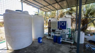 مواصفات المشروع : 1. تقنيات حديثة : - استخدام تقنيات متطورة لتحلية المياه مثل التناضح العكسي (RO) . - مراعاة المعايير البيئية والصحية. 2. طاقات إنتاجية متنوعة : - المحطات مصممة لإنتاج كميات مختلفة من المياه النقية حسب حاجة المنطقة ، تتراوح بين 10,000 الى 100,000 لتر يومياً . 3. أنظمة مراقبة وتحكم : - مزودة بأنظمة رقمية لمراقبة جودة المياه. 4. معدات صديقة للبيئة : - تقليل استهلاك الطاقة والمواد الكيمياوية المستخدمة. مساحة المشروع : تختلف مساحة كل محطة حسب الطاقة الإنتاجية والموقع الجغرافي ، وعادة تكون بين 200 الى 500 متر مربع لكل محطة ، تشمل وحدات التحلية والخزانات ومرافق التشغيل.