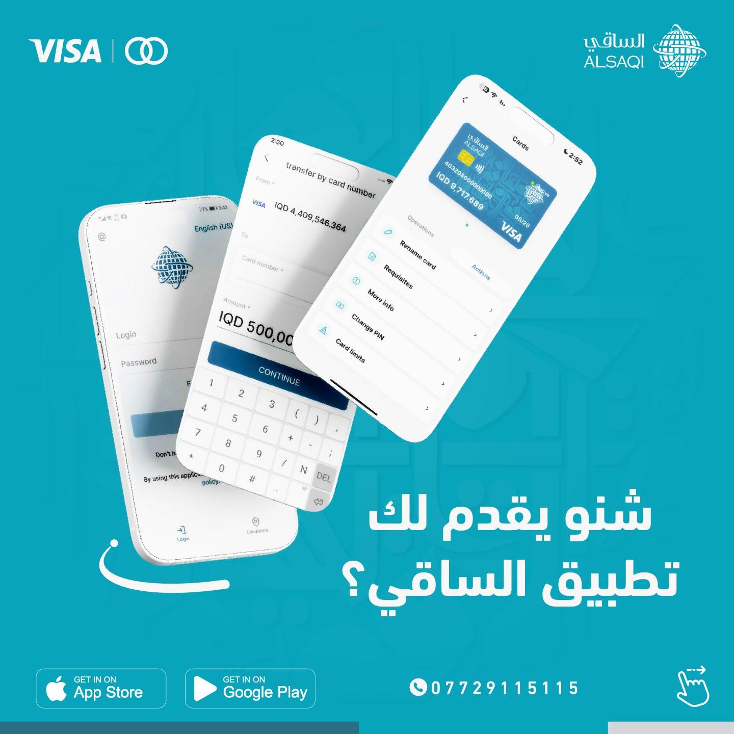 بطاقة الساقي تتضمنُ جميعَ المزايا التي تقدمها فيزا منْ حيثُ سهولةُ الإستخدامِ ، والقبولُ العالميُ ، ومعاييرُ الأمانِ العاليةِ . دونُ الحاجةِ إلى خبرةٍ مسبقةٍ في التعاملِ معَ البنوكِ ، تستخدمَ البطاقةُ تقنياتِ التلامسِ وغيرِ التلامسِ، متصلةً بتطبيقِ الهاتفِ النقالِ لتتبعِ المعاملاتِ الماليةِ. يمكنَ إستخدامها لإجراءِ عملياتِ الشراءِ والدفعاتِ الإلكترونيةِ على مستوى العالمِ، معَ ملايينَ منْ التجارِ وآلاتِ الصرافِ الآليِ في أكثرَ منْ 200 دولةٍ. تتيحَ بطاقةَ الساقي نقلَ الأموالِ بسهولةِ بينَ البطاقاتِ والمعاملاتِ الإلكترونيةِ عبرَ تطبيقِ الهاتفِ النقالِ. قابلةً للتخصيصِ للأفرادِ والتجارِ والمؤسساتِ، وتوفرَ خصوماتٌ في المتاجرِ الشريكةِ، ويمكنَ إعادةَ شحنها في فروعِ الساقي أوْ عبرَ وكلائها.