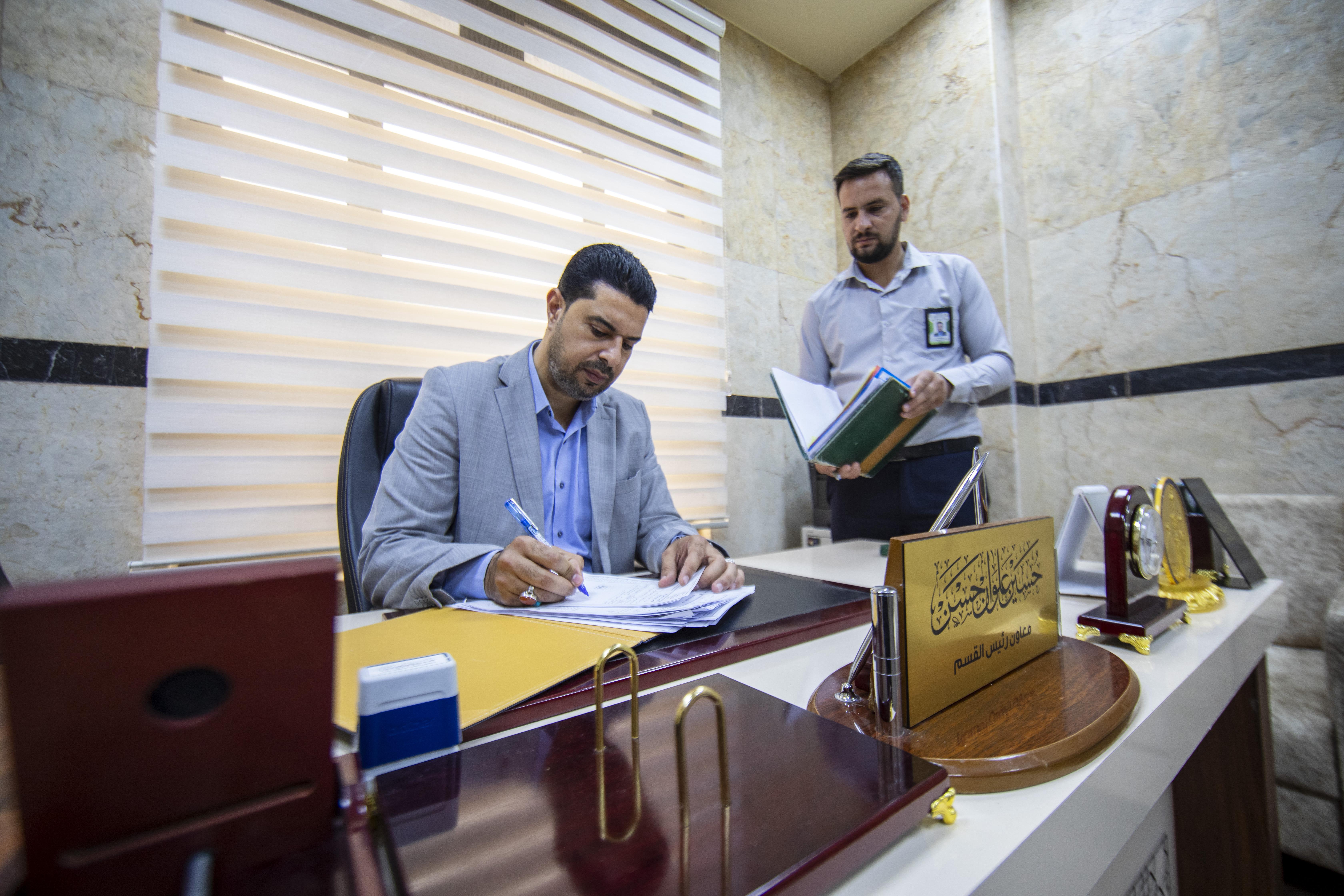 قسمُ المخازن في العتبة العبّاسية المقدّسة كان في بدايته شعبةً تابعةً لقسم الشؤون الماليّة، وبعد اتّساع الأعمال وتشعّبها تمّ إنشاء قسمٍ خاصّ في بداية العام (2010م) ليقوم بمهامّ تجهيز الموادّ وخزنها، فأصبح المفصل الأساس الذي تجتمع عنده جميع أقسام العتبة المقدّسة، فهو يعمل على تنظيم وحفظ الممتلكات والمستلزمات والأدوات والأجهزة الضروريّة للعتبة المقدّسة، مع تطبيق سياقات العمل الحديثة والمتطوّرة التي تعمل بها المخازن. وبعد التوسّع في عمل الأقسام التابعة للعتبة المقدّسة بكلّ المفاصل الخدميّة والإنتاجيّة، أولت الأمانةُ العامّة للعتبة العبّاسية المقدّسة الكثير من الاهتمام والجهد المصحوب بالدعمين المادّي والمعنويّ، للوقوف على رؤيةٍ مهنيّةٍ واضحة المعالم، تتمثّلُ في بناء الوظيفة المخزنيّة بما يتلاءمُ وطبيعة المواد التي تحتويها. أمّا بالنسبة لعدد منتسبي القسم فيبلغ حاليّاً (123) منتسباً موزّعين على الشعب المذكورة، وتكون آليّة الدوام بنظام (الشفتات) الدوام الصباحي والمسائي".