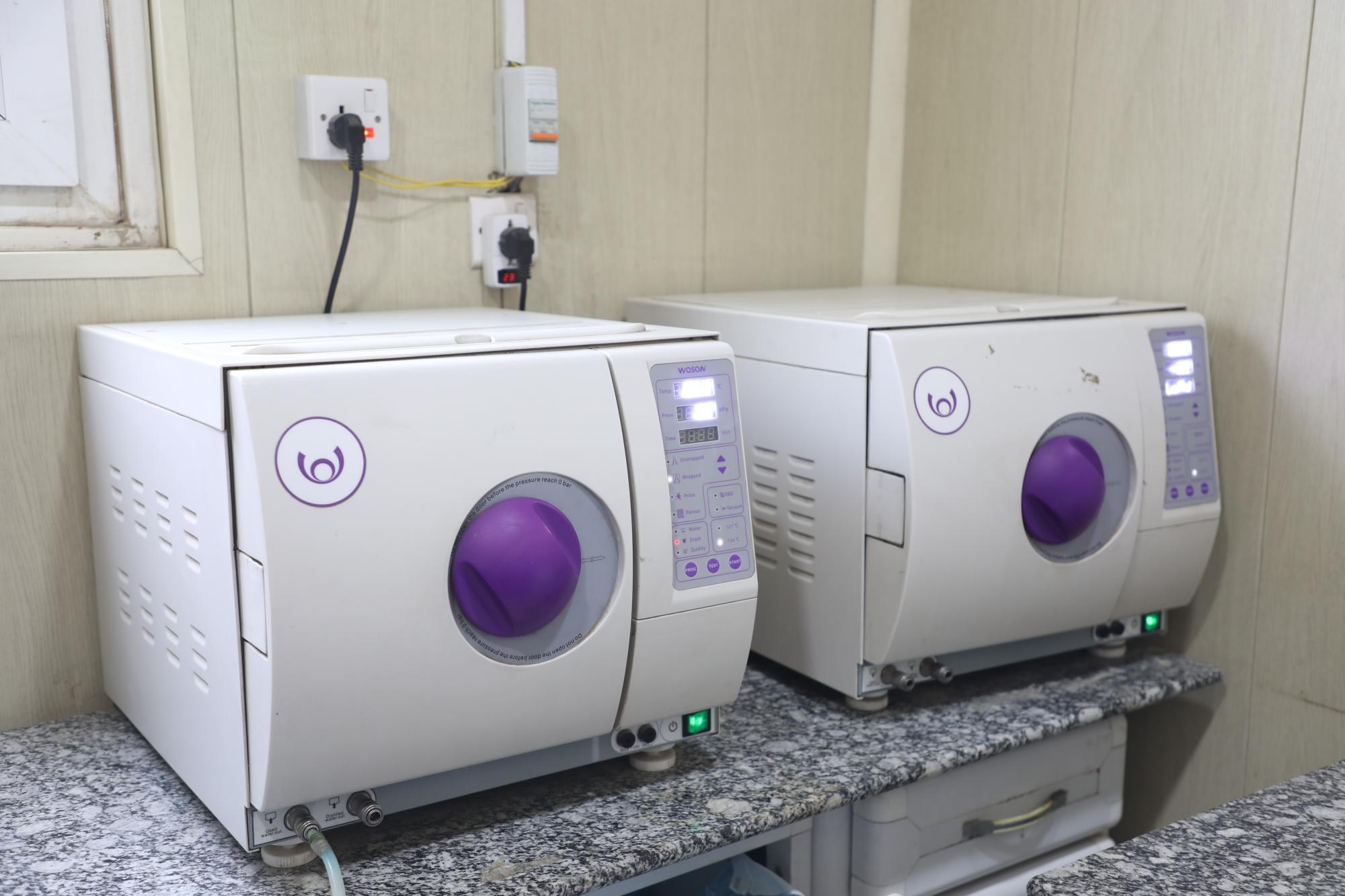 يشمل المبنى الطابق الأرضي وثلاثة طوابق أخرى بمجموع مساحة بناء 2400 م2 - الطابق الأرضي: مساحته 600م2 وتبلغ عدد العيادات فيه (5) عيادات بمساحة (65)م2 للعيادة الواحدة وكل عيادة تحتوي على (9) كراسي أسنان ومقسمة كما يلي: 1- عيادة جراحة الفم والأسنان عدد (2) 2- عيادة التعويضات الصناعية للأسنان عدد (3) 3- غرفة الإدارة والموظف الإداري 4- الاستعلامات الرجالية. 5- الاستعلامات النسائية. 6- غرفة مذخر الادوية. 7- غرفة الفحص. 8- غرفة التعقيم. 9- غرفة الأشعة. 10- غرفة الكهرباء. 11- المجموعة الصحية (رجالية ونسائية). 12- مولدات كهربائية عدد 2. - الطابق الأول: مساحته 600م2 وتبلغ عدد العيادات فيه (5) عيادات بمساحة (65)م2 للعيادة الواحدة وكل عيادة تحتوي على (9) كراسي أسنان. 1- غرفة مذخر الادوية. 2- غرفة التعقيم. 3- غرفة الأشعة. 4- غرفة استراحة الأطباء. 5- غرفة الانتظار. 6- مجموعة صحية (نسائية). - الطابق الثاني: مساحته 600م2 وتبلغ عدد العيادات فيه (5) عيادات بمساحة (65)م2 للعيادة الواحدة وكل عيادة تحتوي على (9) كراسي أسنان. 1- عيادة الجراحة التخصصية. 2- غرفة التعقيم. 3- غرفة أمراض الفم واللثة التخصصية. 4- عيادة تقويم الاسنان وطب الفم. 5- عيادة أمراض وجراحة ما حول الاسنان عدد (3). 6- كافتيريا. 7- غرفة الصب عدد (2) للرجال والنساء. 8- مصلى عدد (2) للرجال والنساء. - الطابق الثالث: تبلغ مساحته 600م2. 1- قاعة دراسية بمساحة 182.75م2. 2- مجموعة صحية (نسائية). 3- قاعات صغيرة للمناقشة عدد (2). 4- المخزن.