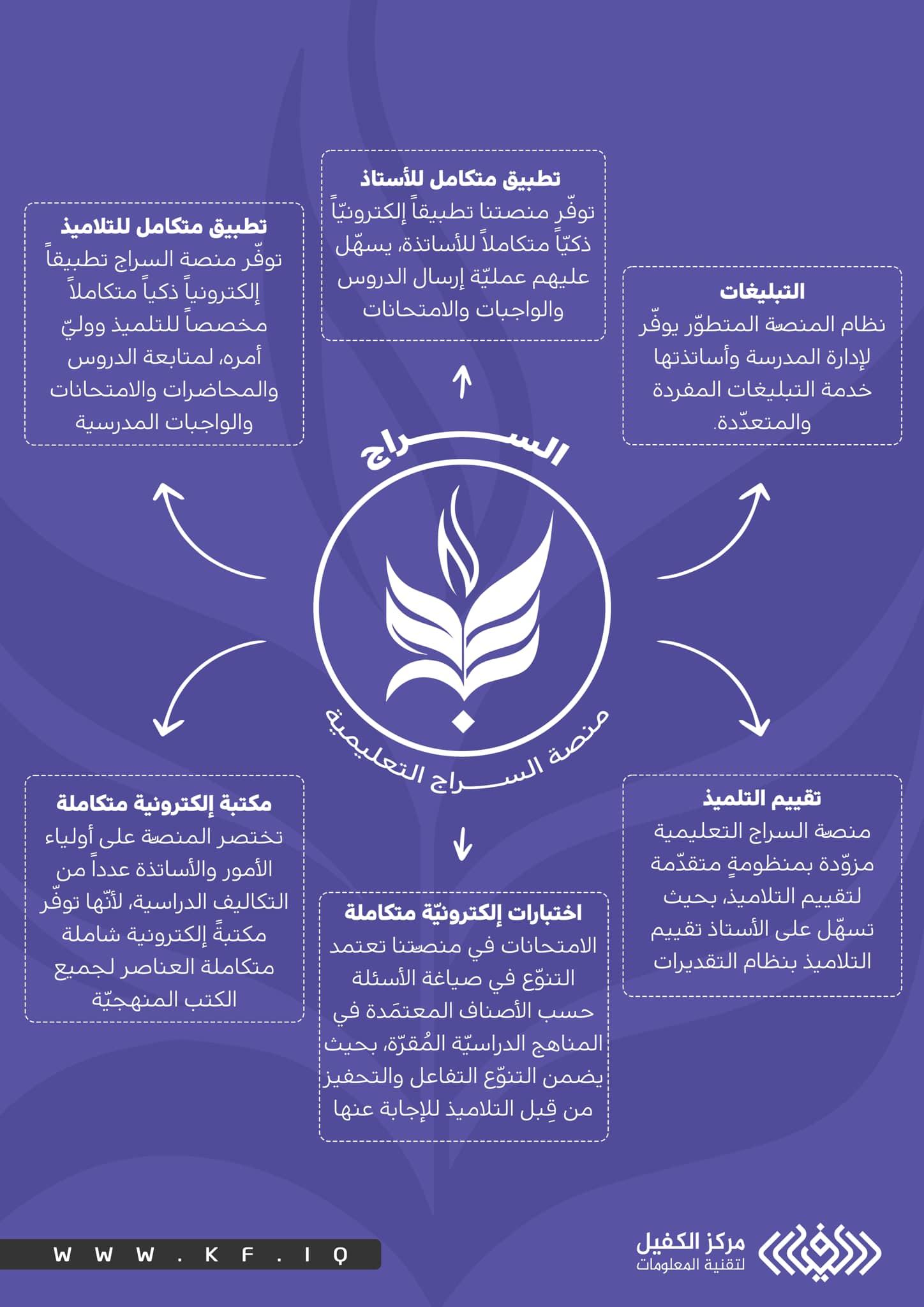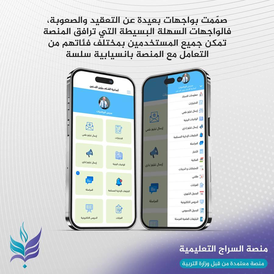 هي مدرسة إلكترونية متكاملة تم تصميمُها وبرمجتُها بالكامل بأيادٍ وأنامل عراقية ذات خبرات واسعة النطاق، ولِدت منصة السراج التعليمية في العام (2014) وما زالت قائمة حتى اليوم، مرت المنصة بمراحل تطوير وتأهيل وصيانة ودعم وتقويم لسنوات عديدة متتالية، لذلك تعدُّ هذه المدة مؤشراً واضحاً على مدى نجاح تلك المنصة؛ كونها قد أثبتت جدارتها في بيئات العمل الحقيقية لسنوات عدة، تم اعتماد منصة السراج التعليمية من قبل وزارة التربية واستخدامها منصةً رسميةً للمدارس الحكومية والأهلية بدءاً من العام الدراسي 2021/2022.