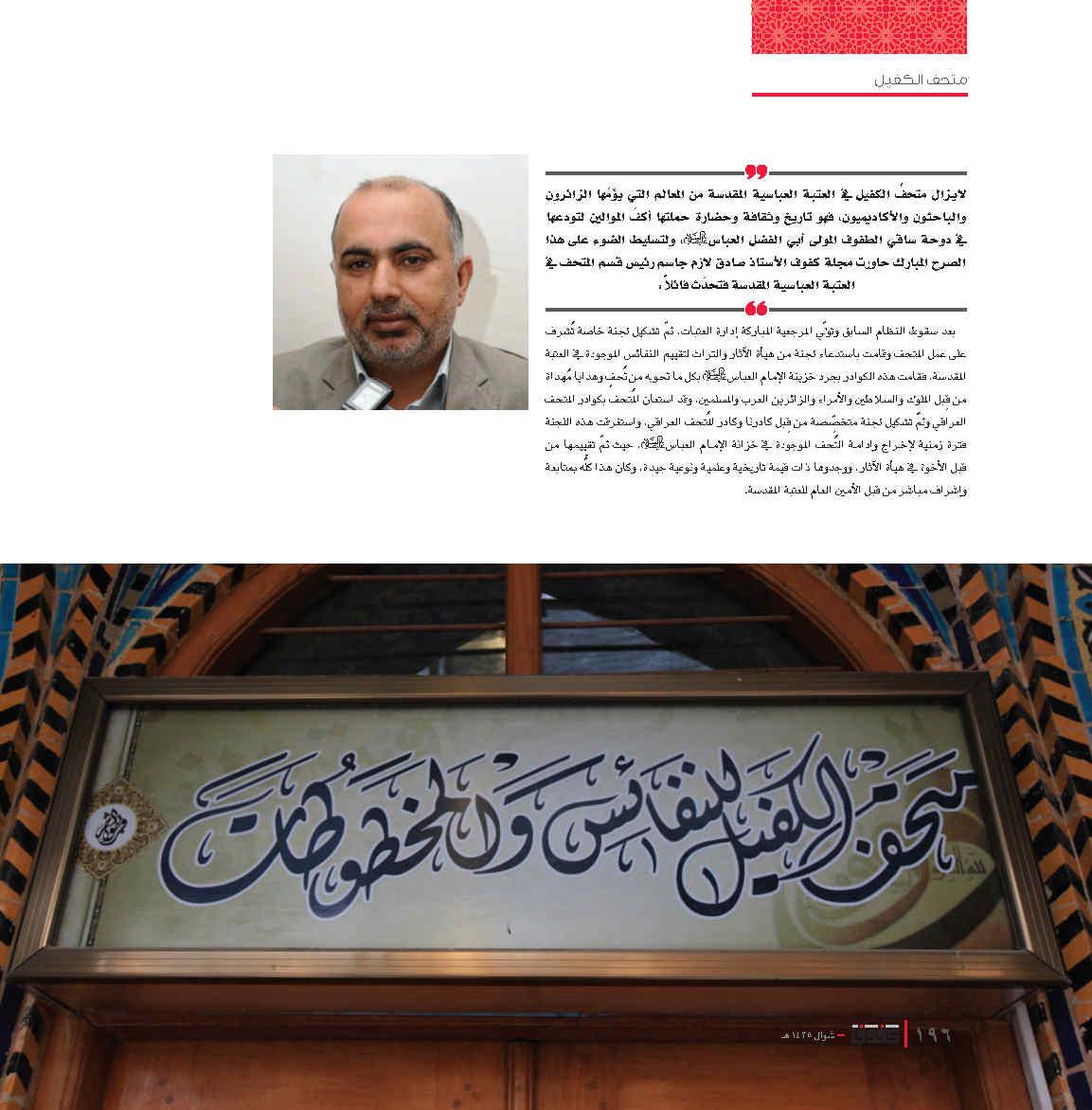 كربلاء المقدسة - باب الخان - مجمع الإمام الصادق (عليه السلام) لأقسام العتبة - قسم الشؤون الفكرية والثقافية.