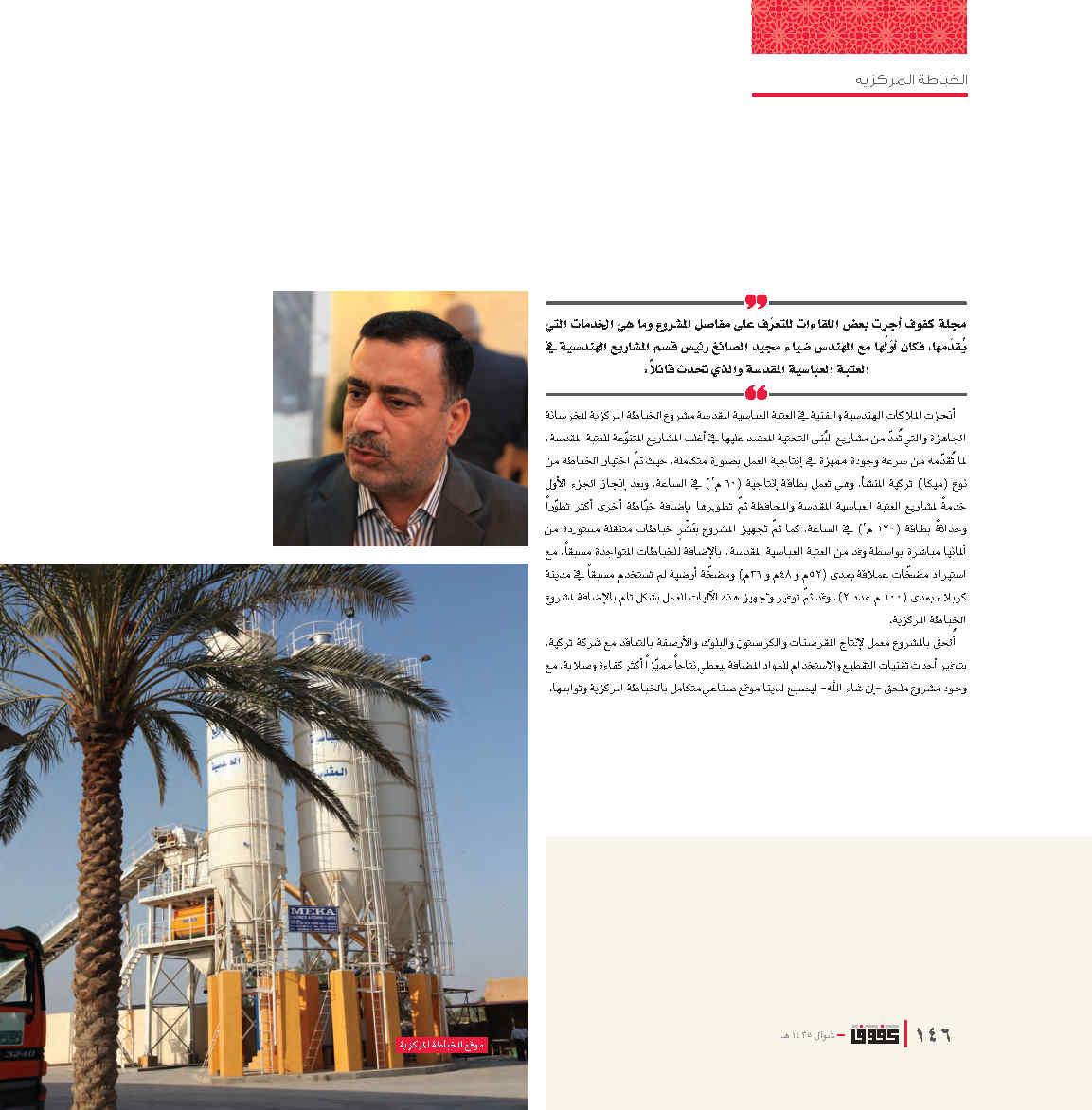 يعد تسليط الضوء على جهود المثابرين قضية مهمة من قضايا الإبداع الملتزم وذمة على الشهود، كونه ينمي العلاقة بين العمل وقداسة المسعى، ويساهم في دفع الهمة المعنوية ورفع قيمة الفعل المثابر بكل سماته المتنوعة، وهذه المجلة خصصت للتعريف بالأقسام والشعب العاملة في العتبة العباسية المقدسة وتوثيق جميع انشطتها. الأهداف • تعزيز القيم الإنسانية والإسلامية : تسلط الضوء على القيم النبيلة التي تنادي بها رسالة الإمام العباس (عليه السلام). • رفع مستوى الوعي الثقافي : من خلال مقالات متنوعة تغطي قضايا دينية، اجتماعية، وعلمية. • تقديم محتوى موجه للشباب : يساعدهم على بناء فكر واعٍ ومتماسك. • توثيق أنشطة العتبة العباسية : التعريف بالمشاريع الثقافية والخدمية التي تقدمها العتبة. • الإسهام في تطوير الفكر المجتمعي : عبر مناقشة القضايا المعاصرة من منظور إسلامي.