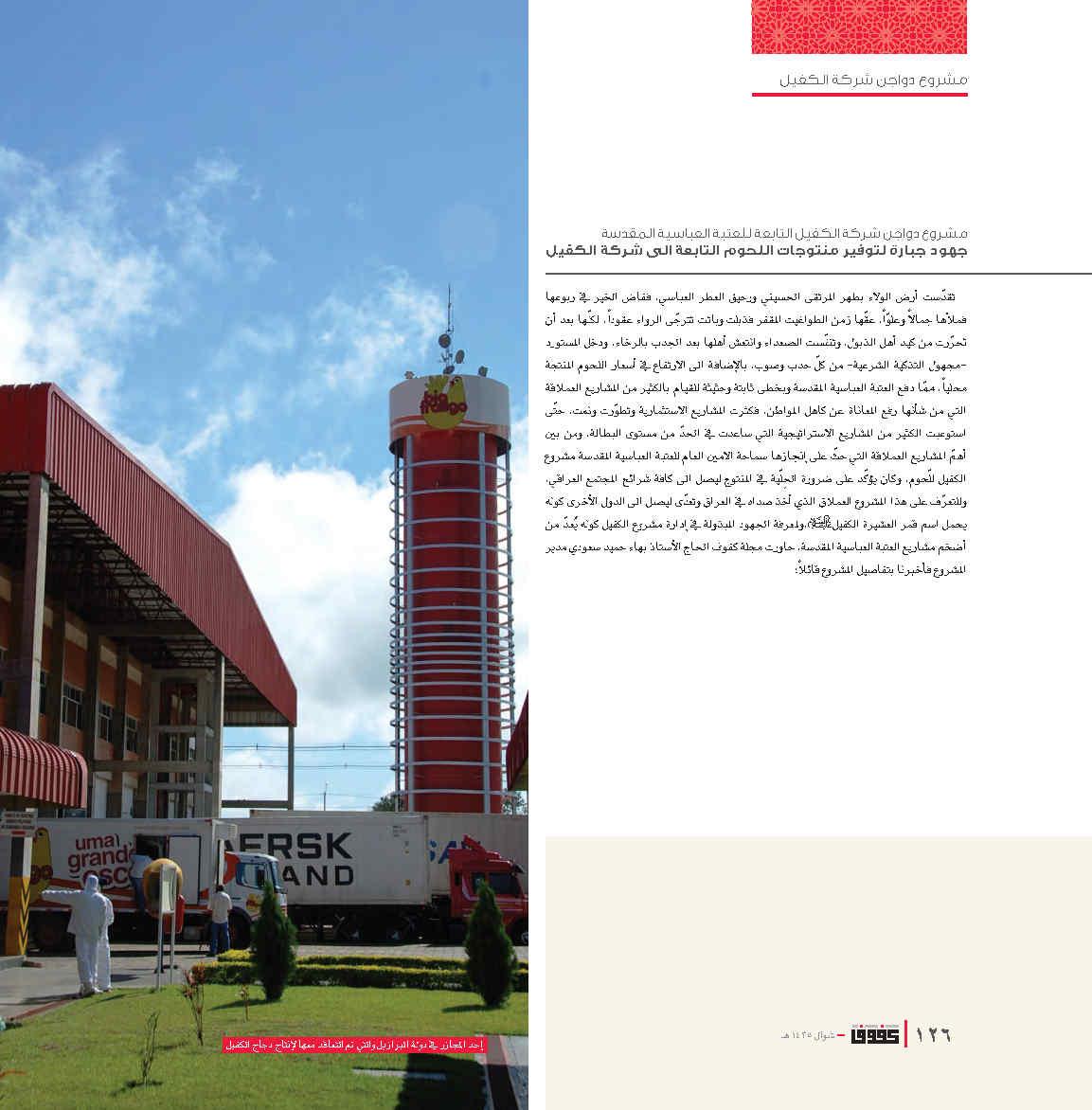 تفاصيل إضافية • تُقدم المجلة نسخة إلكترونية بالإضافة إلى النسخة المطبوعة للوصول إلى جمهور أوسع. • تُتيح الفرصة للقراء للتفاعل من خلال كتابة رسائل أو مقترحات تخص مواضيع المجلة. • تُعتبر جزءًا من استراتيجية العتبة العباسية في تعزيز حضورها الثقافي والفكري داخل المجتمع وخارجه.