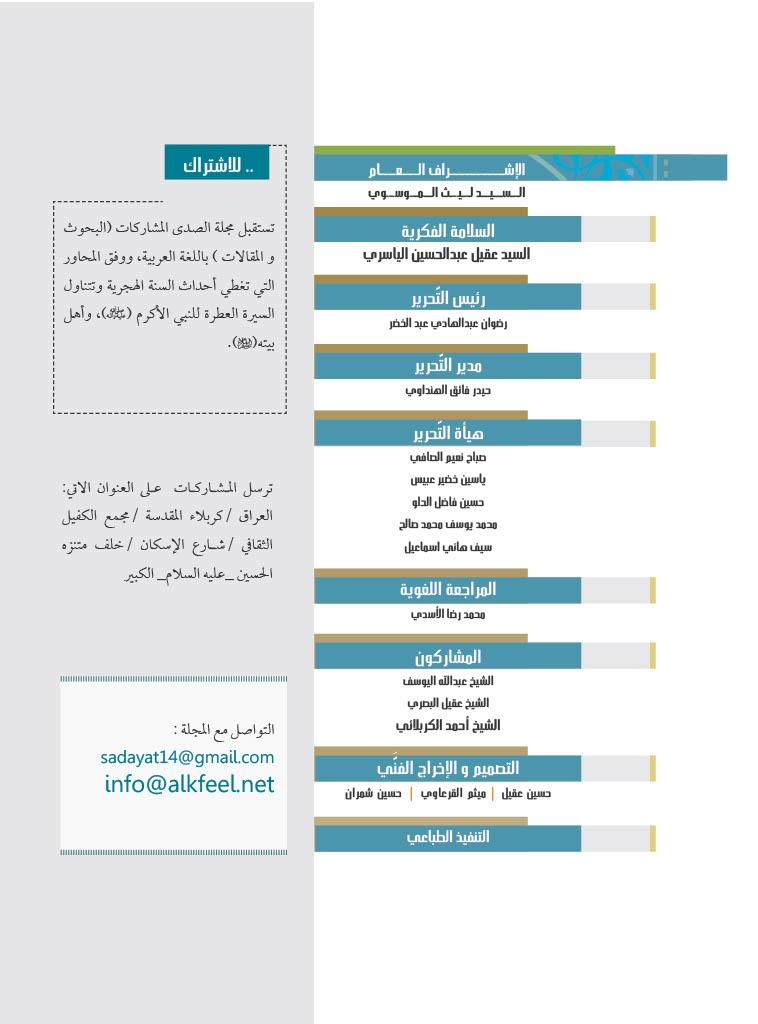 الجهة المشرفة : قسم الشؤون الفكرية والثقافية في العتبة العباسية المقدسة. الجهة المنفذة : فريق من الباحثين، المحررين، والمصممين المتخصصين في الشؤون الثقافية والدينية.