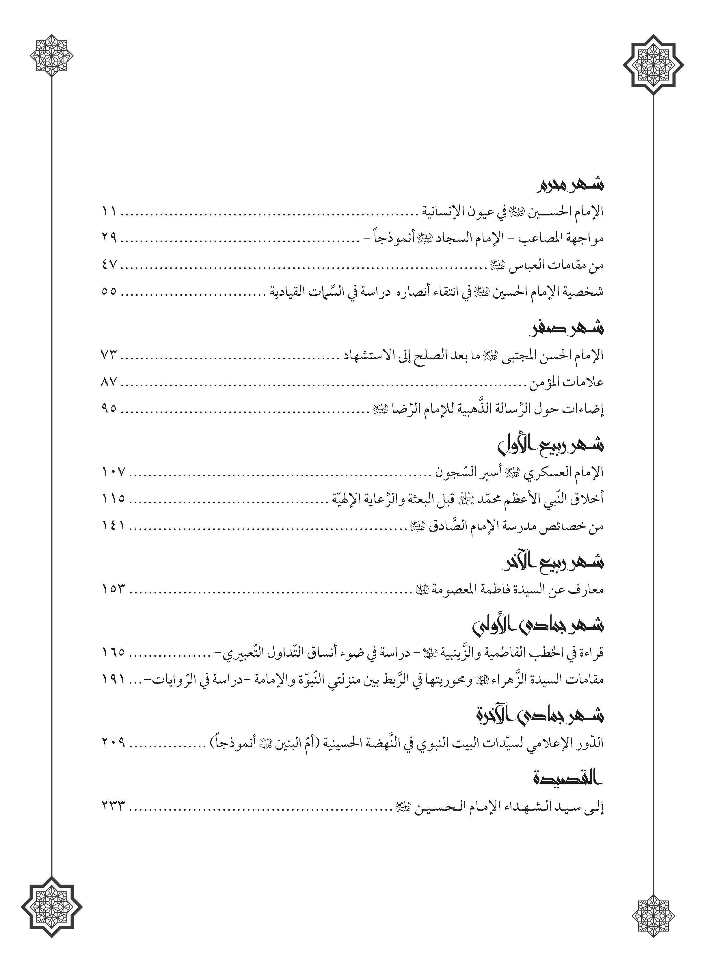 الأهداف • دراسة الأحداث التاريخية الهامة : توثيق وتحليل الأحداث الكبيرة في السنة الهجرية مثل معركة كربلاء، فتوحات الإسلام، وغيرها من المحطات الهامة في تاريخ الأمة الإسلامية. • إحياء الذاكرة الإسلامية : من خلال تقديم مقالات ودراسات حول محطات تاريخية وإسلامية تؤثر في الأمة وتساهم في إبراز القيم الدينية. • تحقيق الفهم العميق للأحداث : تقديم دراسات علمية وشهادات مختصة من باحثين وخبراء في التاريخ الإسلامي. • تعزيز الثقافة الدينية والفكرية : من خلال تقديم محتوى يعزز الوعي التاريخي والديني ويُشجّع على البحث والدراسة.