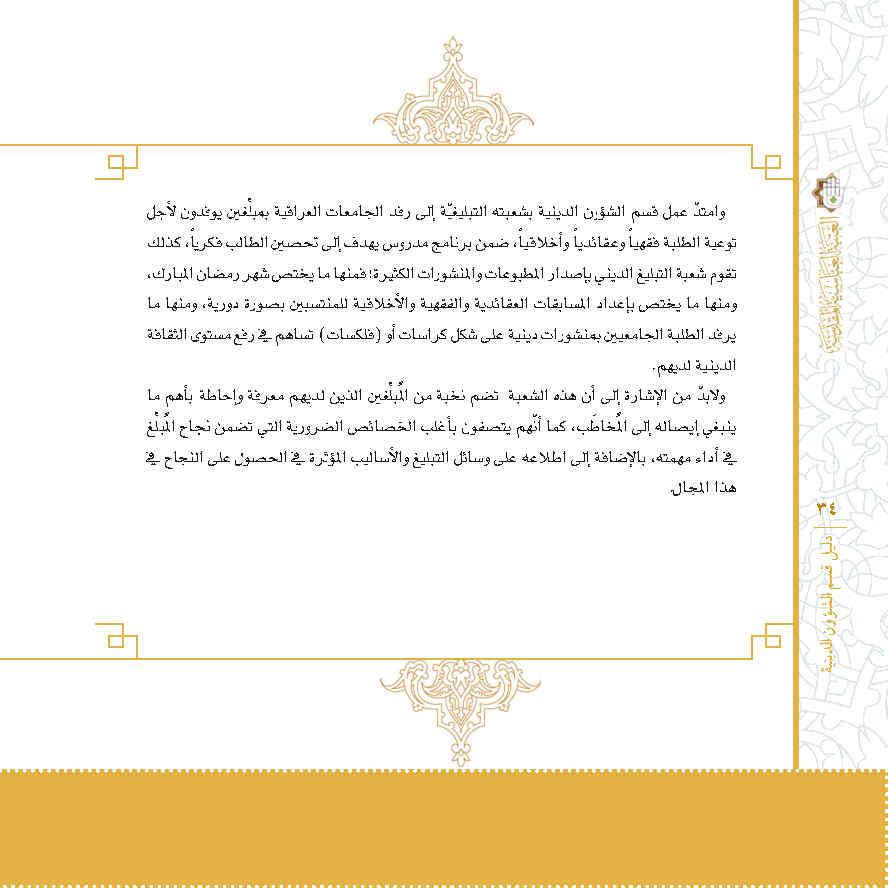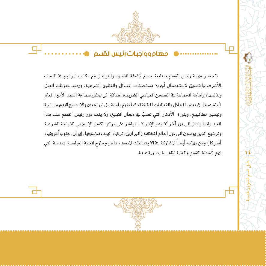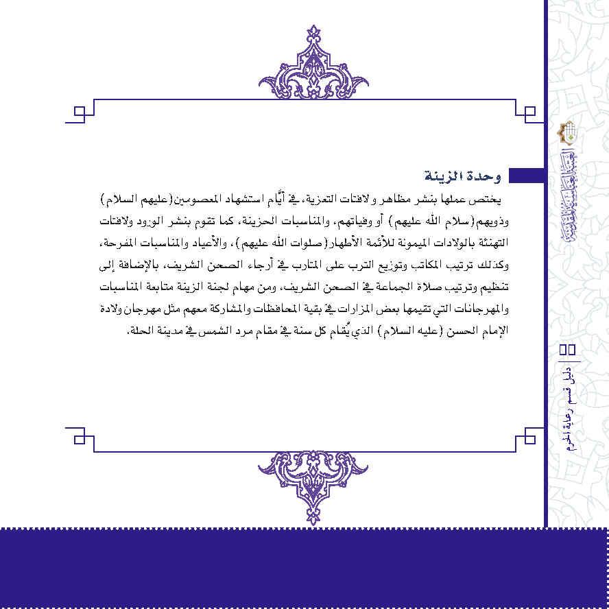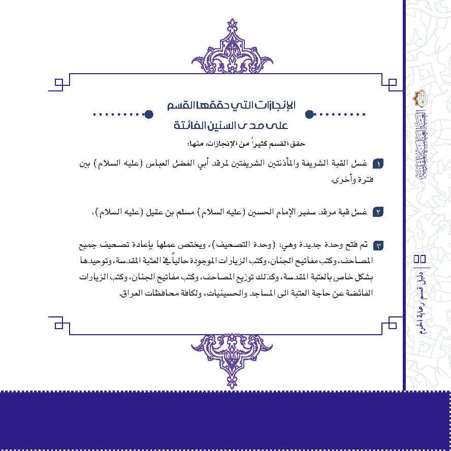 مجموعة إصدارات خاصة لبيان هيكلية أقسام العتبة العباسية المقدسة ومهامها، تصدر عن شعبة الفكر والإبداع التابعة لقسم الشؤون الفكرية والثقافية في العتبة العباسية المقدسة.