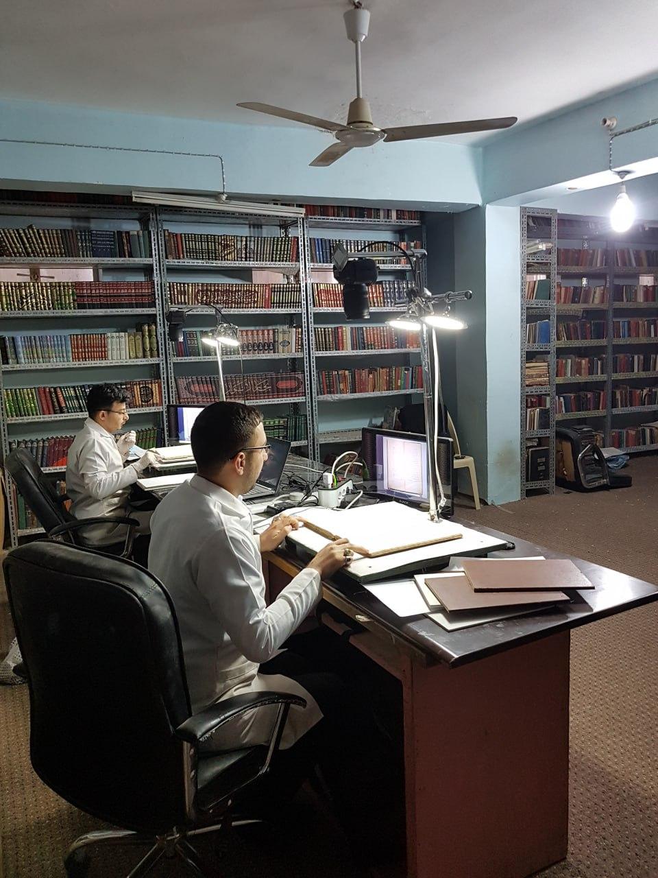 أولا: قسم التصوير والأرشفة الرقمية: أسس القسم عام2021م، وعمل على تصوير (454.215) مخطوطة من مختلف المكتبات العراقية والعالمية. ثانيا: قسم الفهرسة والإصدارات: وينقسم إلى (الفهرسة الوصفيّة) و(الفهرسة الرقميّة). ثالثا: قسم الوثائق التاريخية: أُسس قسم عام 2017م، ويحتفظ بنحو (400.000) وثيقة تعود لحقب تأريخية؛ منها العثمانيّة والبريطانيّة إلى الملكية والجمهورية.