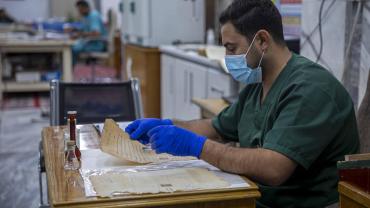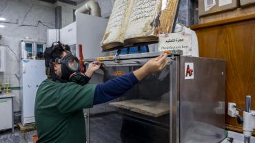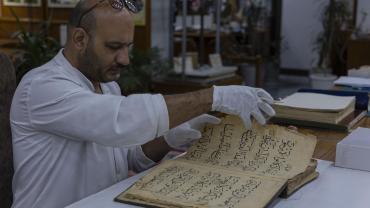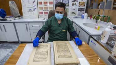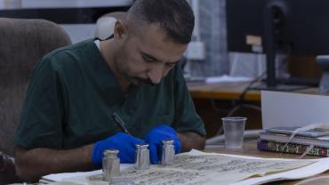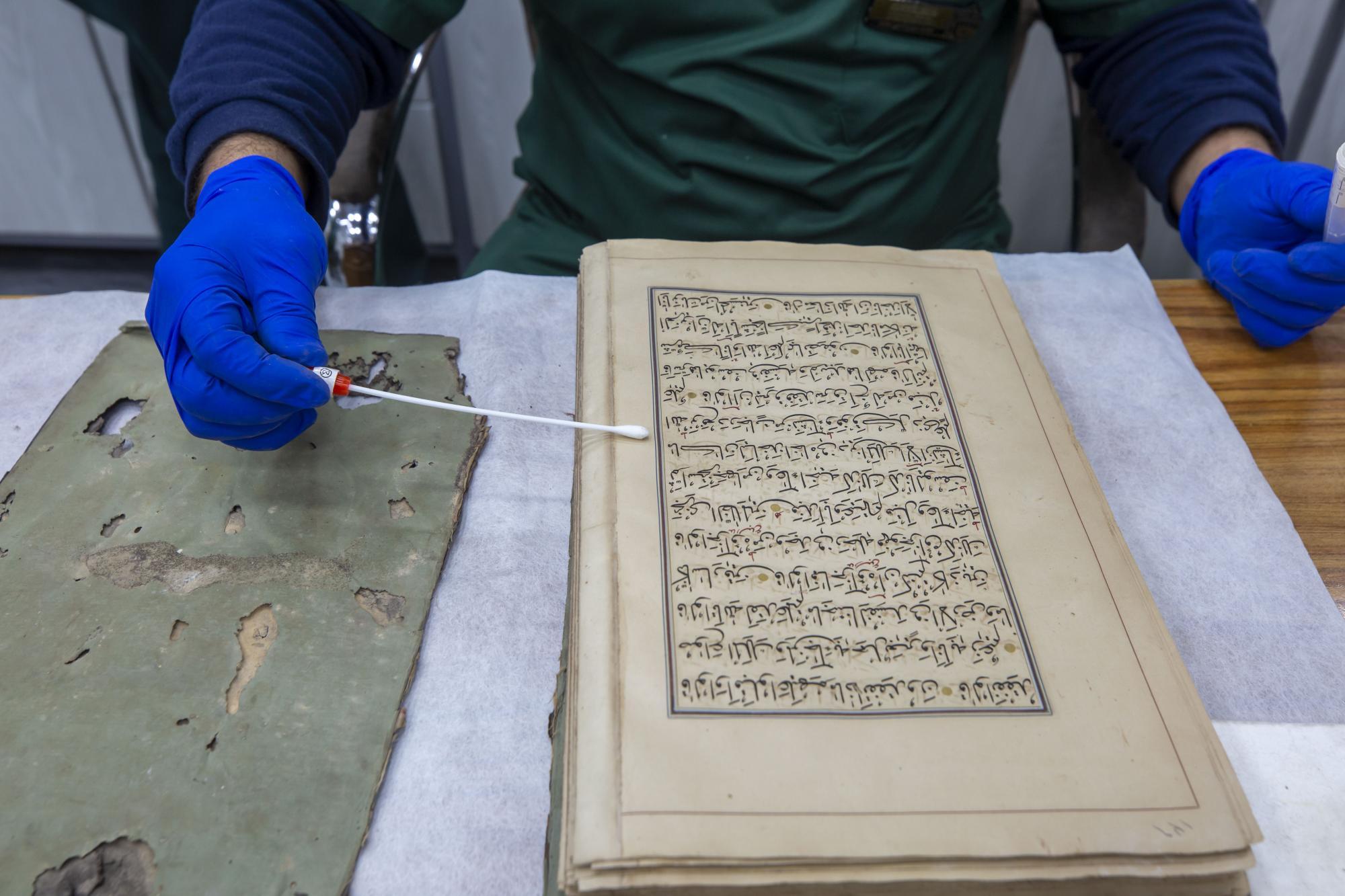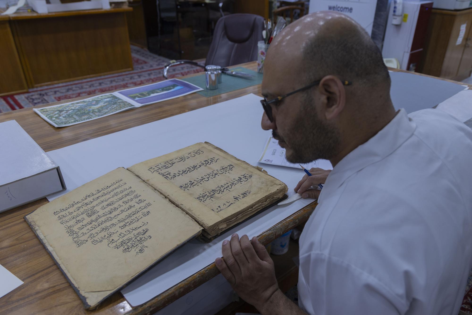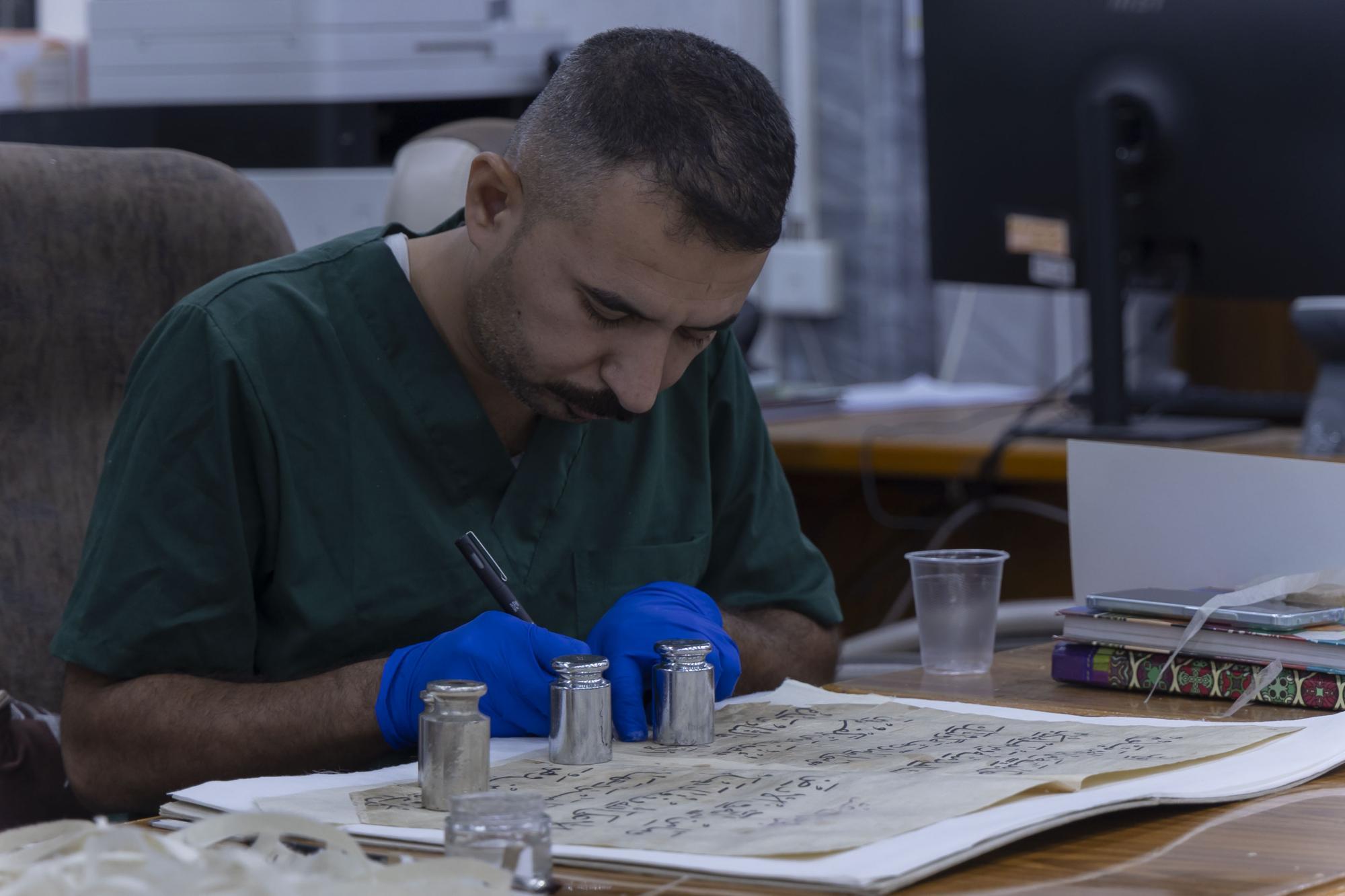 يضم المركز كفاءات علمية وفنية تعمل في مجال المحافظة على التراث المخطوط وكذلك صيانته والمحافظة عليه من التعفن والأضرار الناتجة من تقادم الأزمان والأضرار التي تلحق به نتيجة الظروف الجوية والتدخل البشري, وصناعة الورق الطبيعي وتحضير الرق الجلدي, بالإضافة لفن الزخرفة.